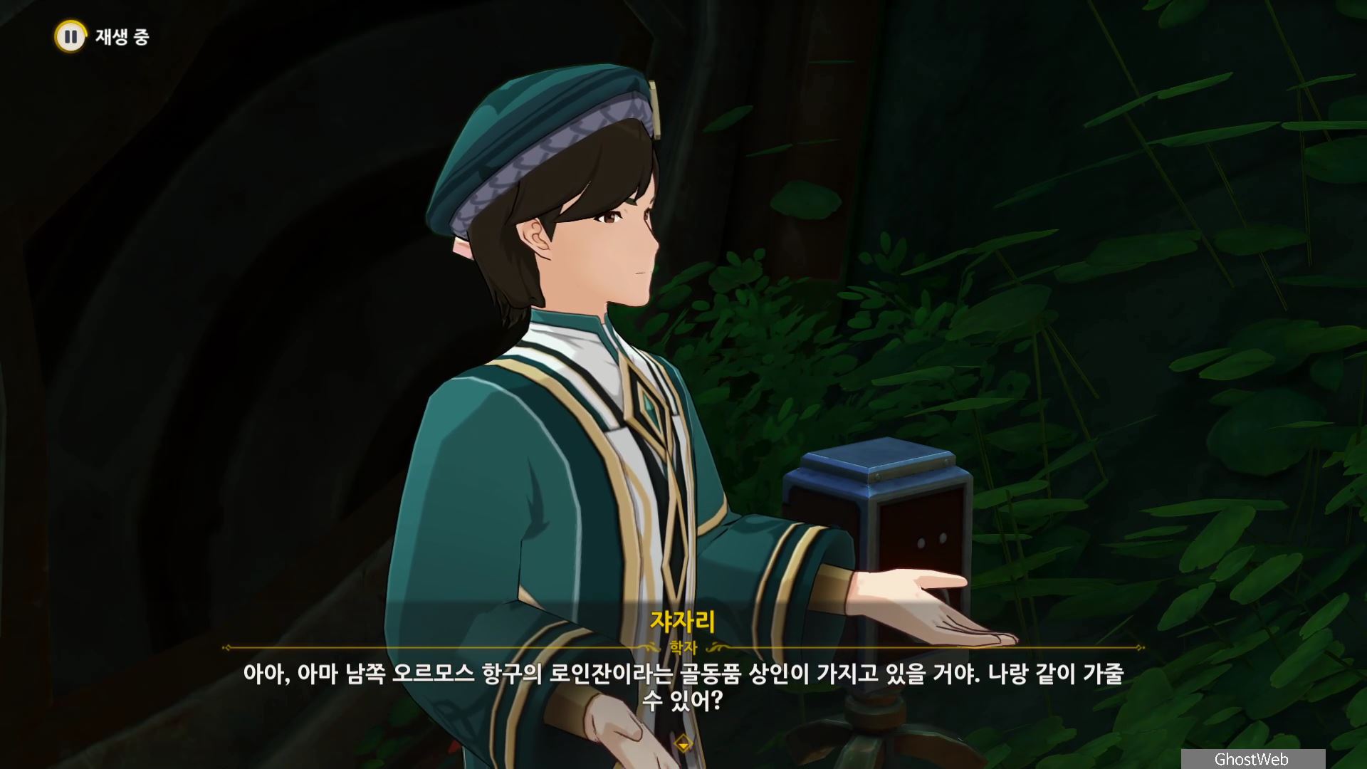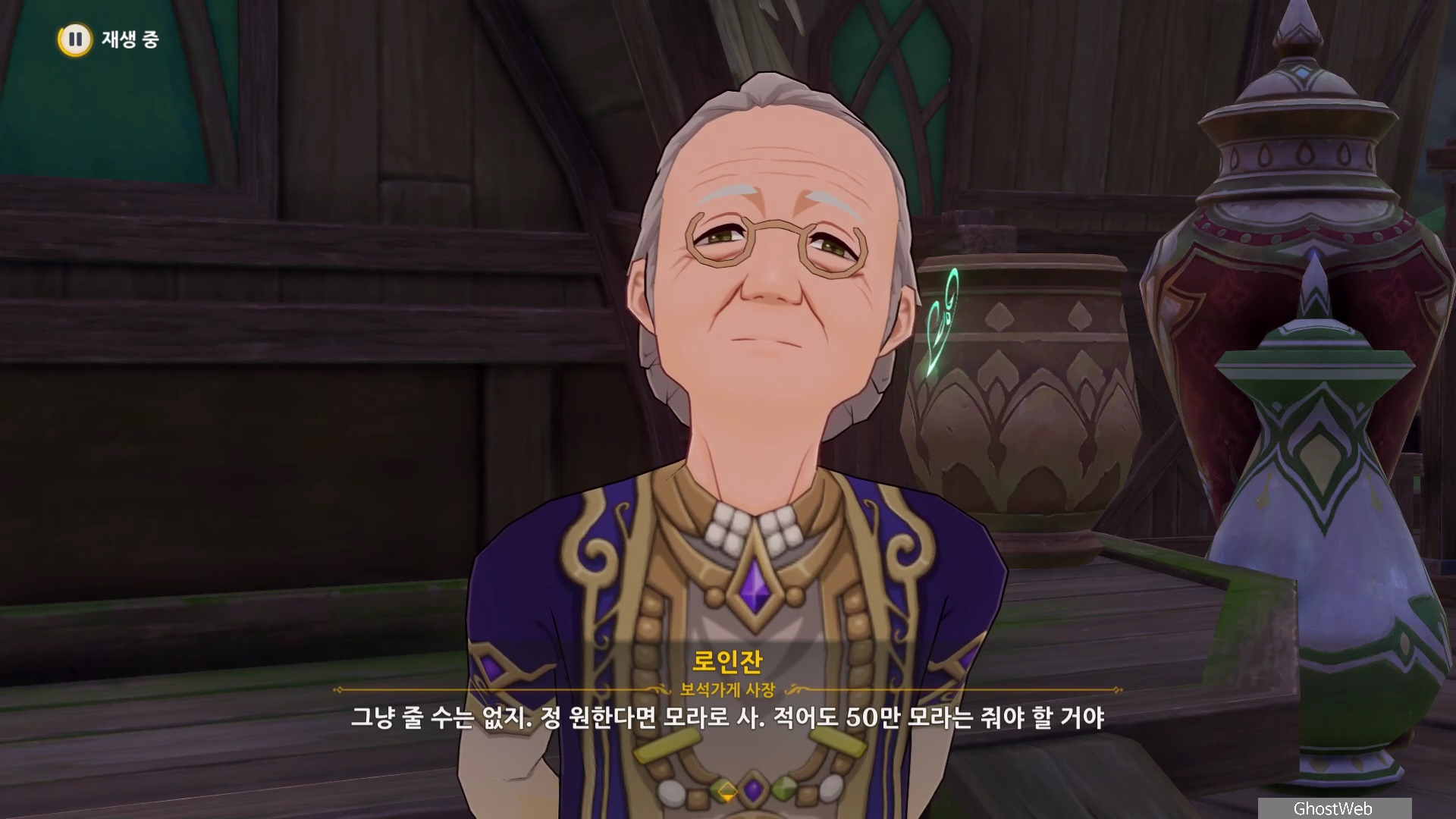 오르모스 항구 왼쪽 워프 포인트로 이동하여 보석가게 사장인 로인잔에게 <아미티 장치>를 찾고 있다고 말하니, 50만 모라를 달라고 하자 쟈자리를 난생을 표하며, 페이몬이 전에 다른 사람과 흥정한 경험이 있으니 여행자에게 흥정을 해보라고 해요.