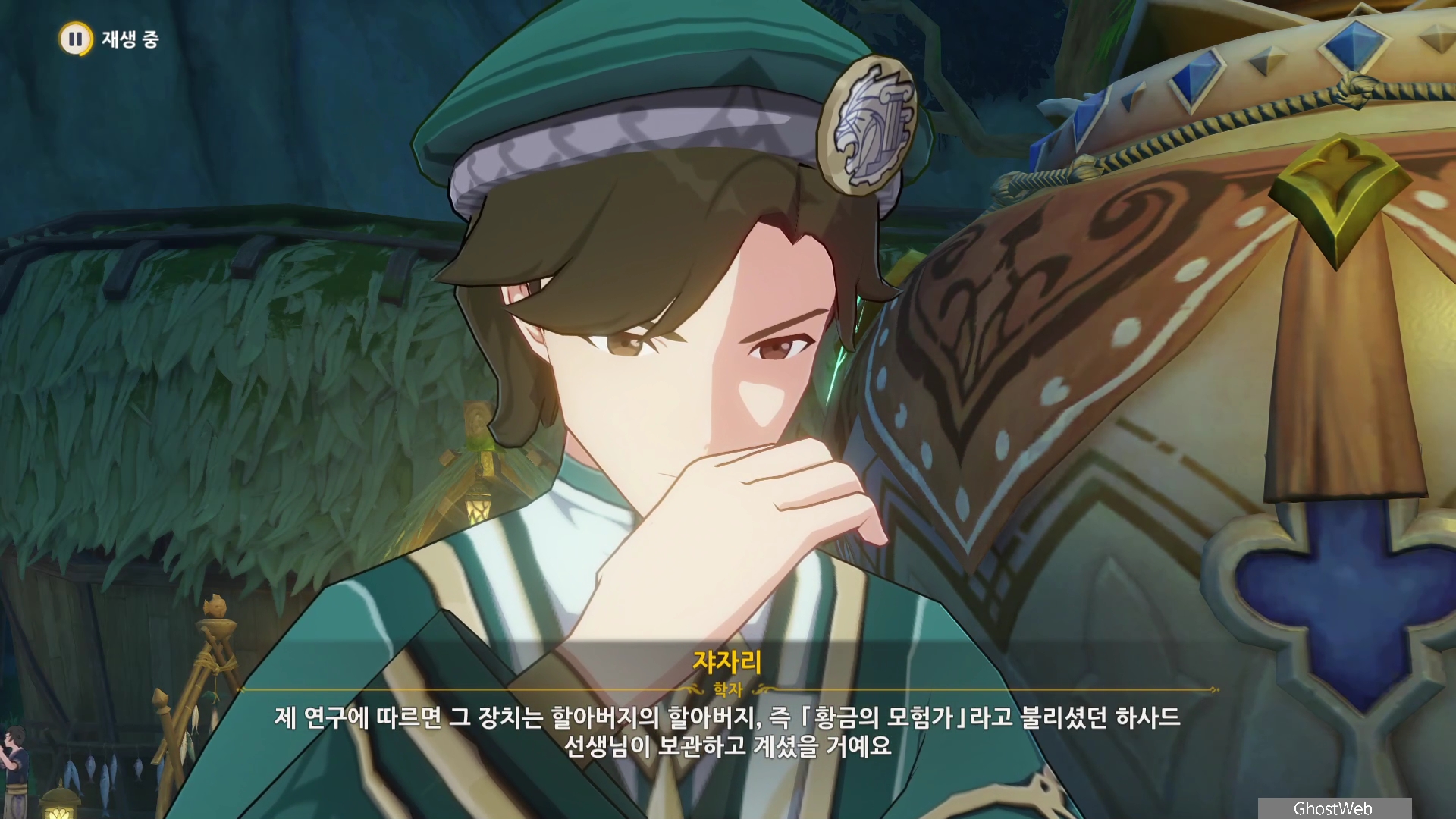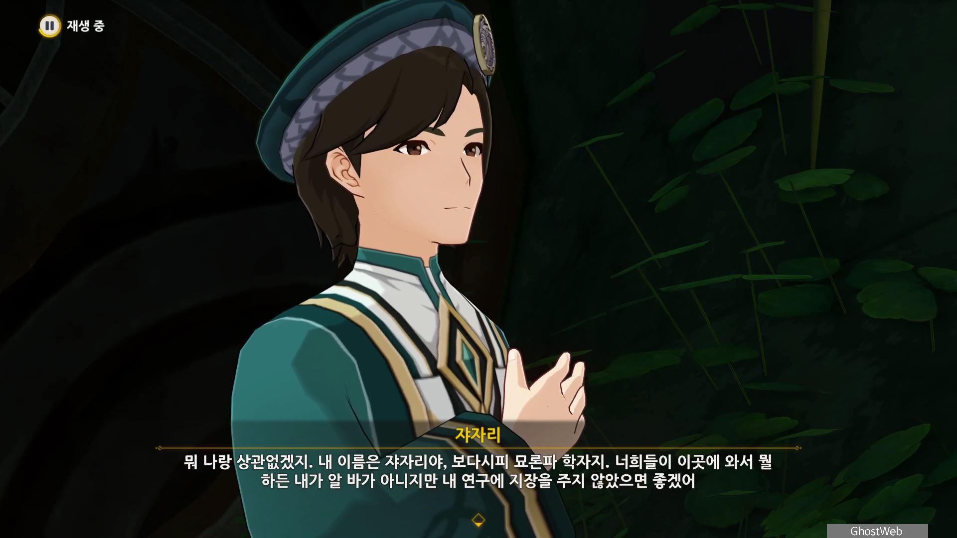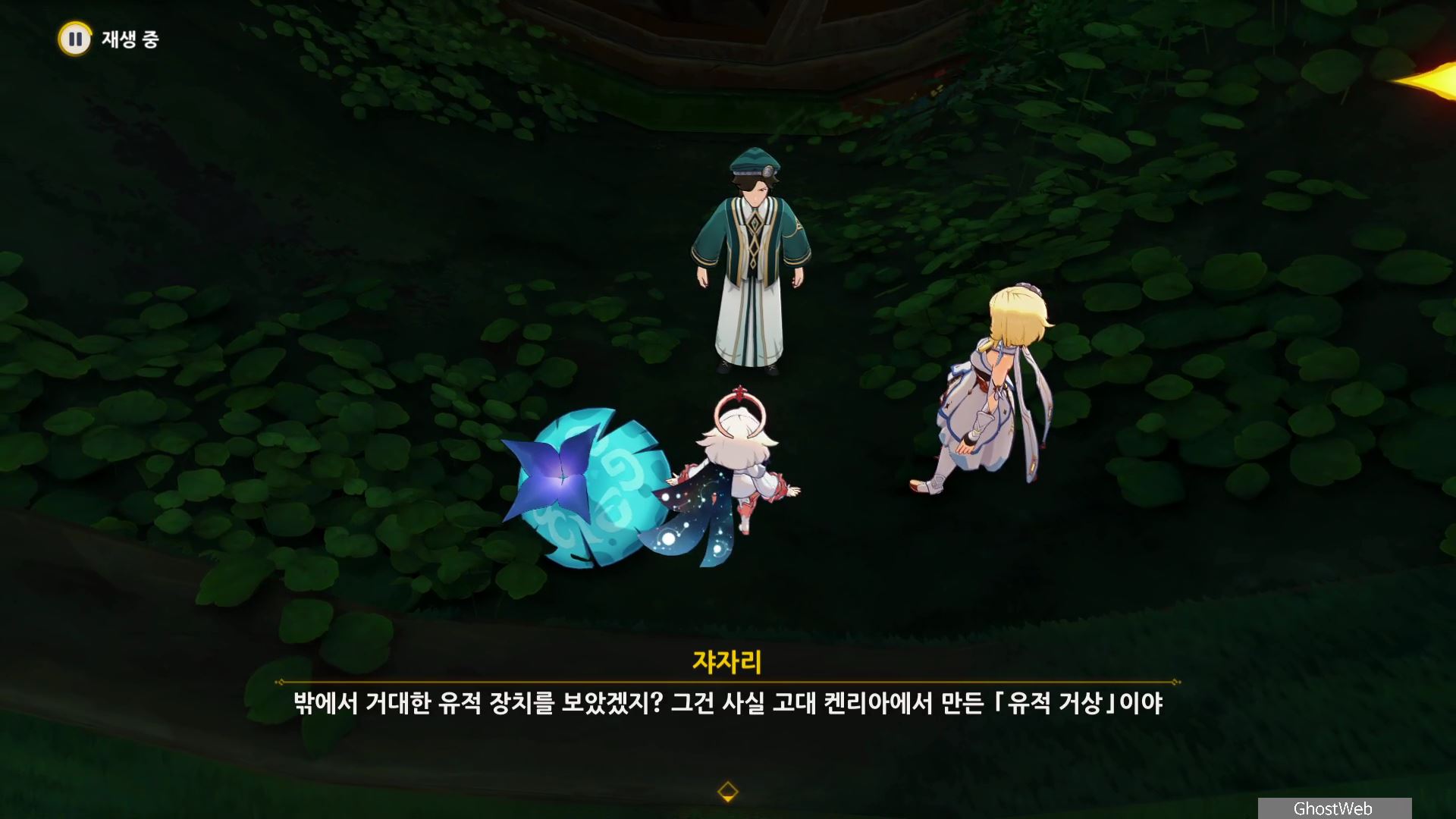쟈자리는 고대 켄리아에서 만든 <유적 거상(파수 장치)>을 연구 중이라며 여행자와 이야기를 하는데, 쟈자리에게는 아란리캔이 보이지 않기 때문에 아란리캔과 이야기하는 페이몬을 상상 속 친구와 이야기하는 불쌍한 아이로 봐요.