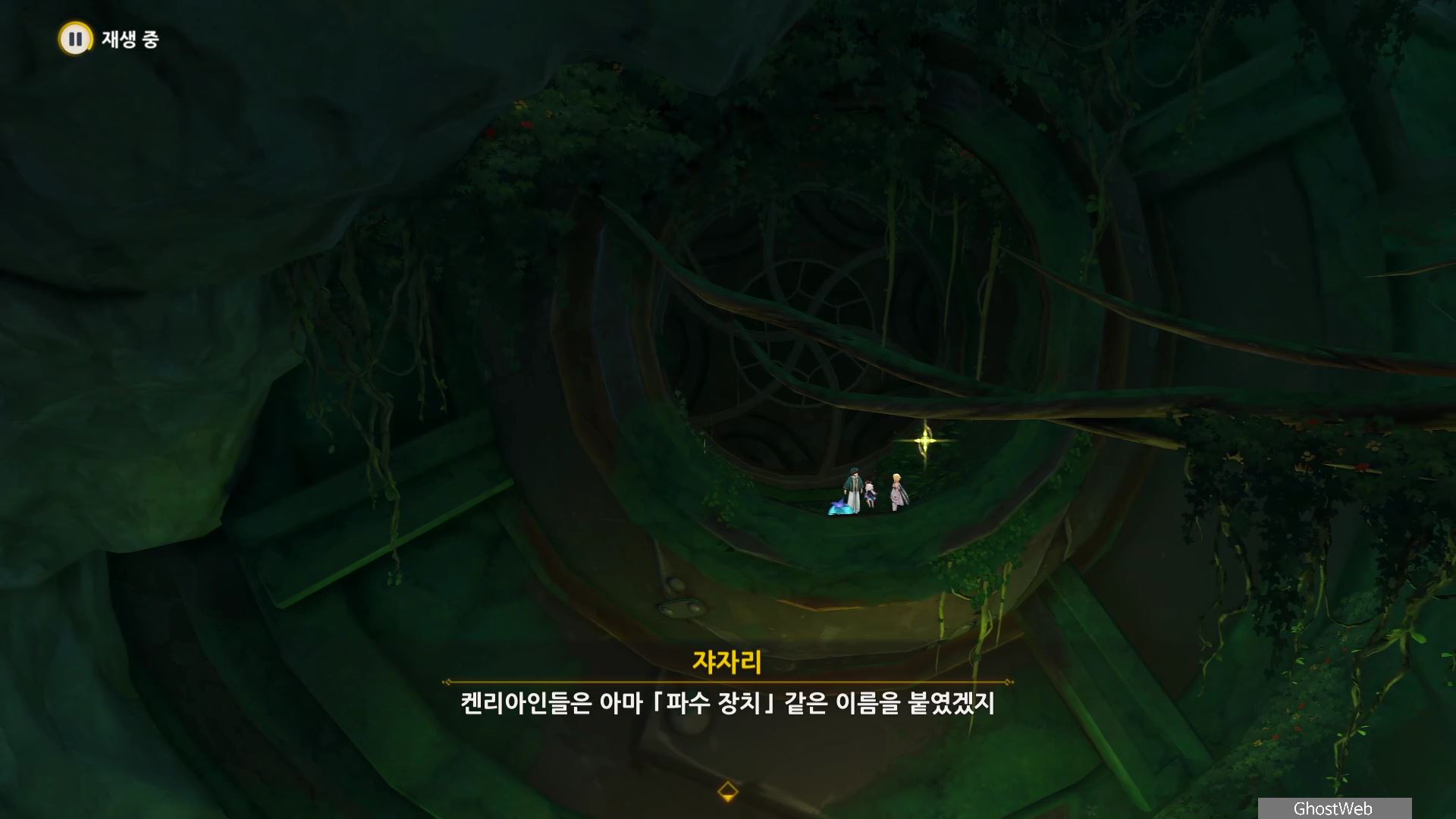 유적 거상 팔 부분에 가보니 그 곳에 아란리캔이 있었고, 유적 거상의 팔로 땅을 찍어버린 것 때문에 아래에 있는 지하 유적의 입구가 나타나 그 곳을 탐험하기로 해요.