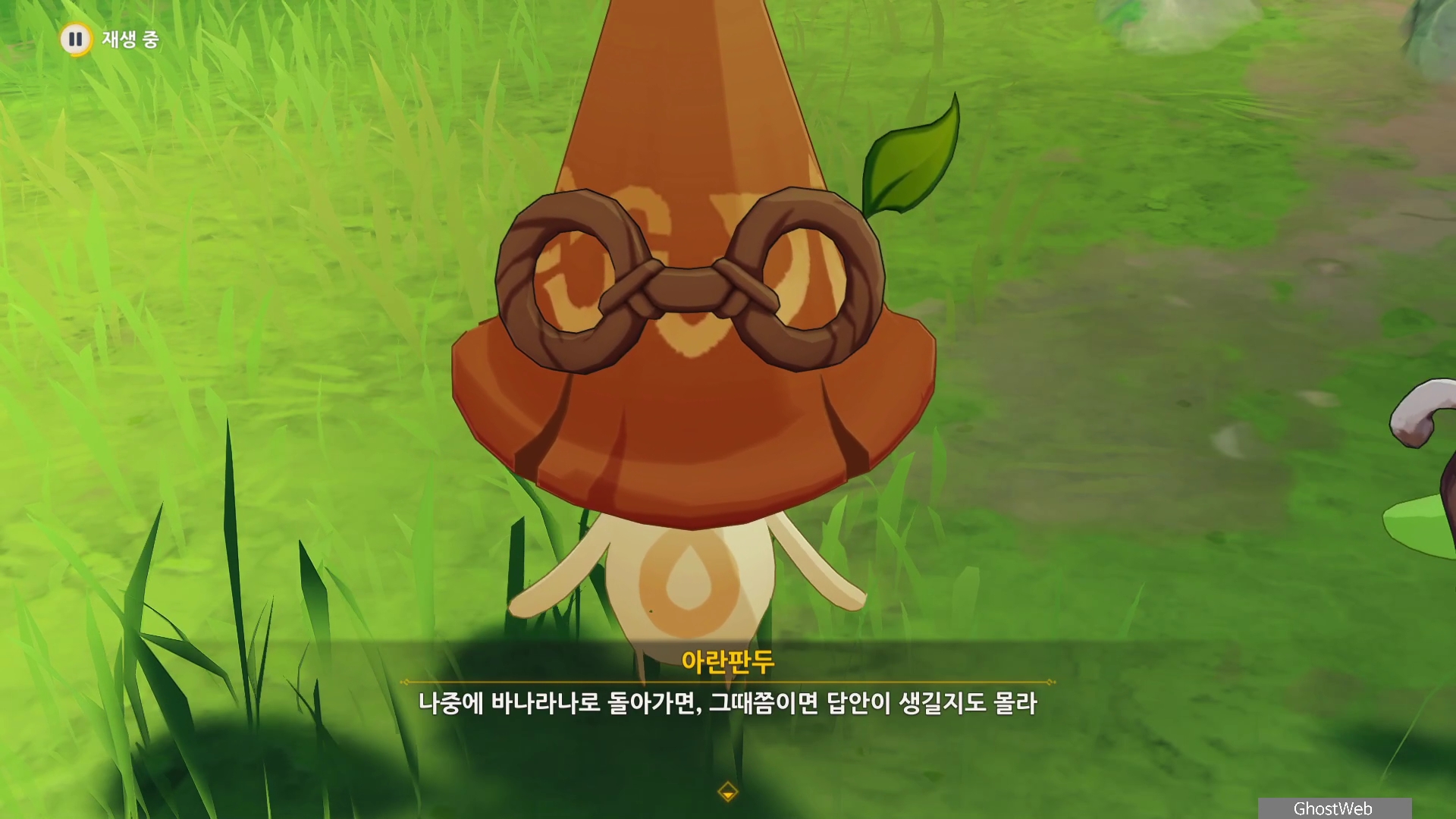 포자 제거하기 선택지를 누르면 버섯몬이 튀어 나와 싸움을 벌이다 도망가는데, 이를 쫓아가 처치하면, 바루나 신기 수리가 끝나고, 임무 완료로 <빗방울이 흙에 닿으면> 업적을 달성할 수 있어요.
