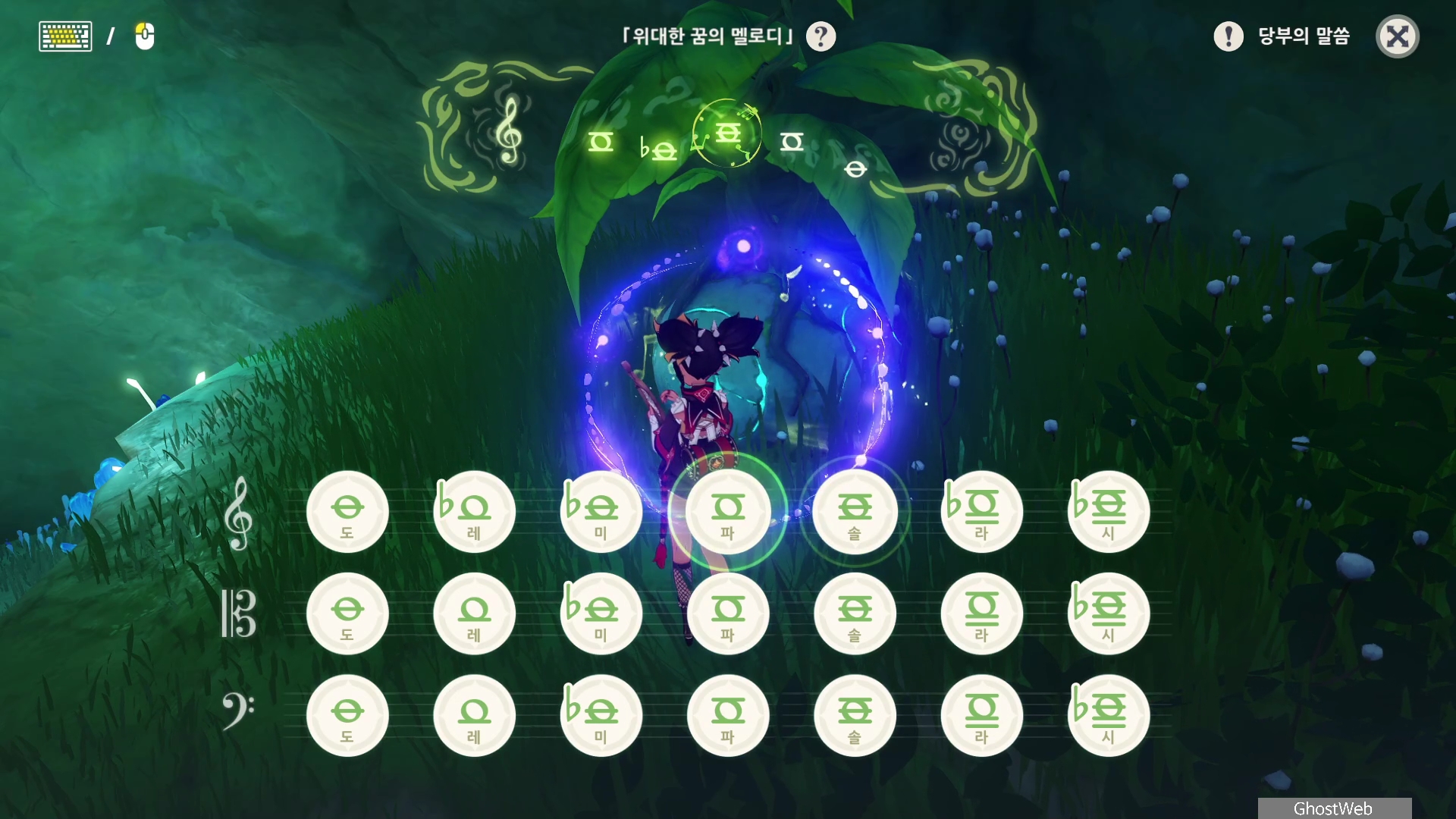 꿈 속으로 들어가 잎 3개를 가지 방향으로 돌리고 다시 시라프나 앞에서 위대한 꿈의 멜로디를 연주하여 다시 현재로 돌아오세요.