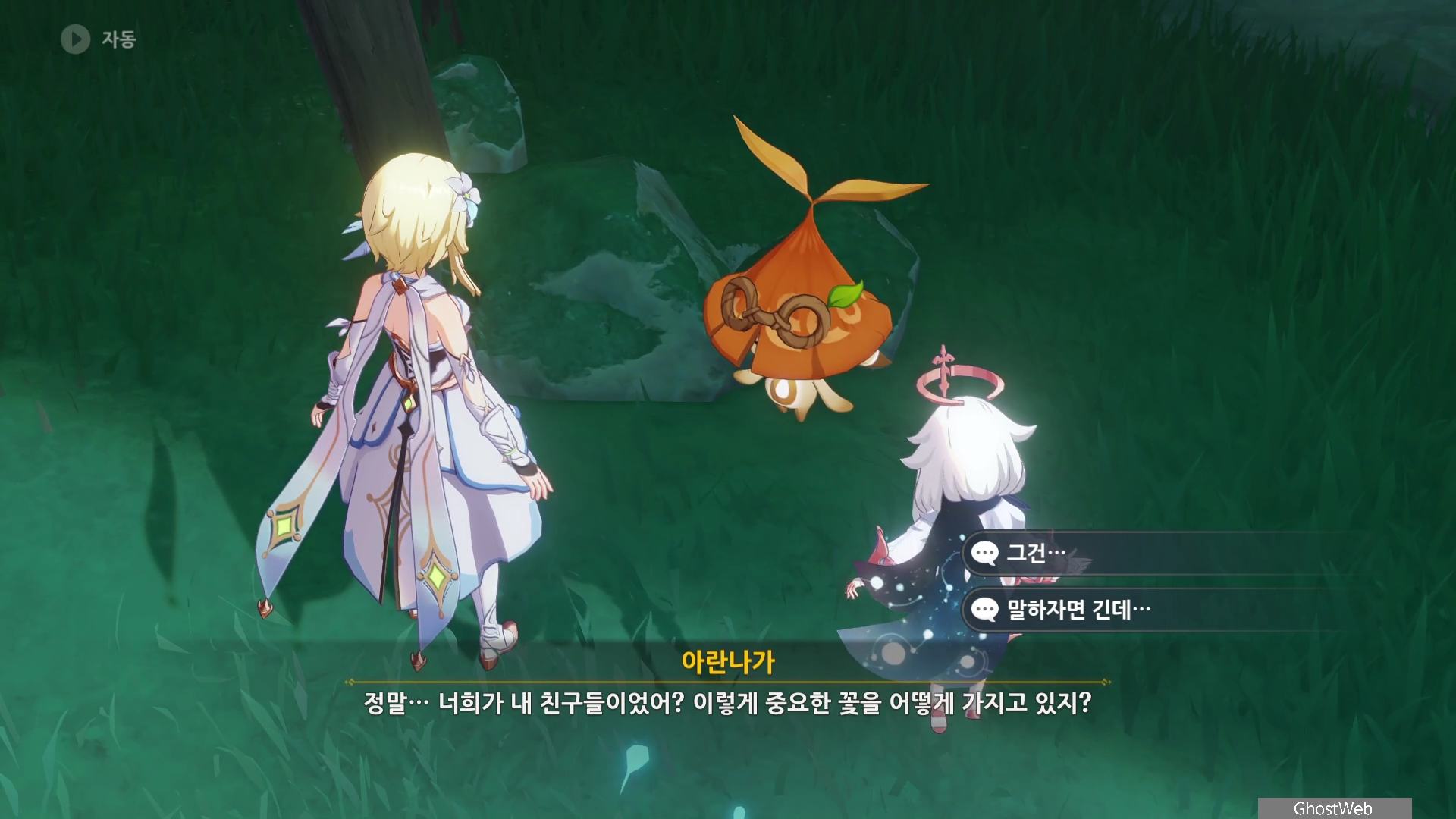 각 지역에 있는 식물을 조사하고 하이얌도 아란나라를 만났다는 사실을 알게되고 하이얌이 있는 곳에서 새로운 식물을 조사를 끝으로 하이얌이 여행자에게 줄 선물이 있다면서 야영지로 돌아가자고 해요.