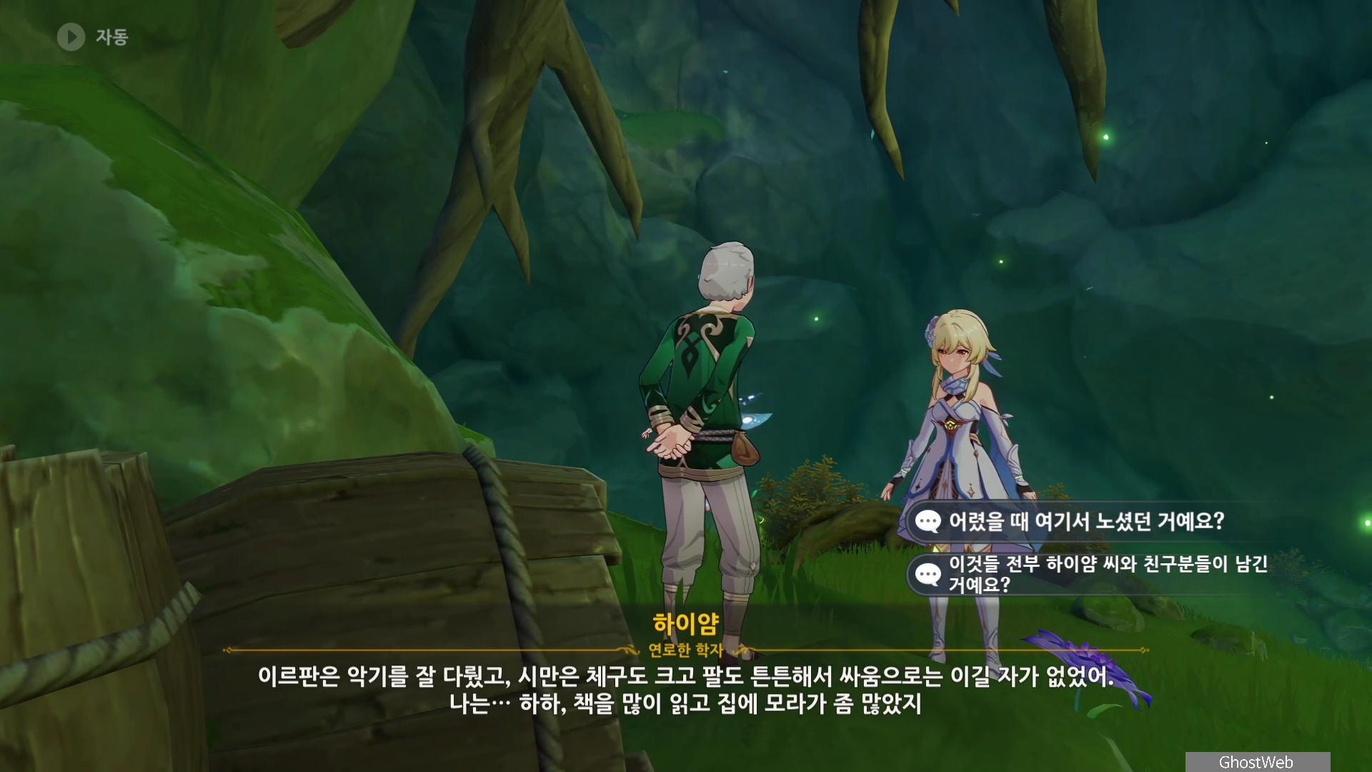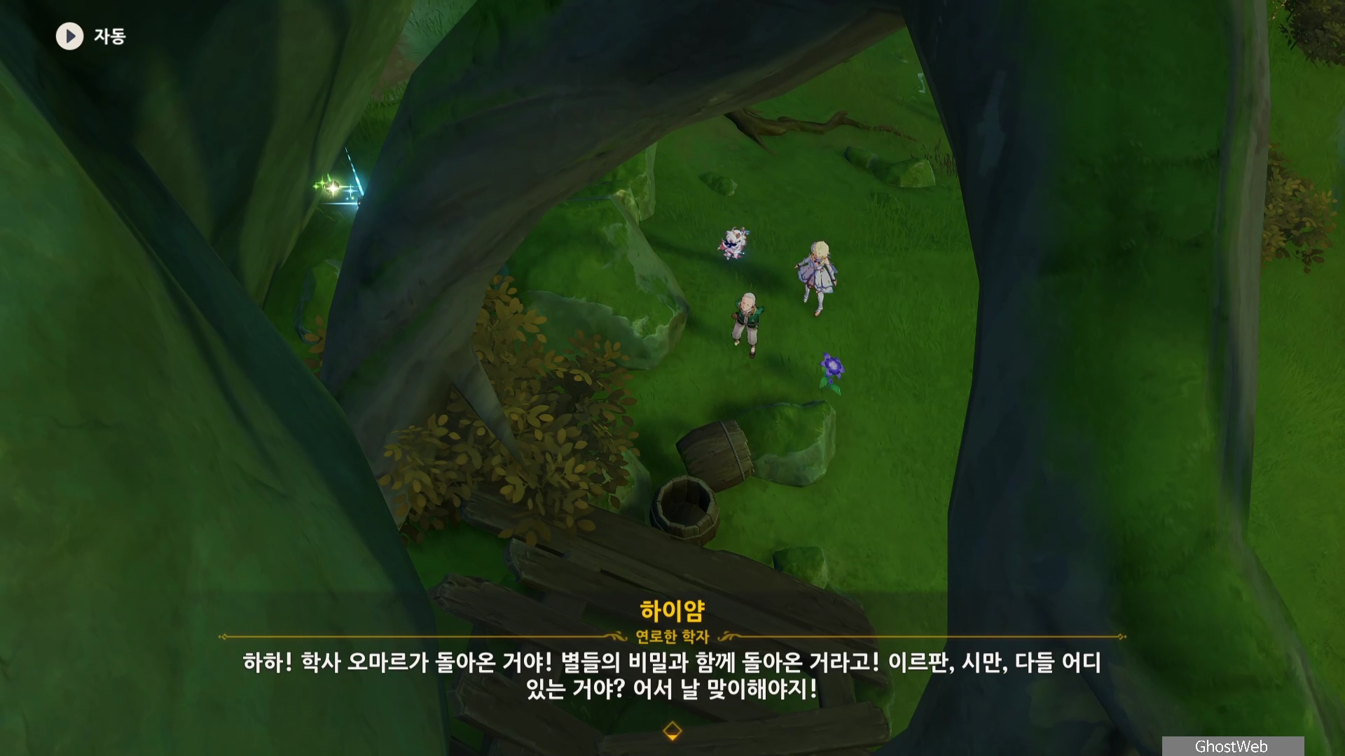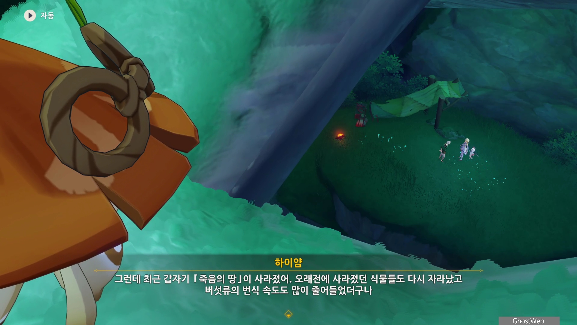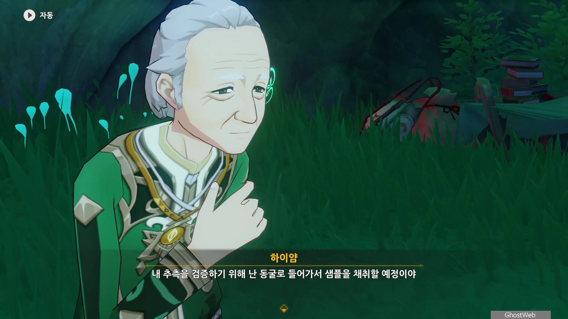 하이얌은 산림학자로 숲을 연구하고 있는데 최근데 죽음의 땅이 사라지고 사라졌던 식물들이 다시 자라났다며 이를 검증하기 동굴에 들어가려고 하는데, 동굴 안은 아직 위험하다는 페이몬의 말에 여행자와 함께 동굴로 들어가기로 해요.