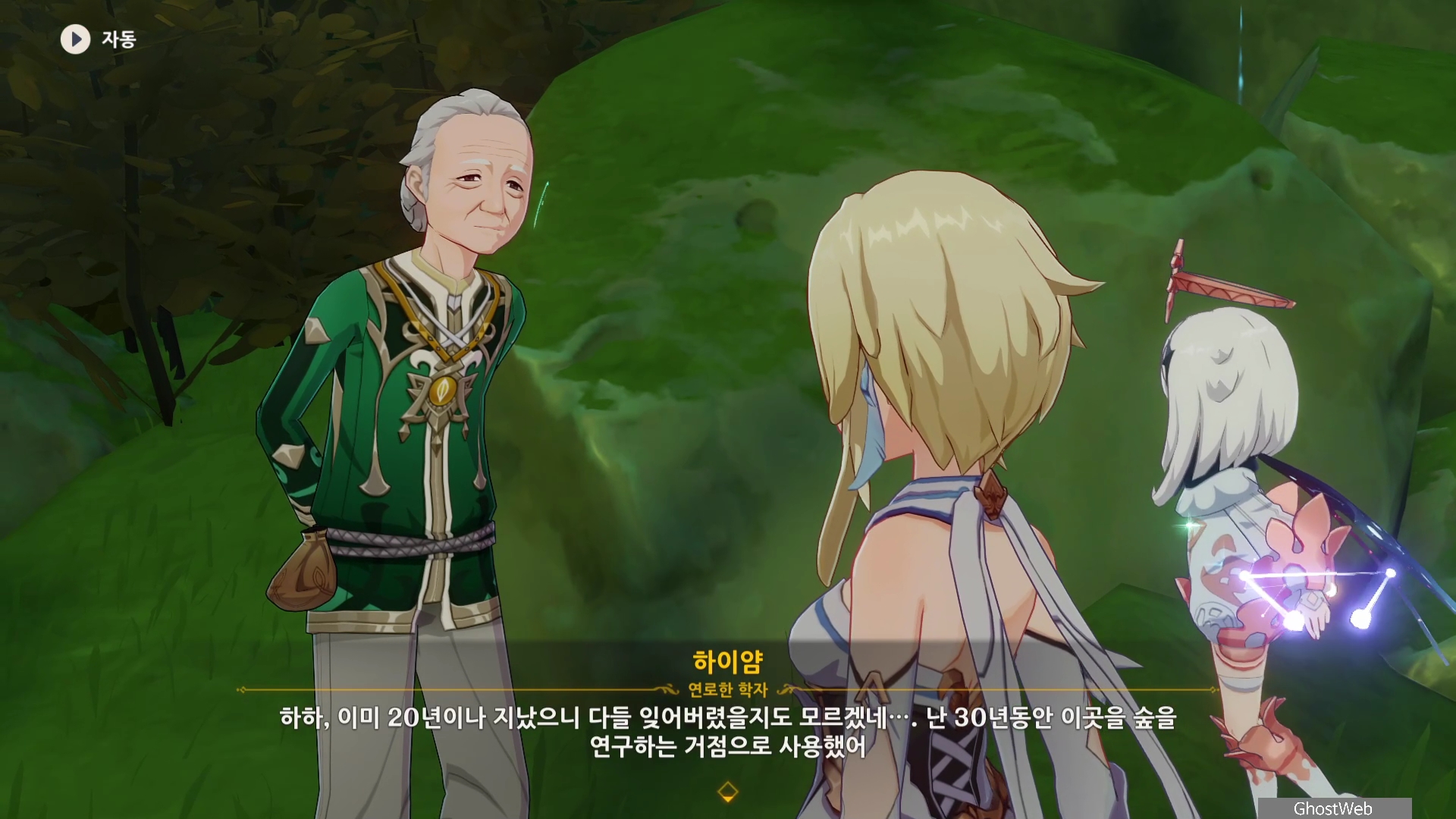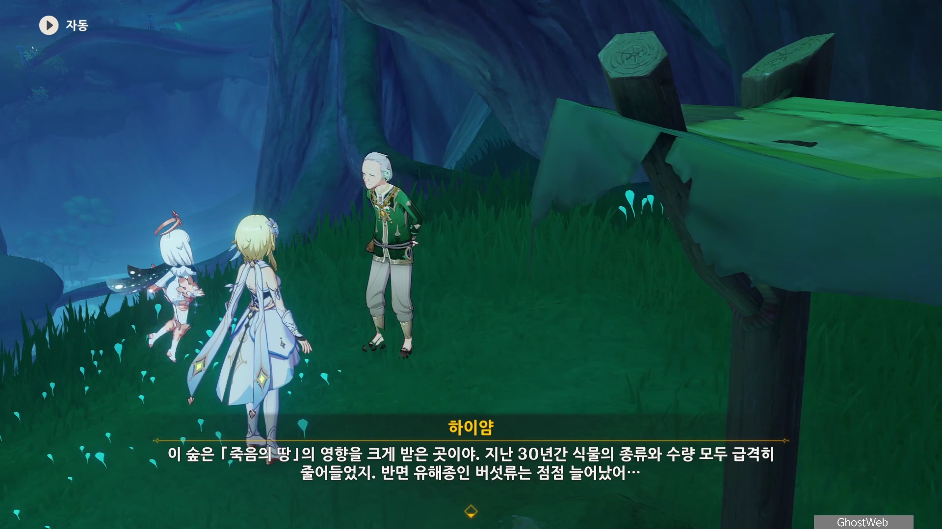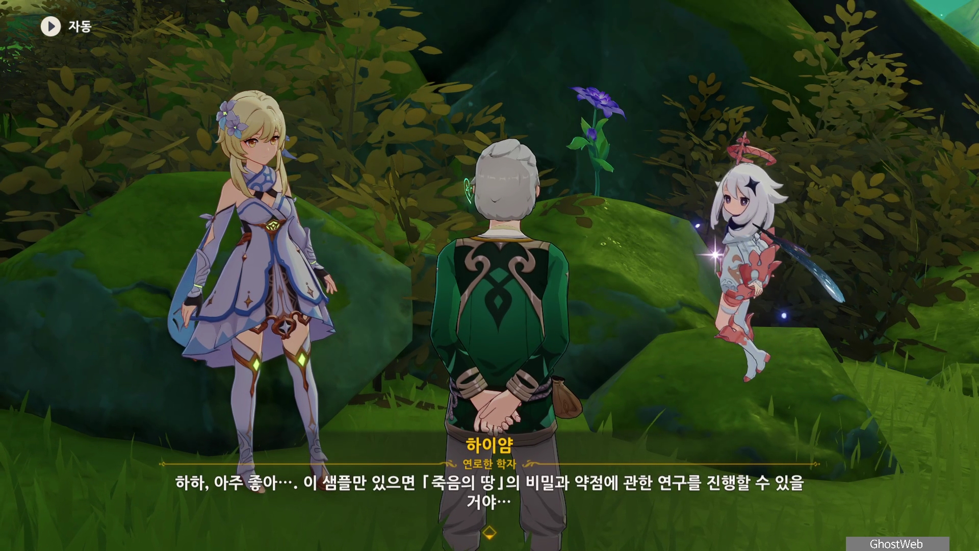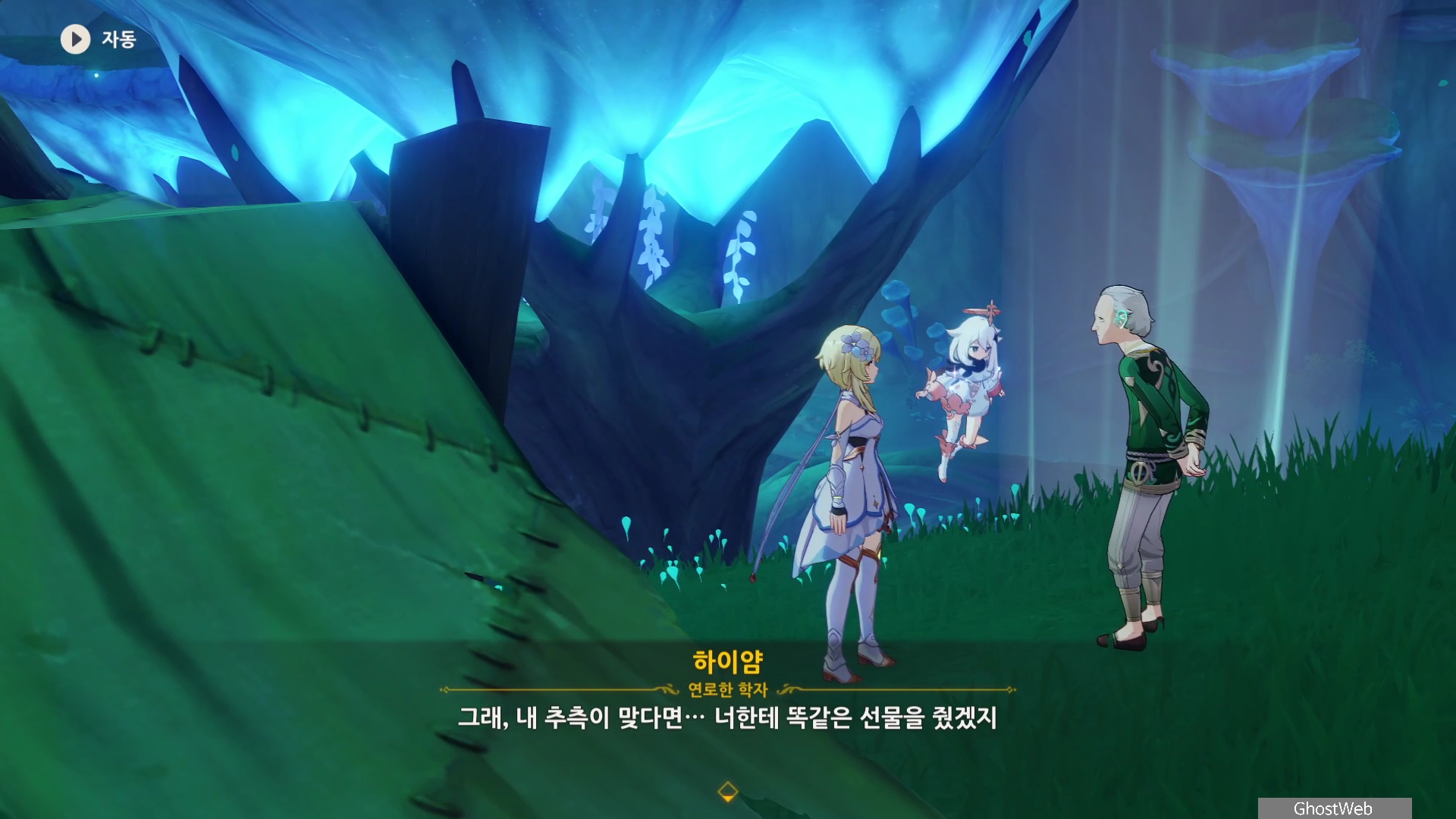 하이얌은 산림학자로 숲을 연구하고 있는데 최근데 죽음의 땅이 사라지고 사라졌던 식물들이 다시 자라났다며 이를 검증하기 동굴에 들어가려고 하는데, 동굴 안은 아직 위험하다는 페이몬의 말에 여행자와 함께 동굴로 들어가기로 해요.
