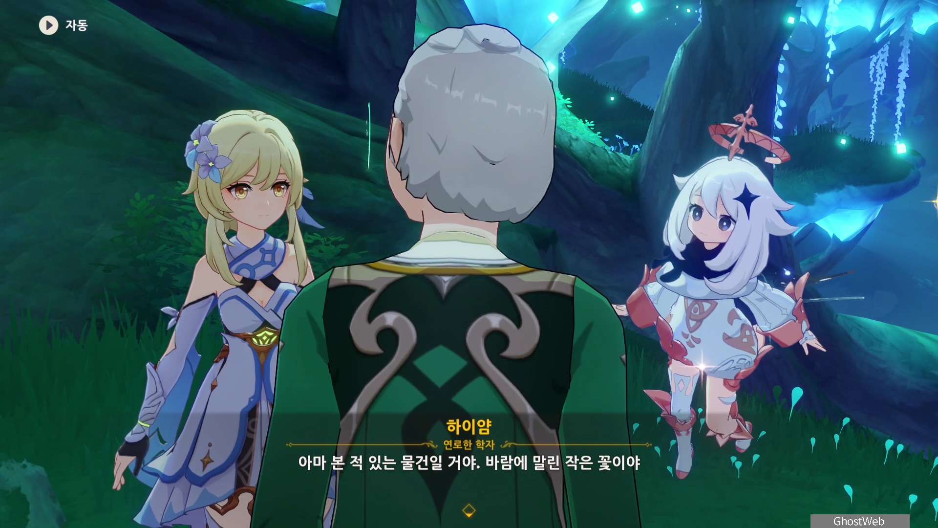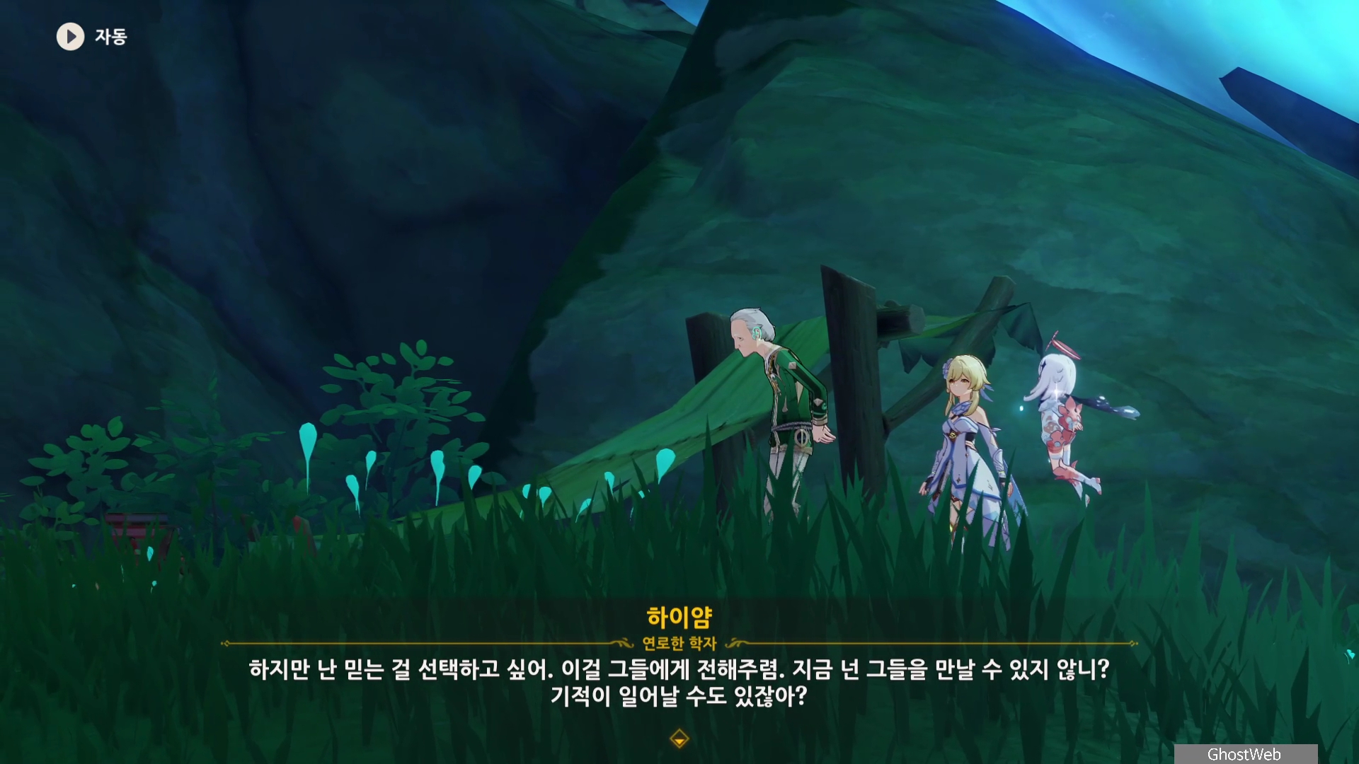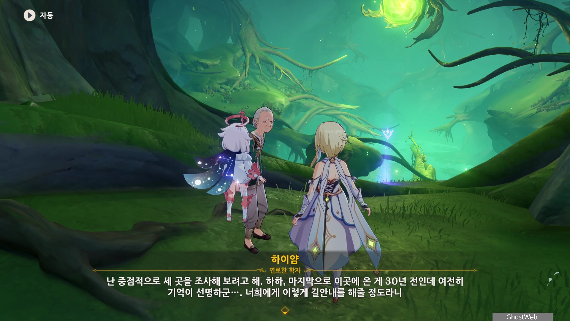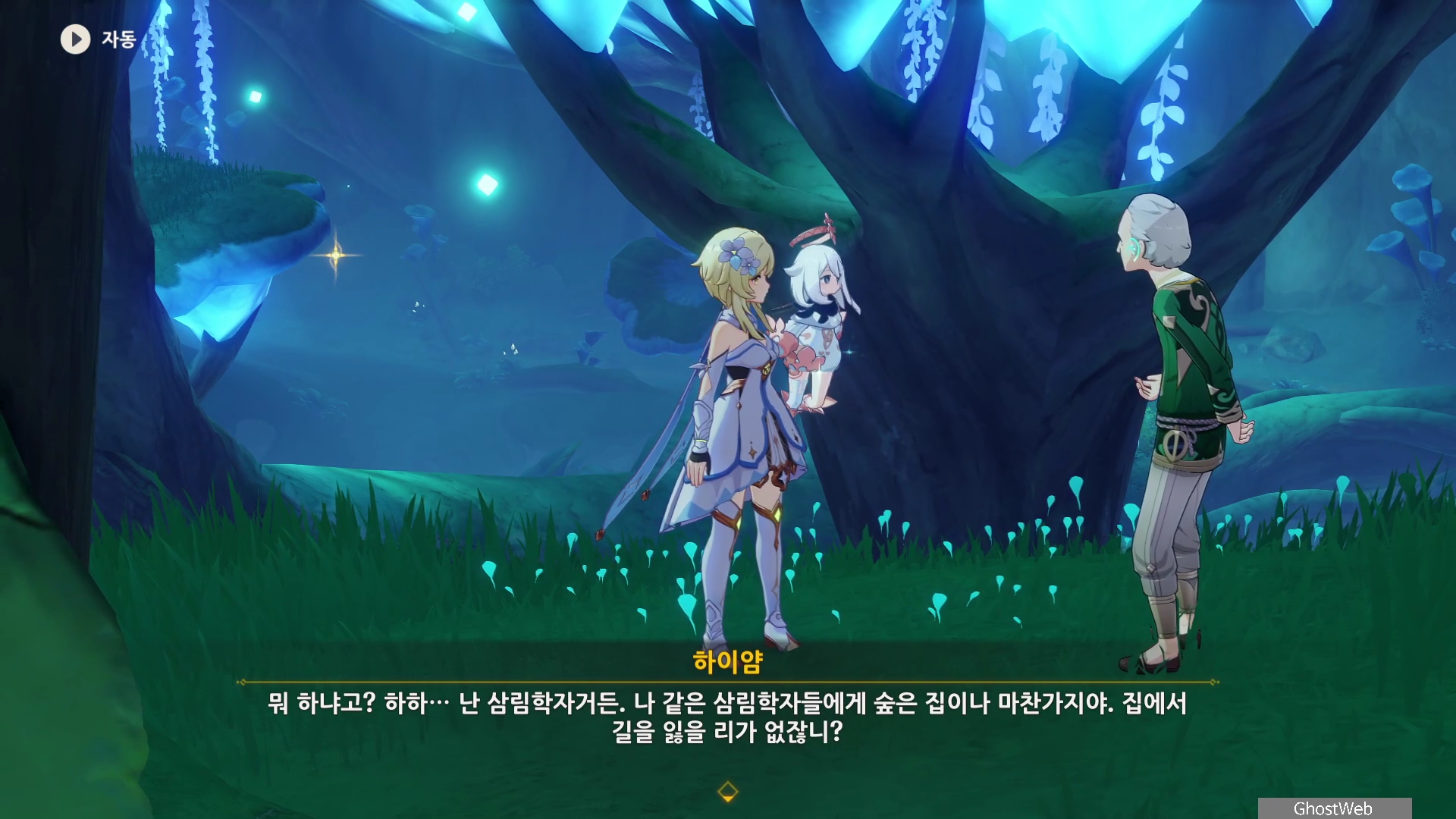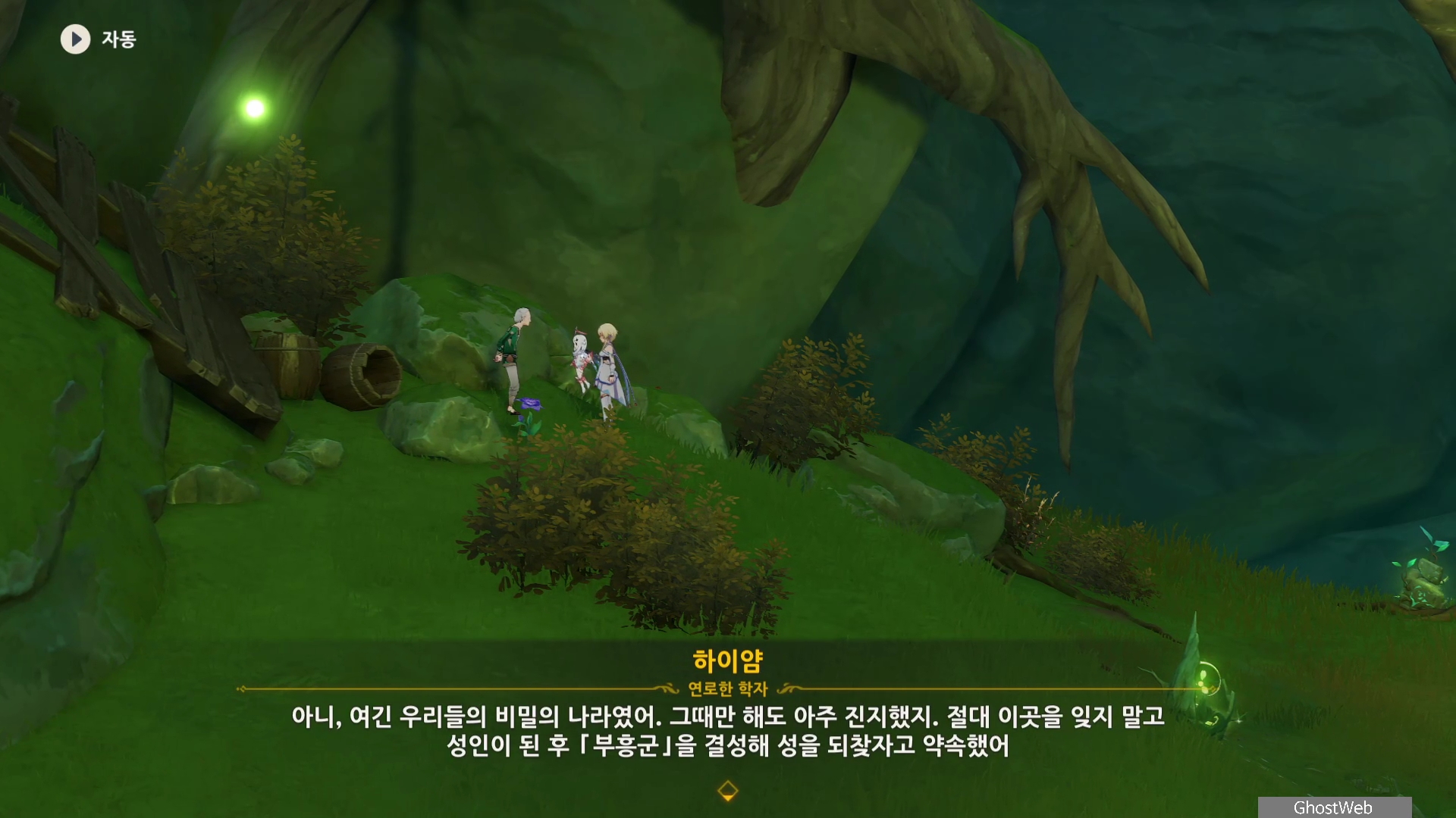하이얌은 산림학자로 숲을 연구하고 있는데 최근데 죽음의 땅이 사라지고 사라졌던 식물들이 다시 자라났다며 이를 검증하기 동굴에 들어가려고 하는데, 동굴 안은 아직 위험하다는 페이몬의 말에 여행자와 함께 동굴로 들어가기로 해요.