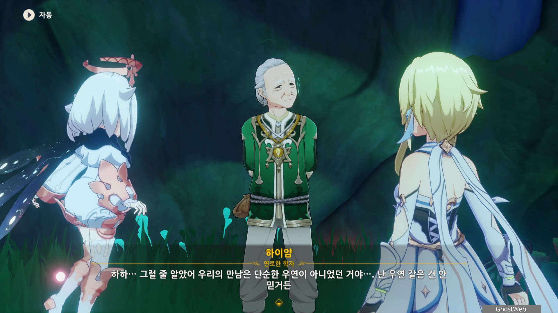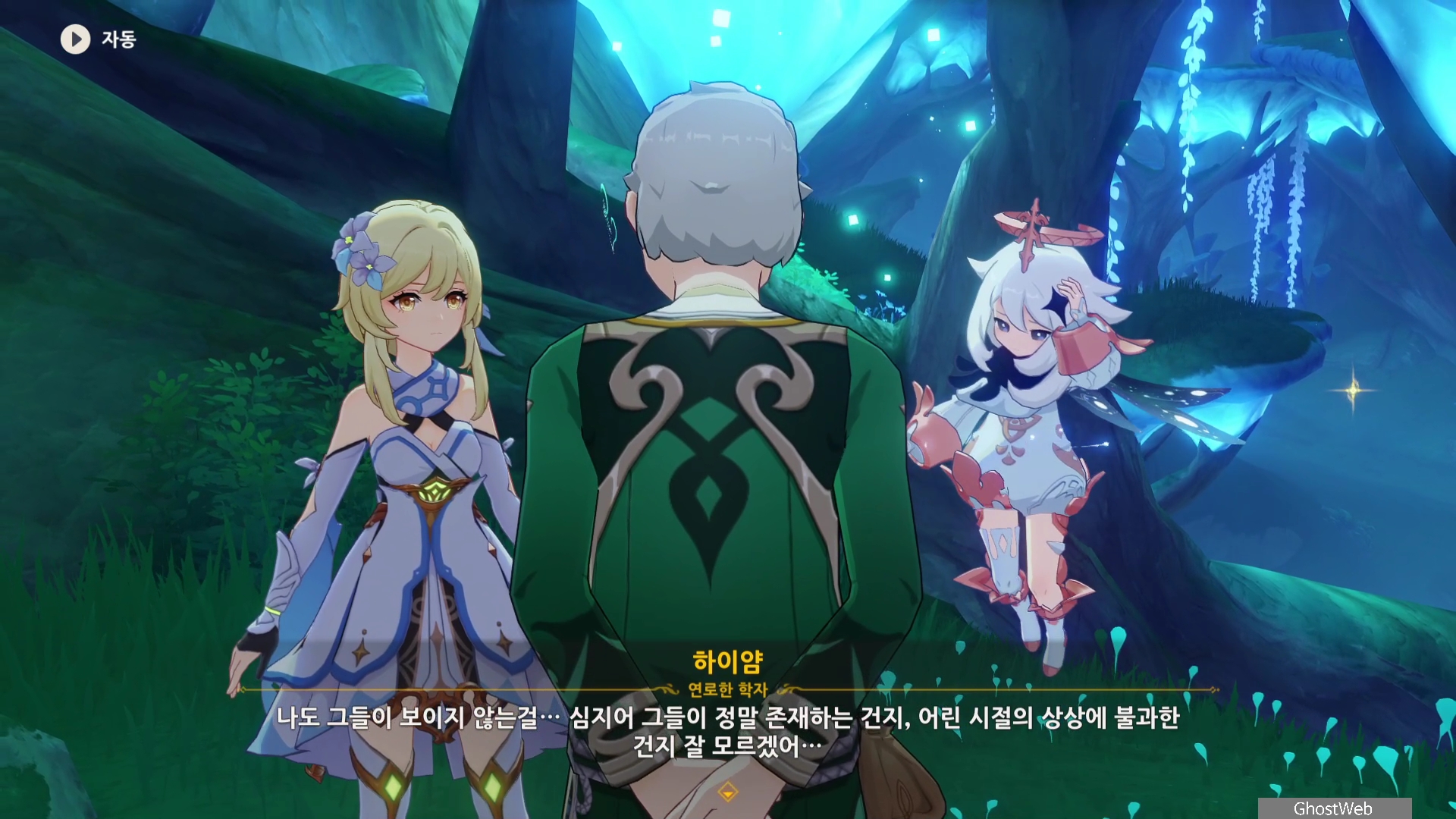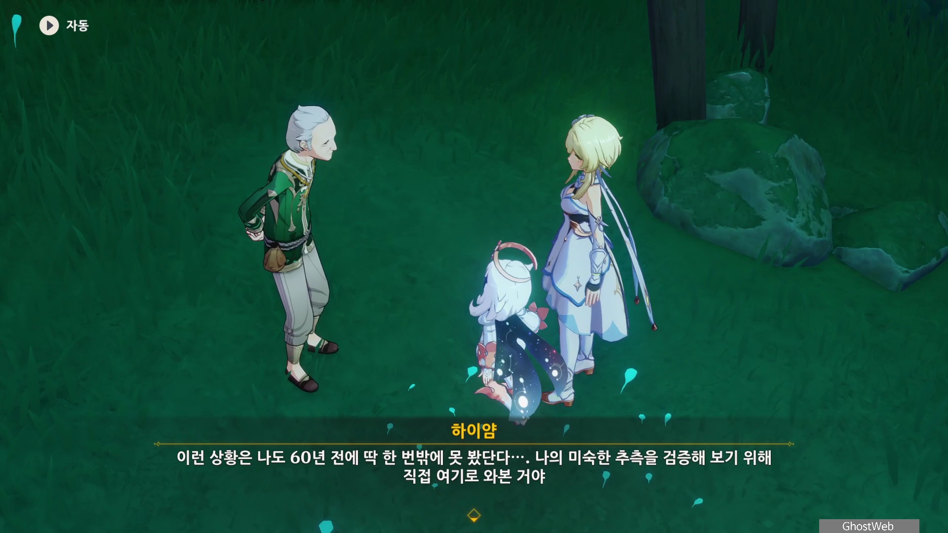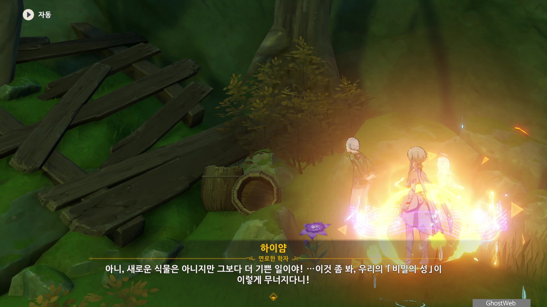 하이얌은 산림학자로 숲을 연구하고 있는데 최근데 죽음의 땅이 사라지고 사라졌던 식물들이 다시 자라났다며 이를 검증하기 동굴에 들어가려고 하는데, 동굴 안은 아직 위험하다는 페이몬의 말에 여행자와 함께 동굴로 들어가기로 해요.