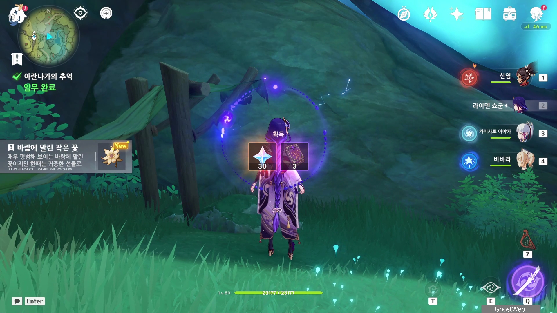 여행자가 내민 꽃을 보고 중요한 꽃이라고 말을 하지만, 그 동안 여행자에 대한 기억을 잃어버려, 꽃을 심으러 가야 한다는 말과 나중에 자기 화원으로 놀러오라는 대화를 끝으로 임무 보상 원석 30개, 바람에 말린 작은 꽃을 얻을 수 있어요.