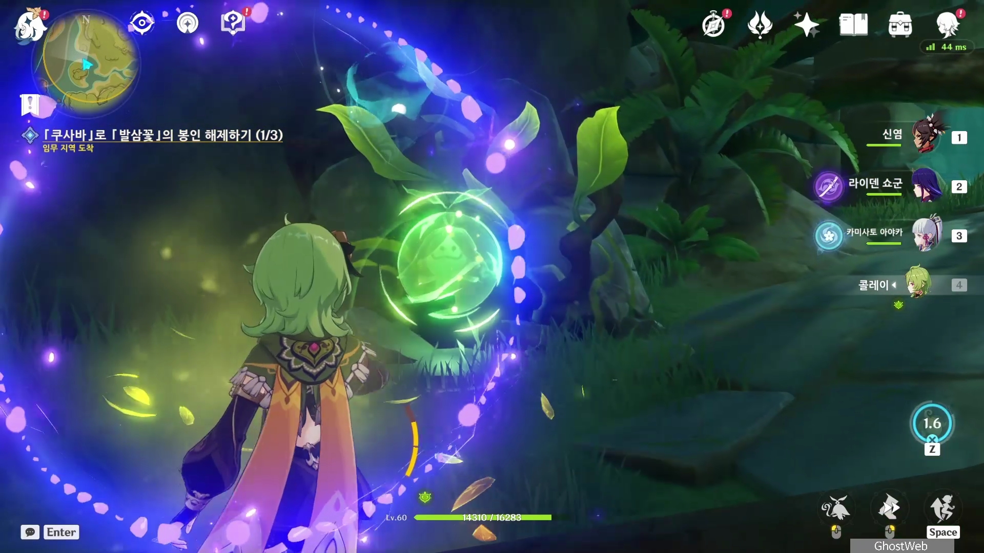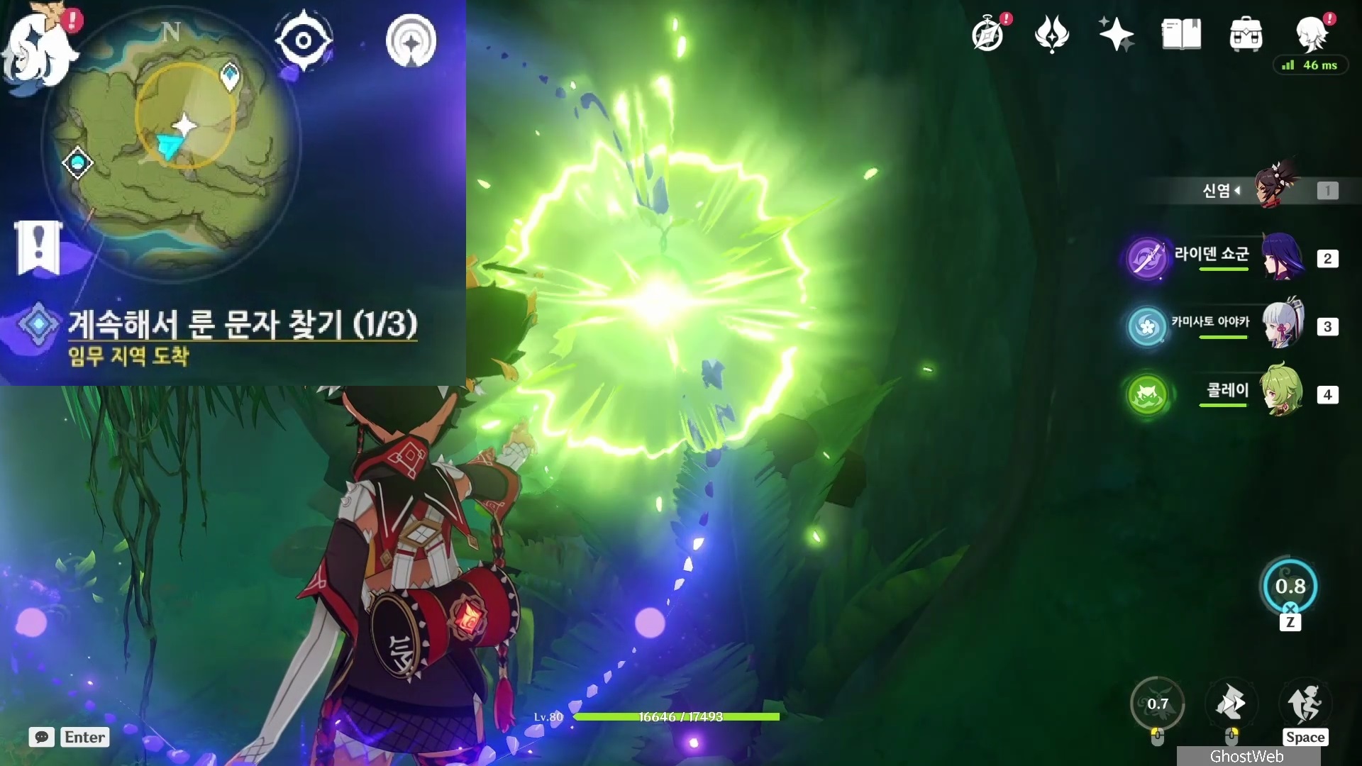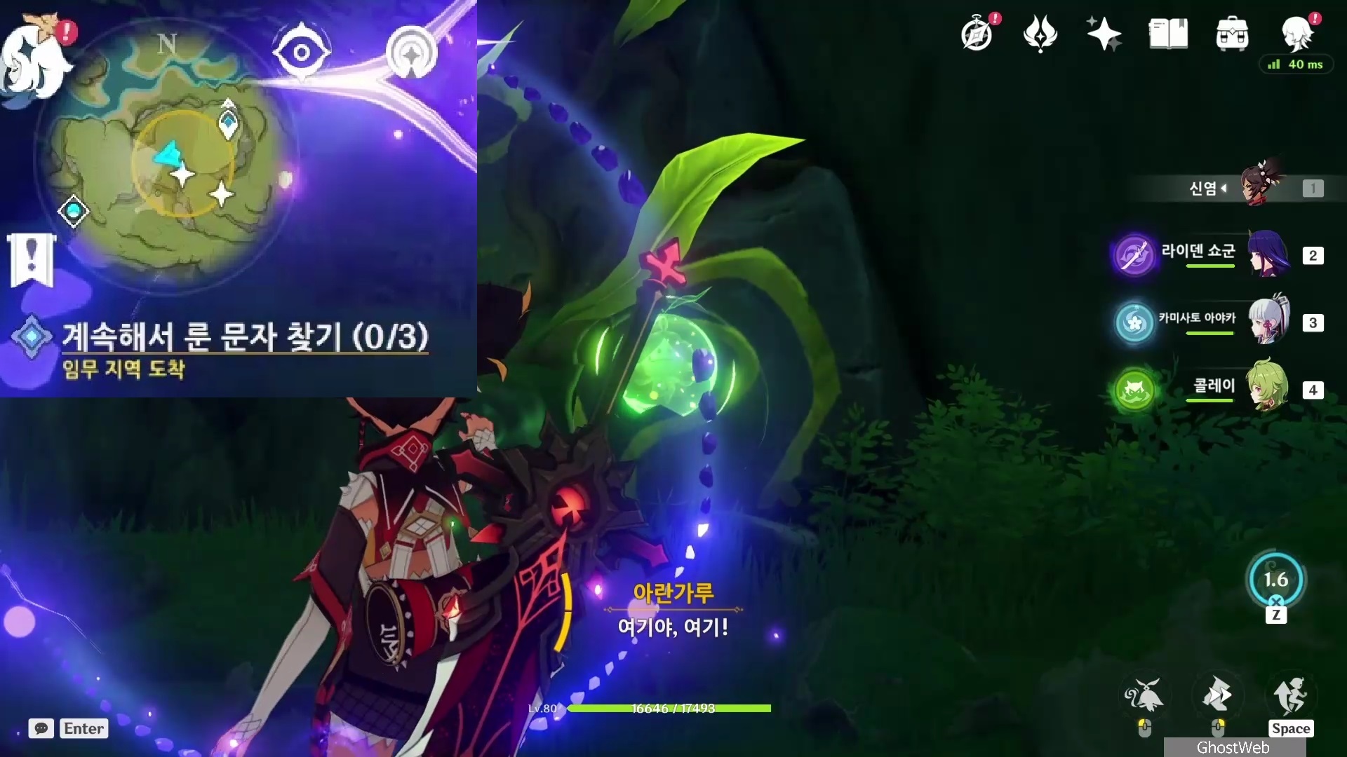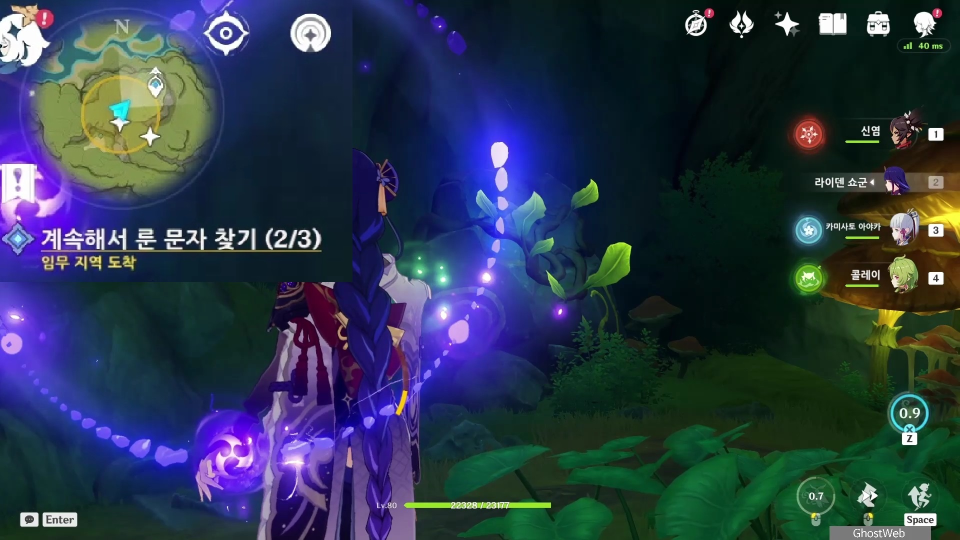 모든 룬 문자를 찾고 발삼꽃이 있는 동굴 중심으로 가면 카브의 경지를 발견할 수 있는데, <발삼꽃>이 봉인이 되어 있어 보인 해제를 위해 먼저 중앙 기준 왼쪽, 오른쪽에 있는 동굴로 선령을 따라 이동하여 동굴 내부에 있는돌덩이를 <쿠사바>로 파괴한 후 나오는 장치를 만지면 발삼꽃의 봉인이 1개 씩 풀려요.