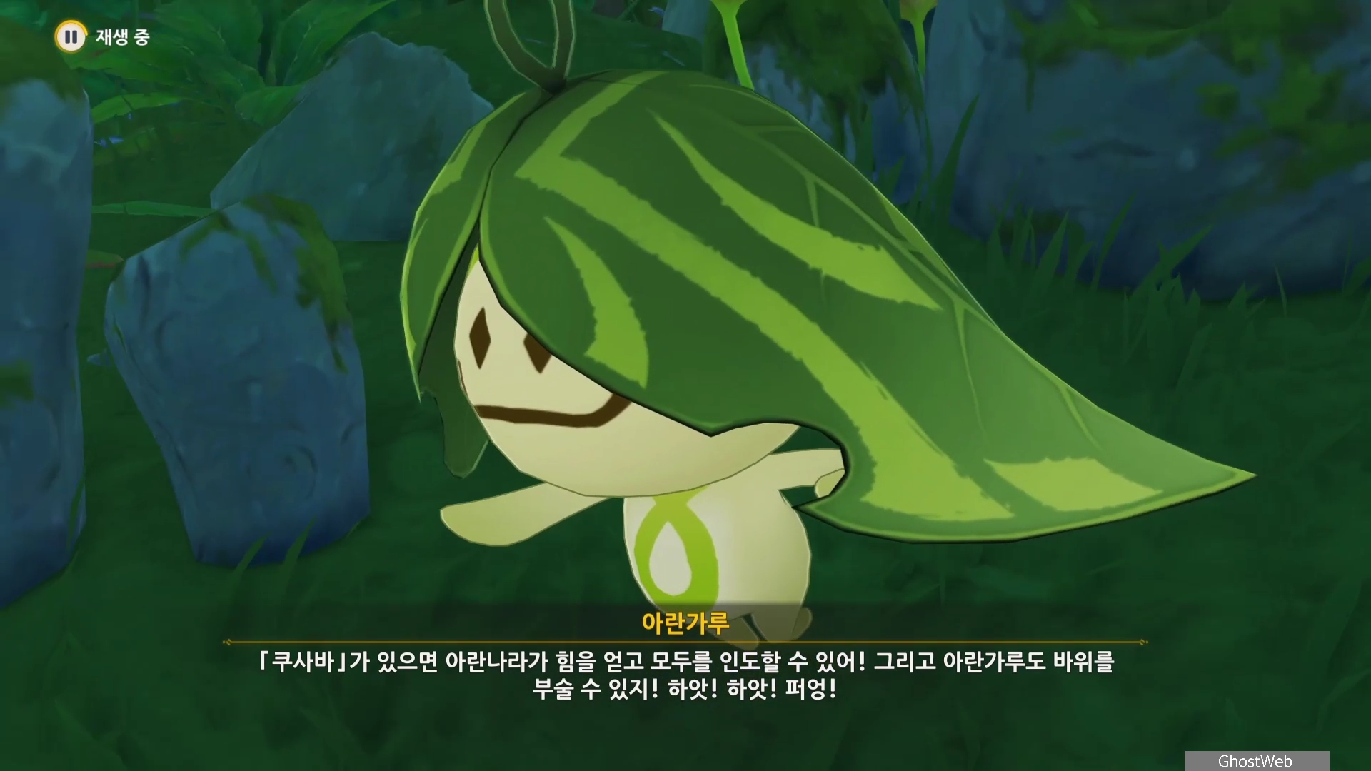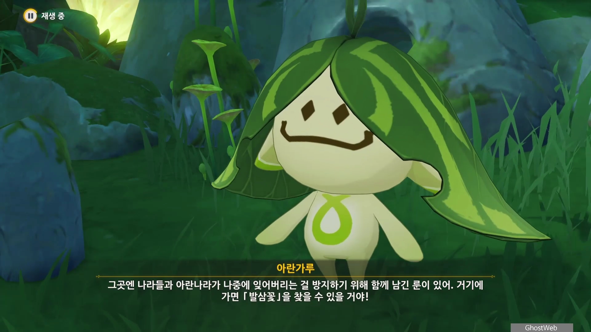 1. 초목의 대주인은 용사 나라의 마음에 지혜의새싹이 피게 하고, 아란나라로 하여금 그들을 인도해... 물빛이 반짝이는 동굴로 이끄는 거야.