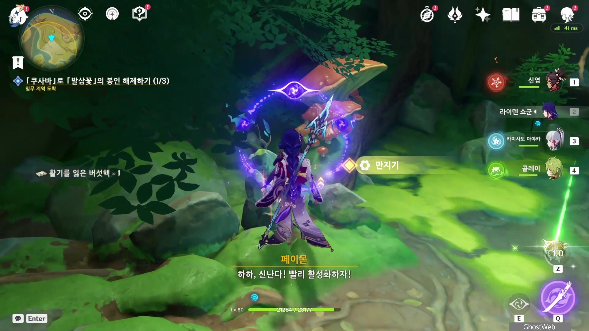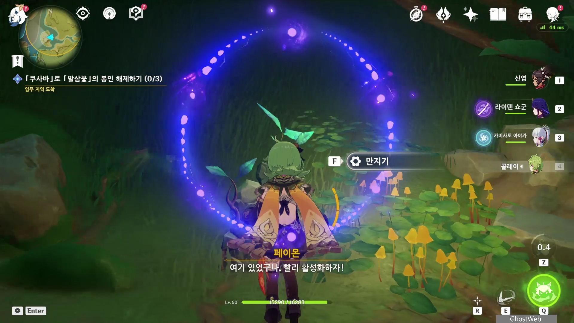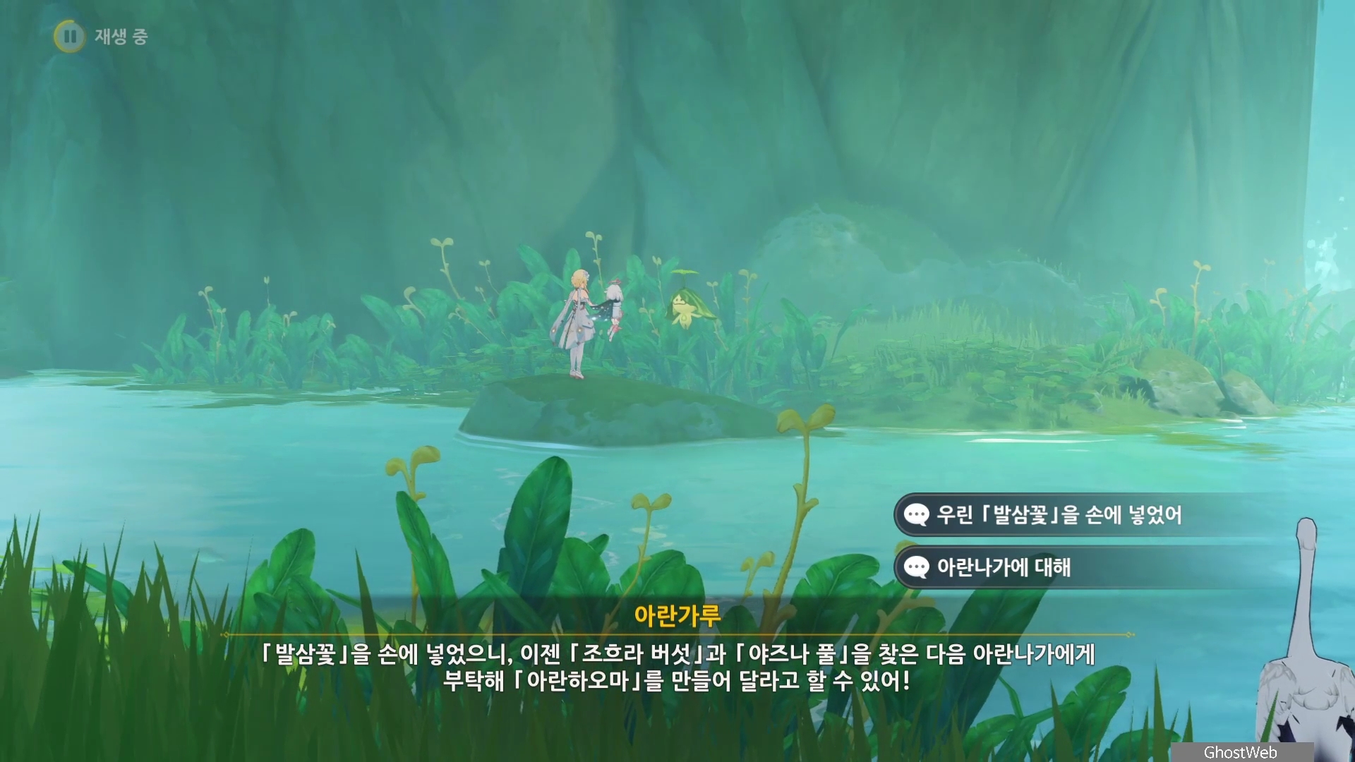 발삼꽃이 함께 모험을 떠나기로 했다는데, 갑자기 물이 차 올라 지상으로 올라와 이제 조흐라 버섯, 발삼꽃, 아즈나 풀을 찾은 다음 아란나가에게 아란하오마를 만들어 달라고 부탁할 수 있다는 대화를 끝으로 아란가루는 마우티이마 숲에서 아란하오마 의식을 준비하러 떠나고 임무 보상으로 발삼꽃, 원석 40개를 획득할 수 있어요.