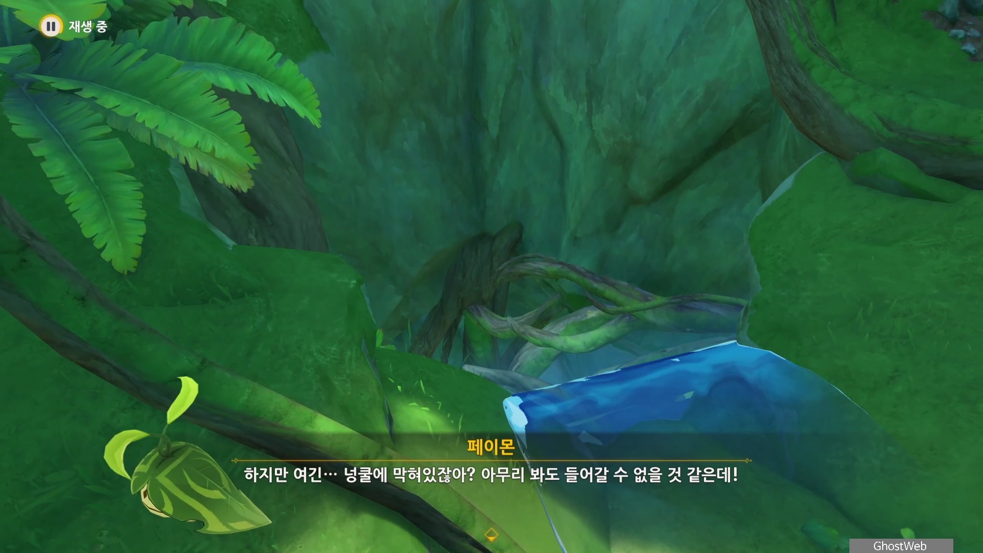 위쪽에 있는 차트라캄 동굴로 들어가 동굴 입구를 막고 있는 바위에 Z키를 눌러 <쿠사바>를 바위에 조준하고 사용하면 바위가 파괴되며 동굴 내부로 들어갈 수 있어요. (인벤토리에서 쿠사바 장착 후 사용)