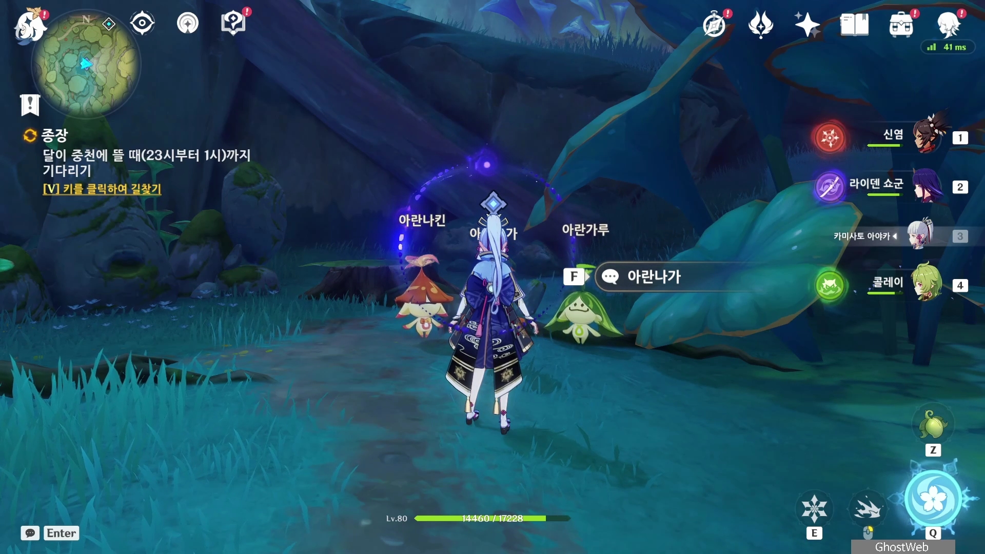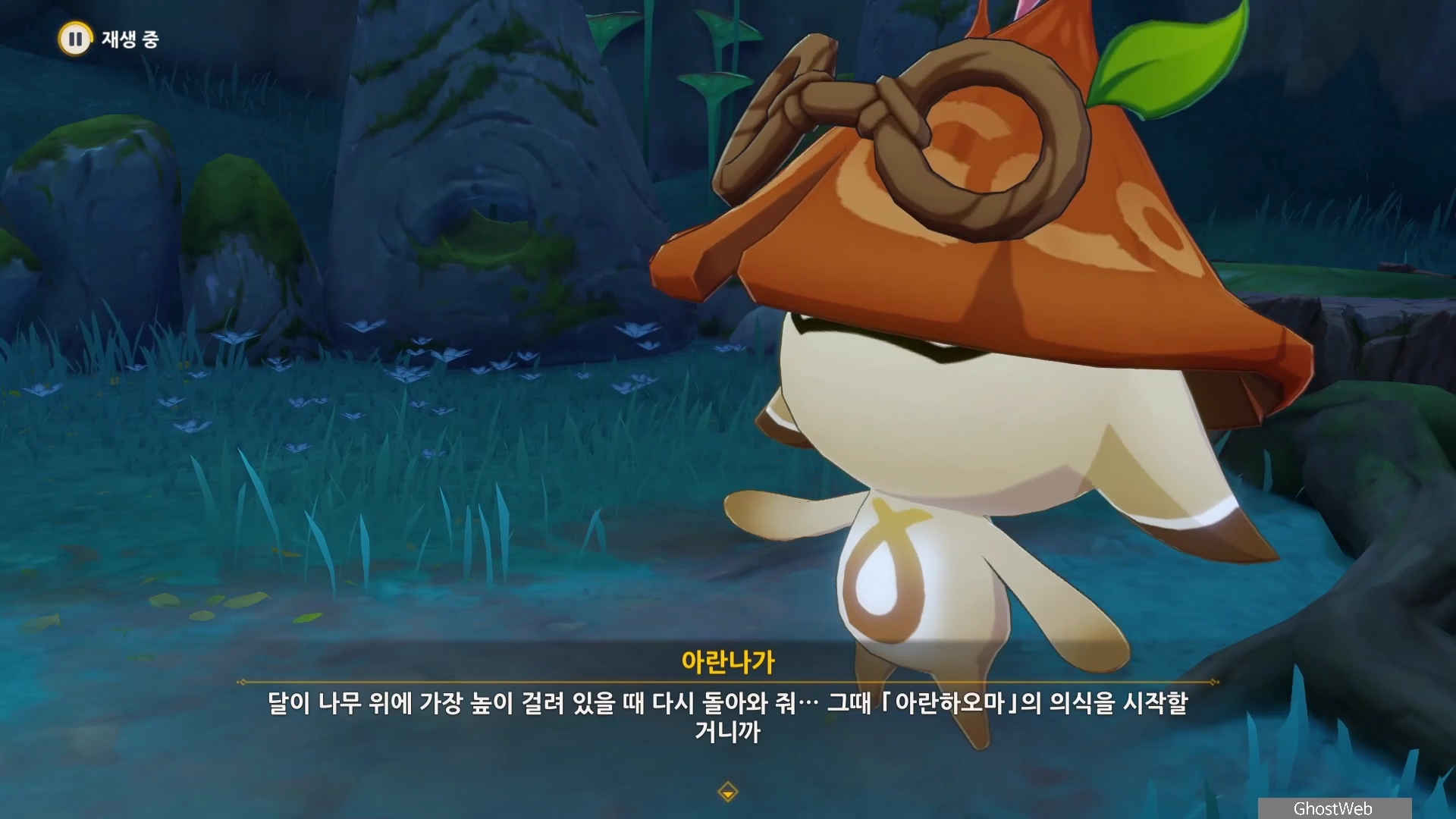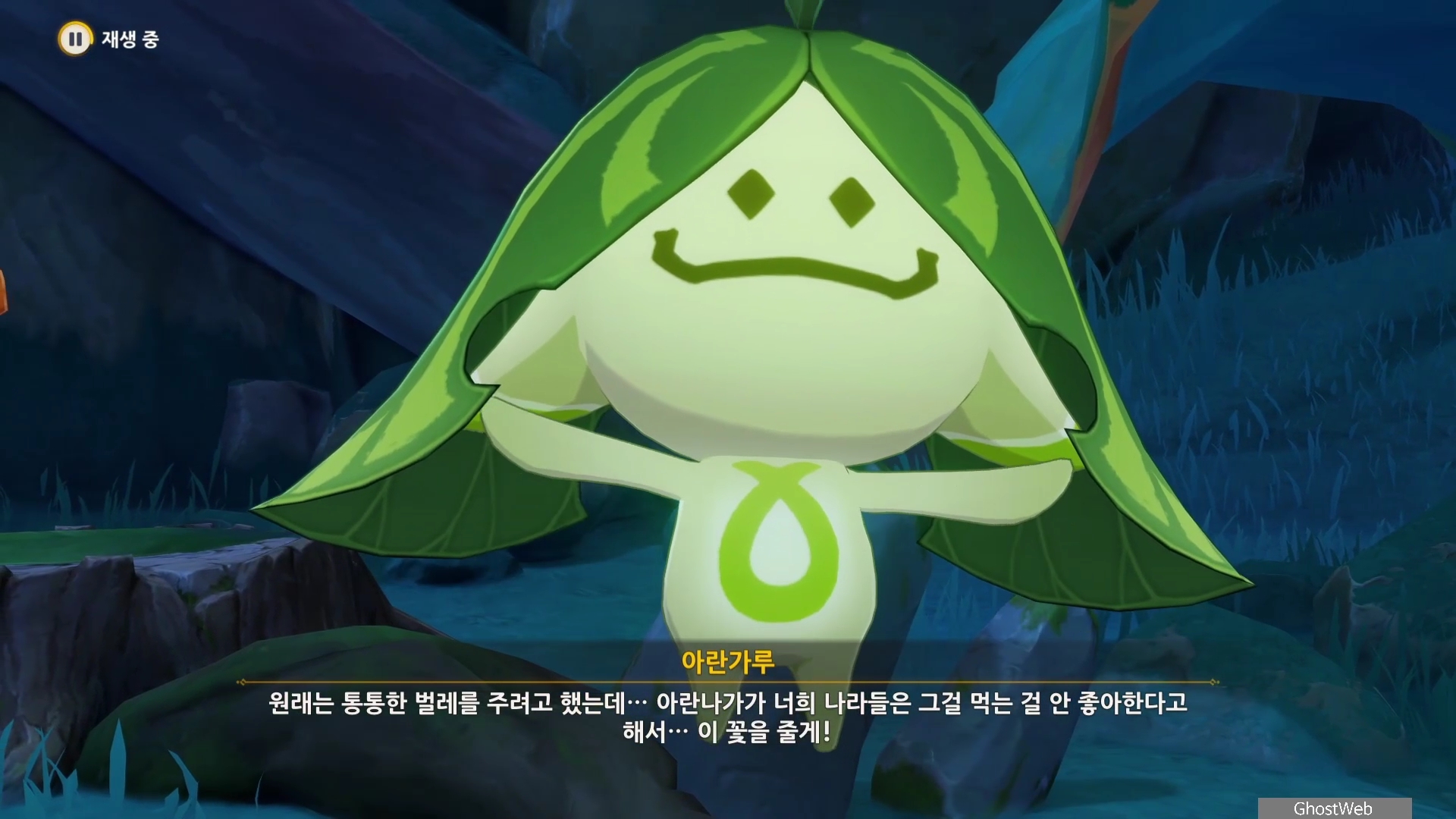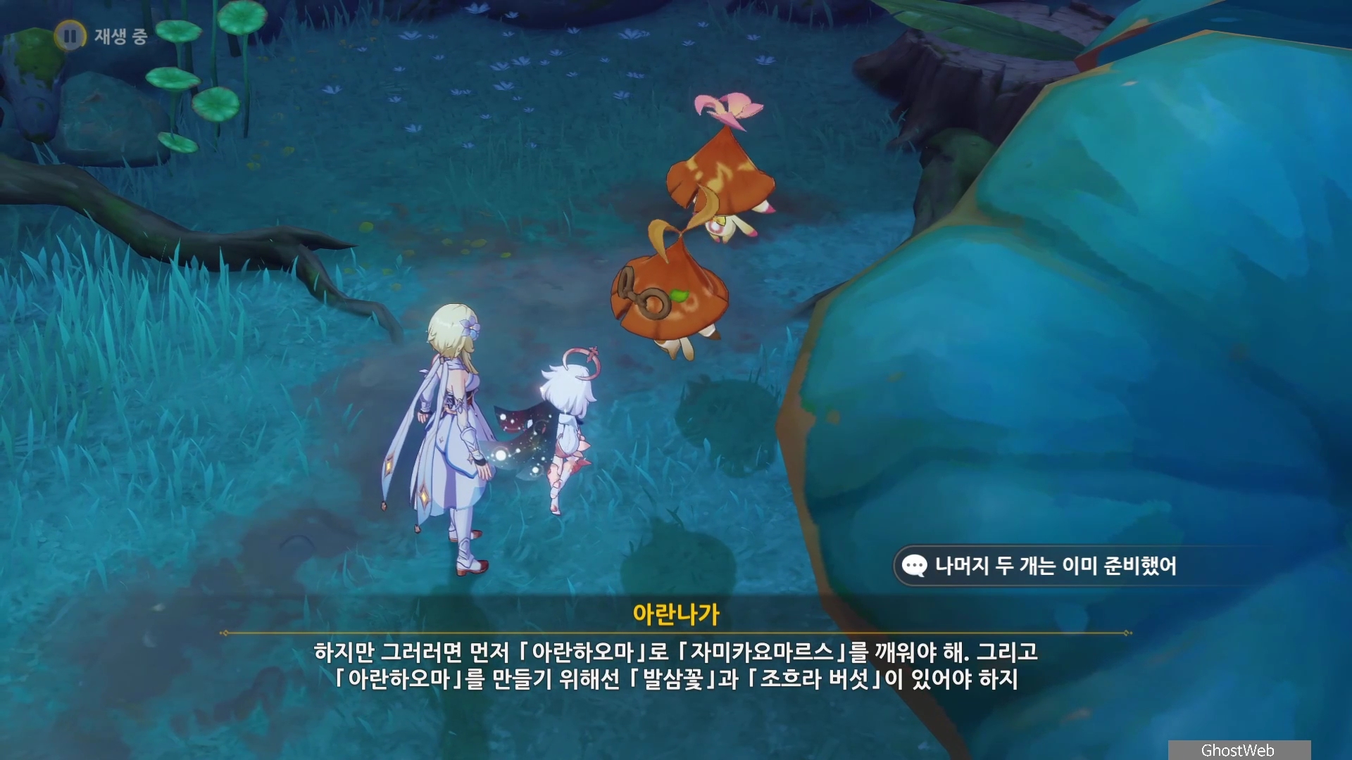 시간을 조정하여 23시에 다시 아란나가에게 가면 숲을 구해준 여행자에게 꽃(아란나가/아란나킨/아란가루의 꽃)을 선물하고 <아란하오마> 의식을 시작하고 만들어진 아란하오마를 들고 자마카요마르스로 가서 아란하오마를 바치세요.