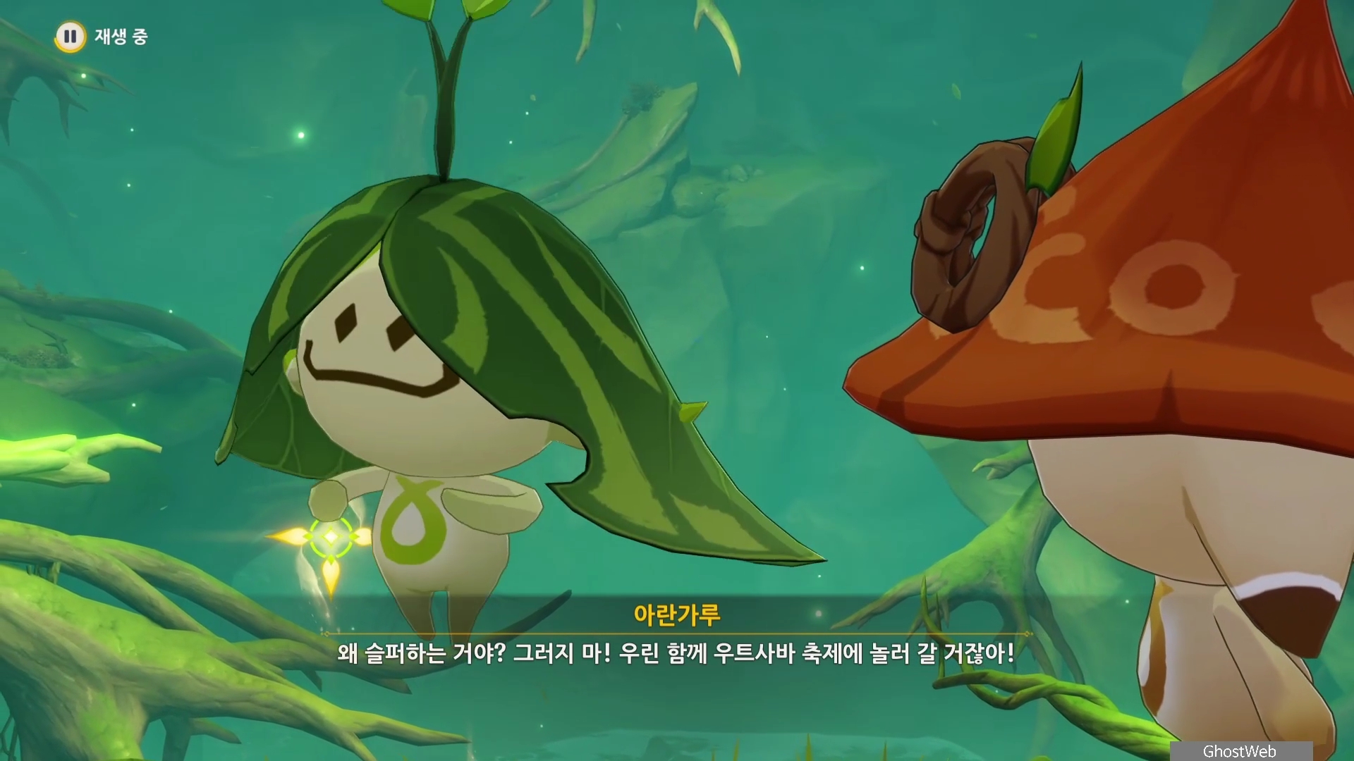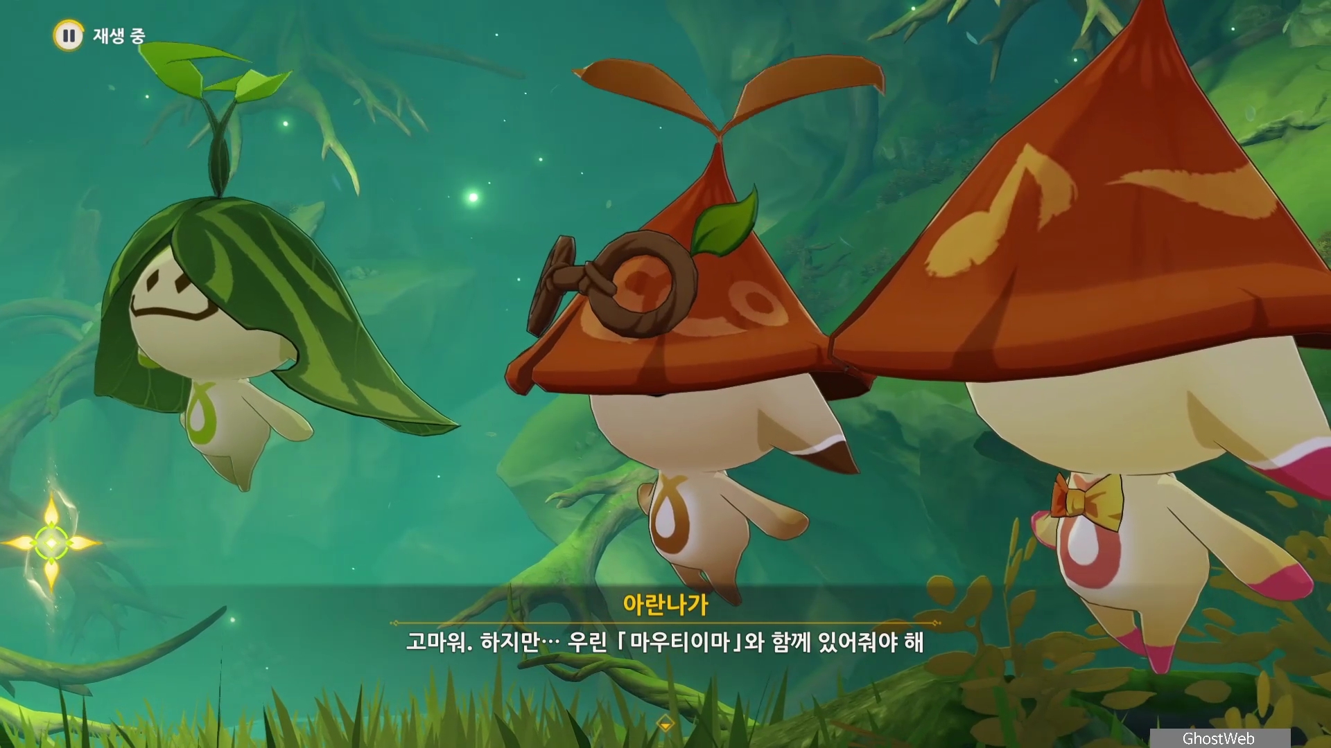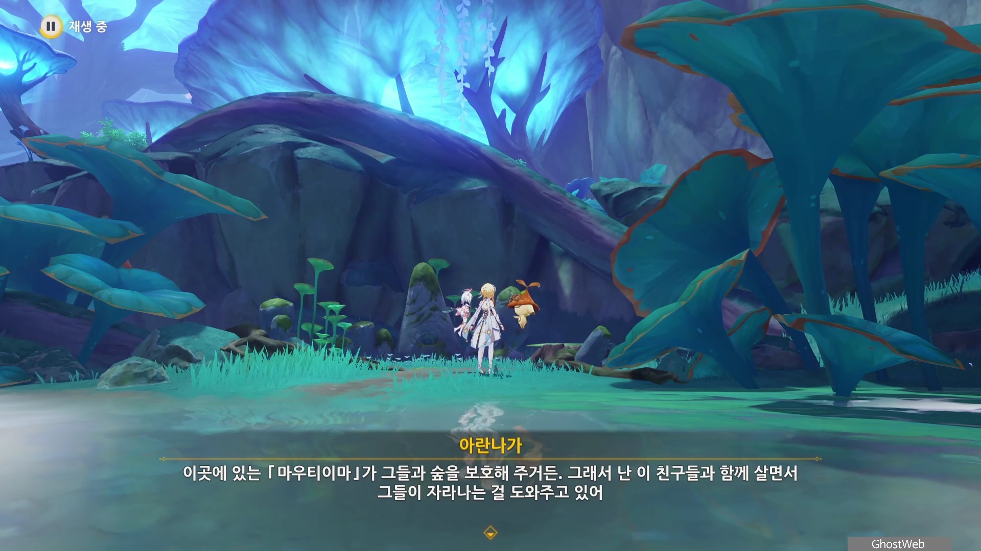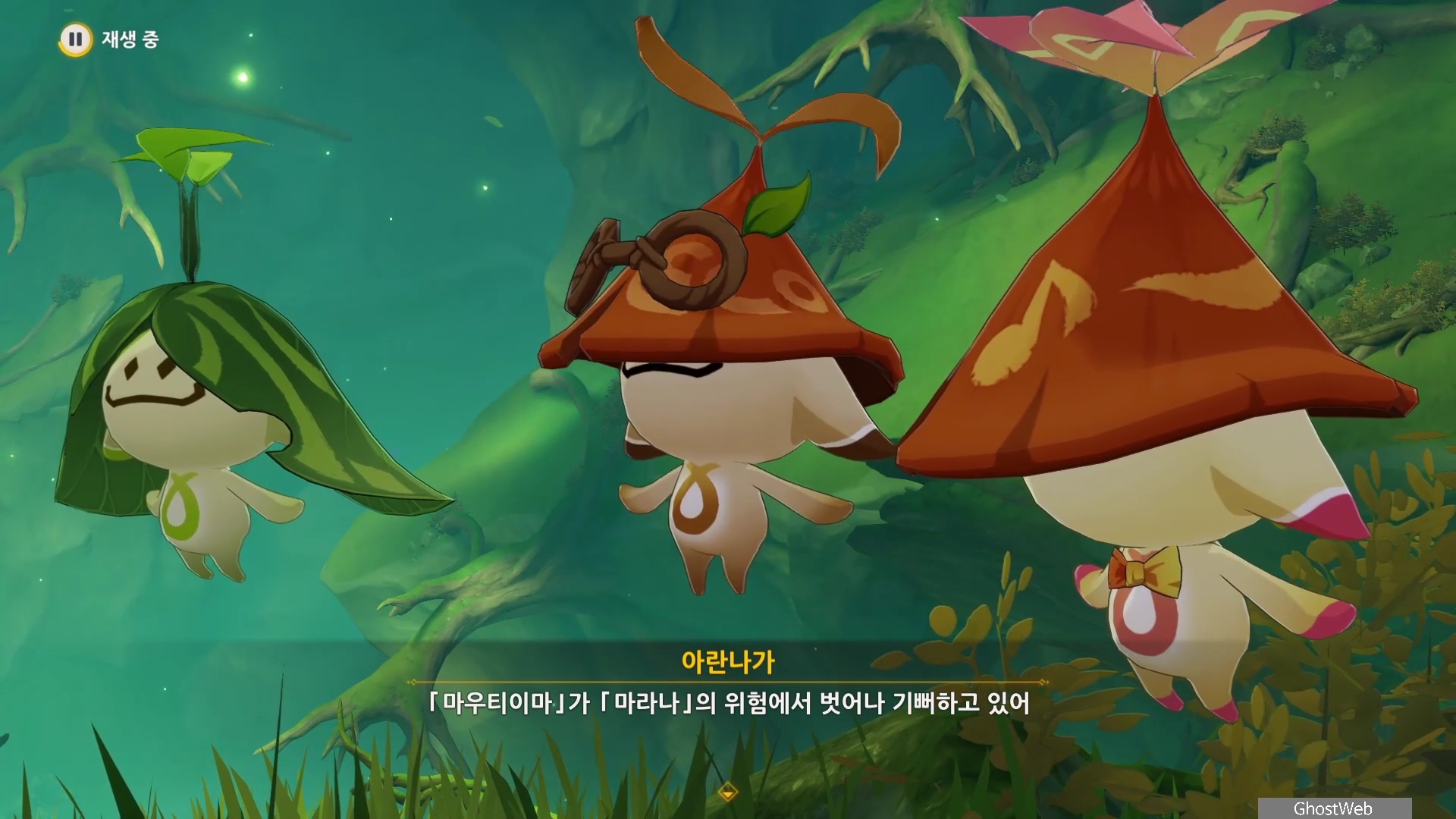 아란나가와 대화를 통해 마라나에게 집어삼켜진 마우티이마가 슬퍼하고 있다며, 여행자에게 야즈나 풀이 있는 곳으로 데려다 주겠다고 해요. (초목의 언어에서 야즈나 풀은 떨어짐을 의미)