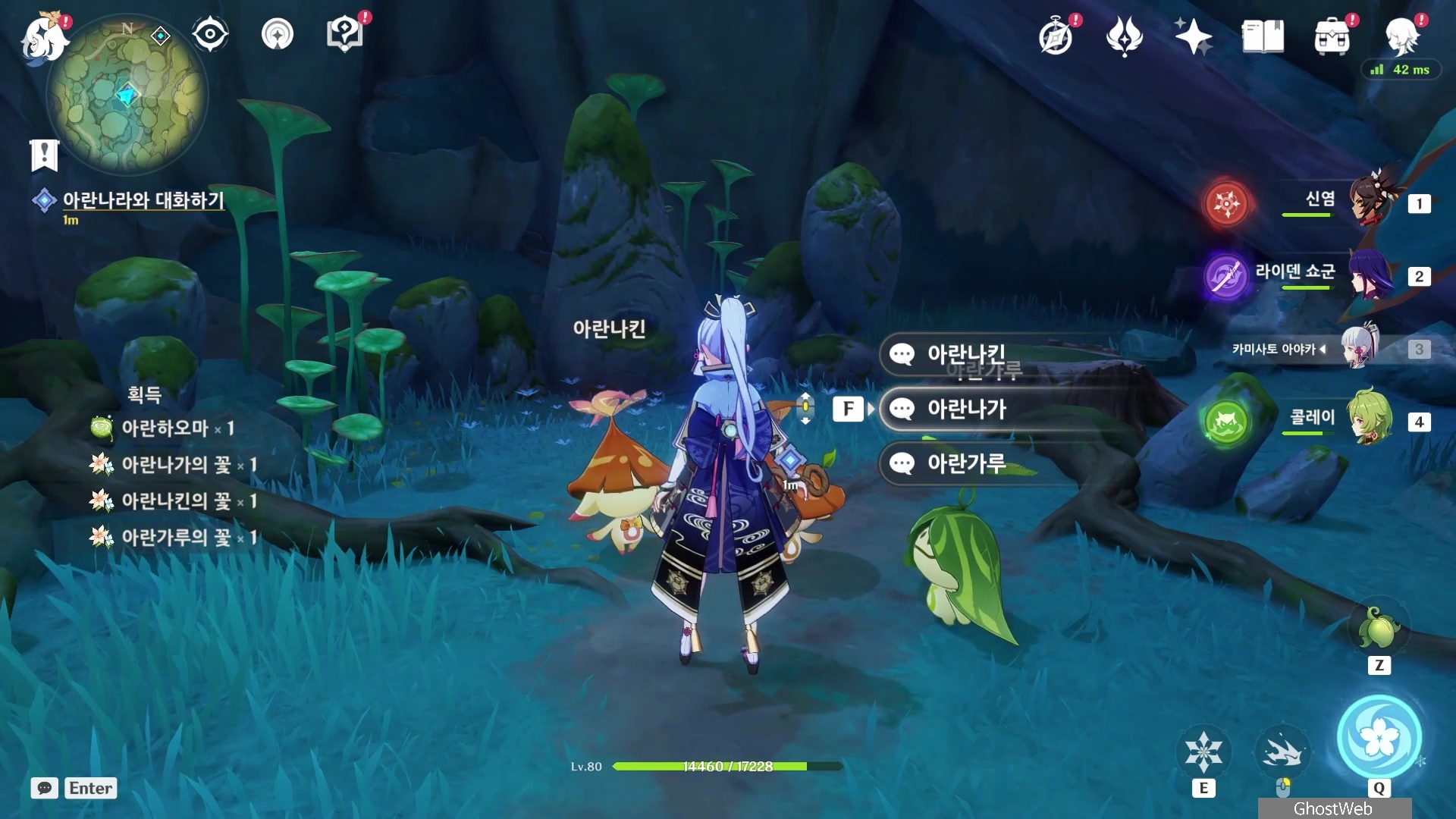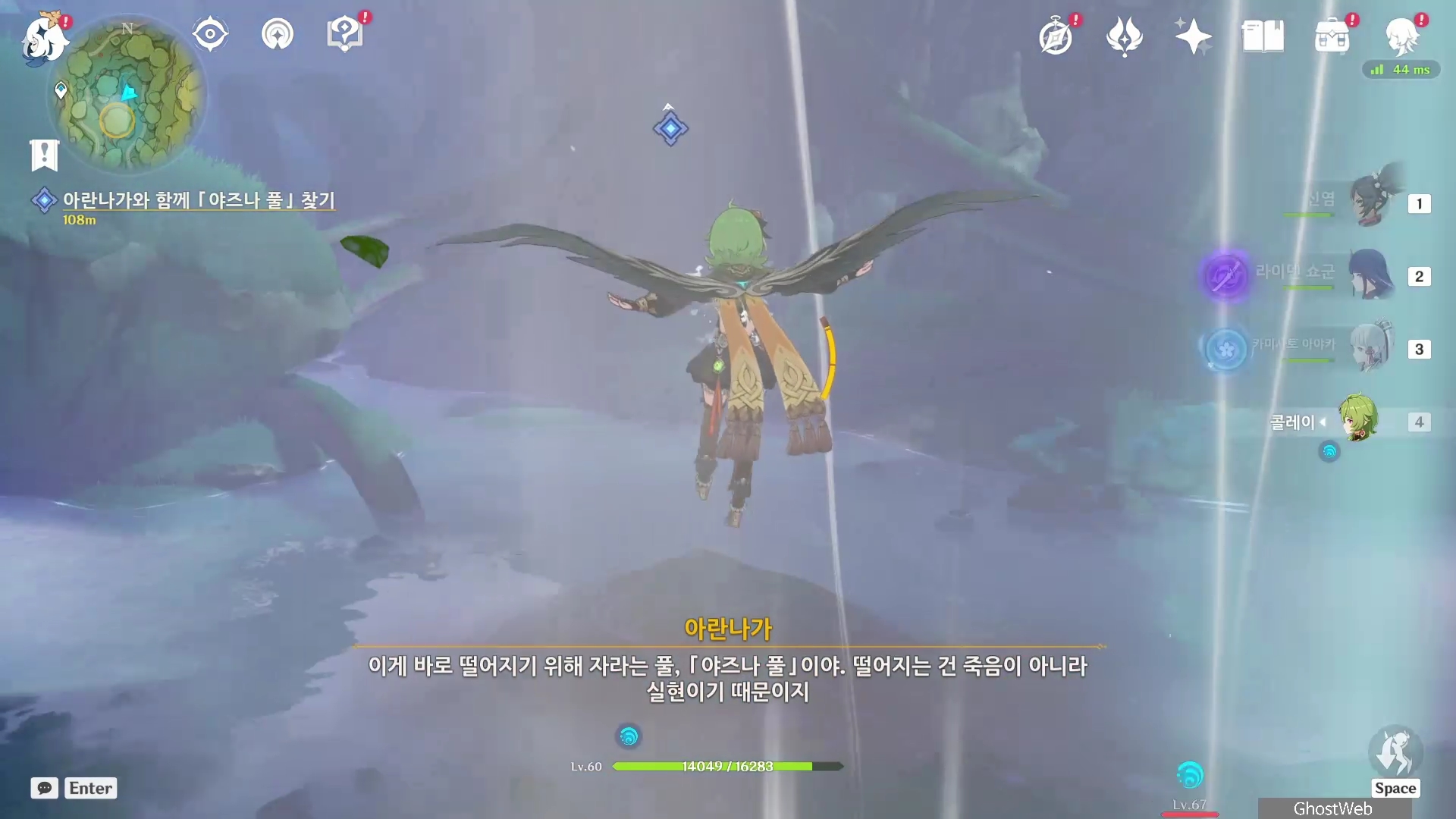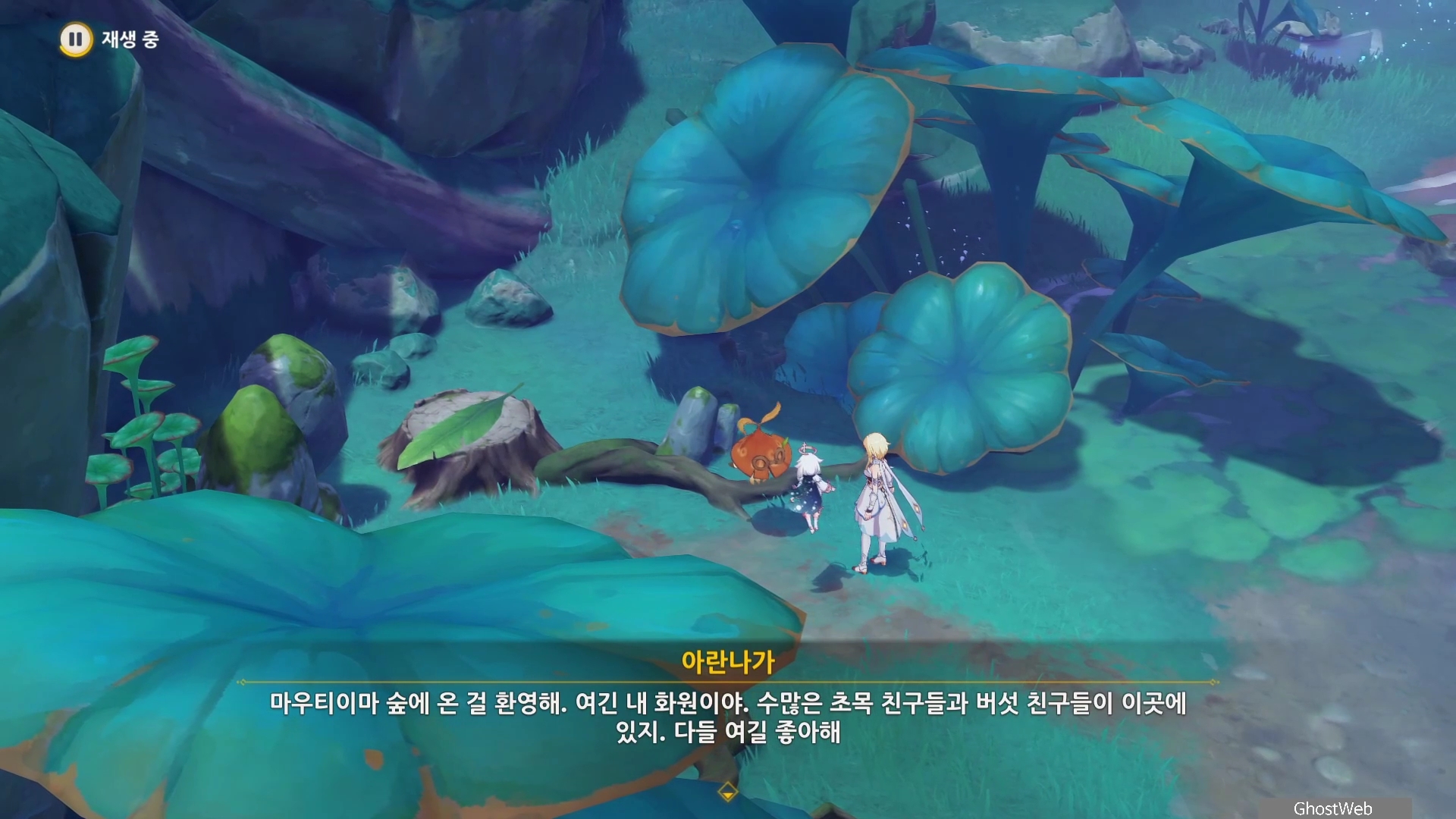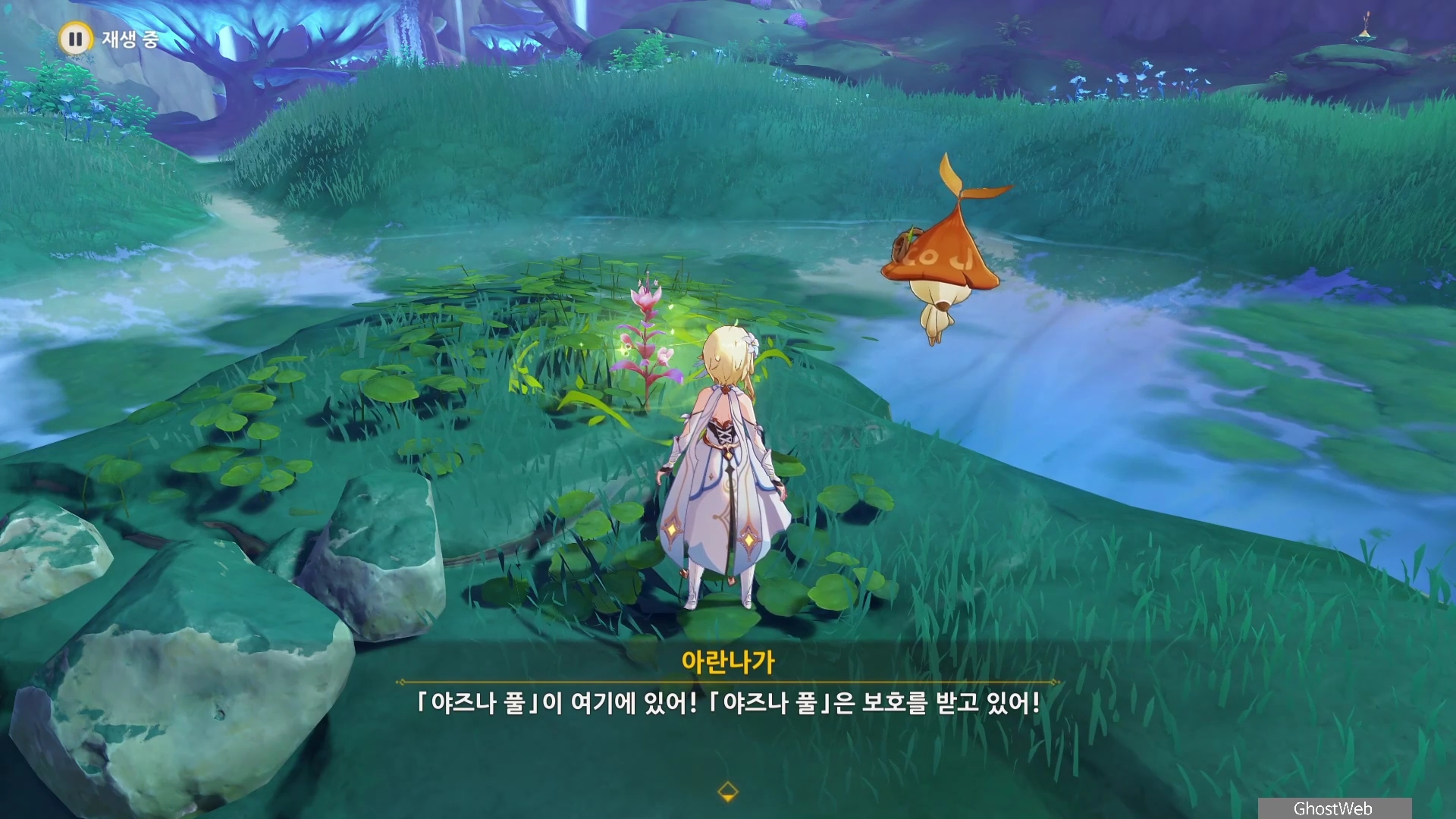 아란나가와 대화를 통해 마라나에게 집어삼켜진 마우티이마가 슬퍼하고 있다며, 여행자에게 야즈나 풀이 있는 곳으로 데려다 주겠다고 해요. (초목의 언어에서 야즈나 풀은 떨어짐을 의미)