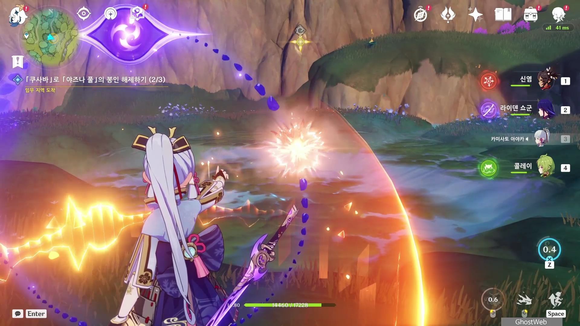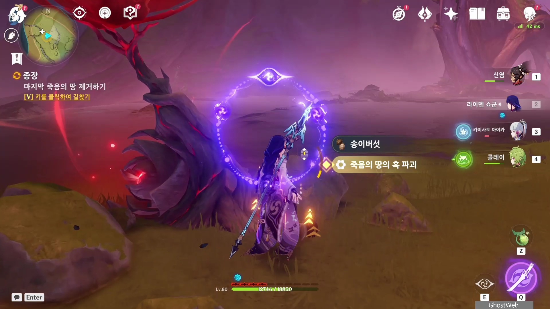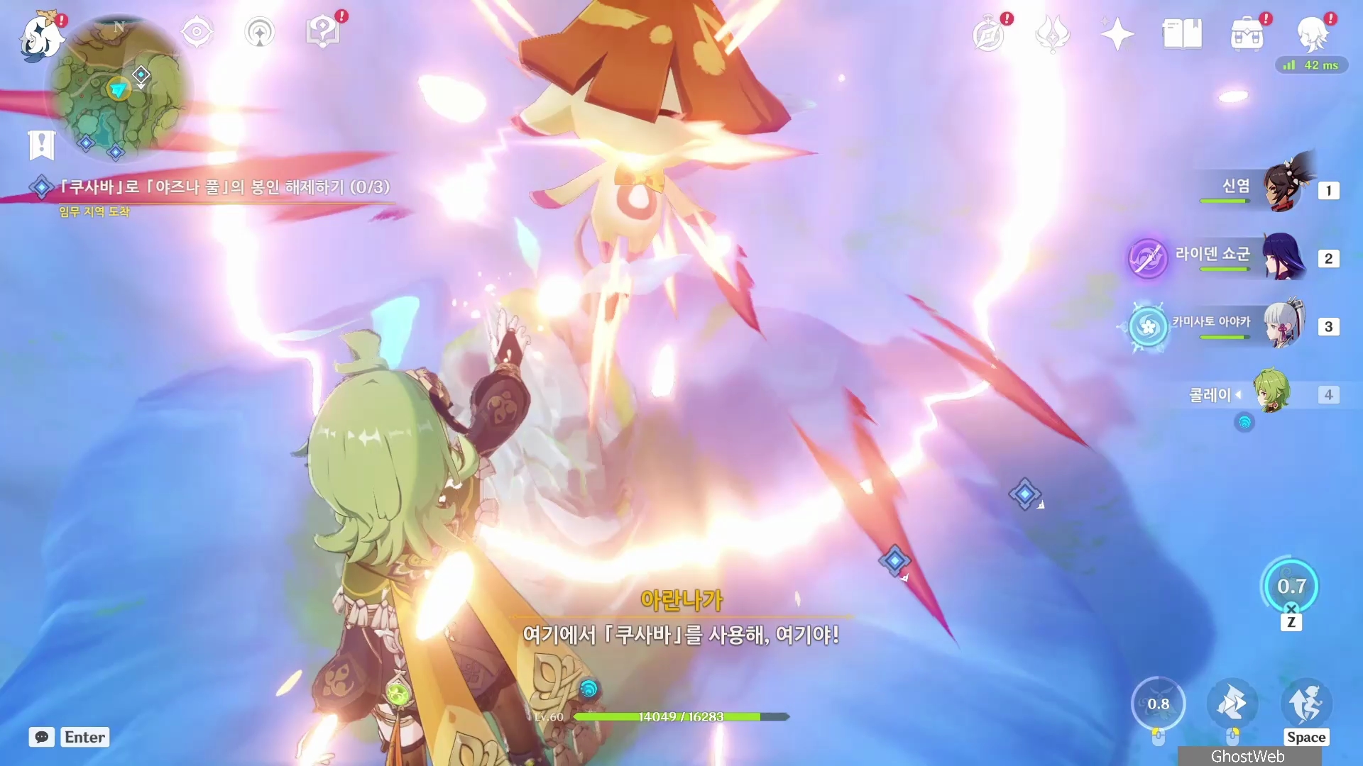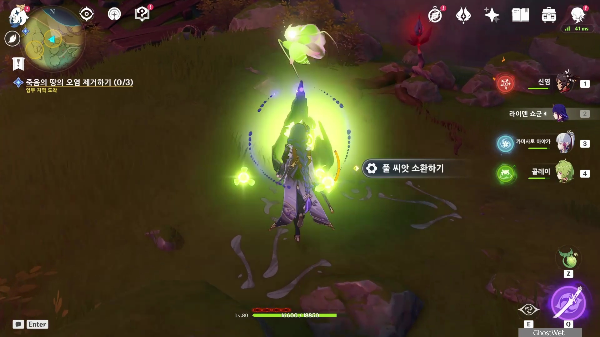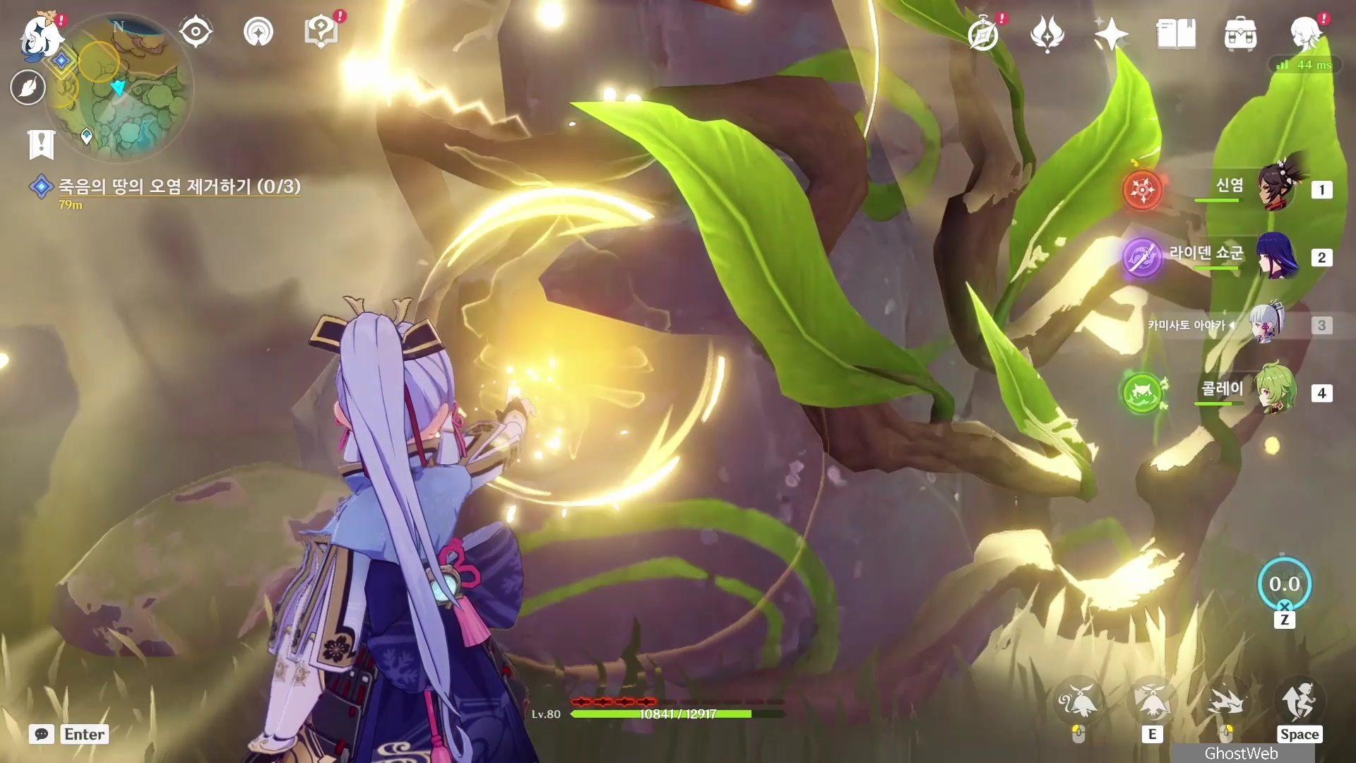 이제 마우티이마로 가서 쿠사바로 장치 복구, 장치 만지기, 플랫폼 들기 등 여태까지 이용한 기술을 통해 기믹들을 활성화하고 죽음의 땅을 제거하세요. (선령 따라다니기)