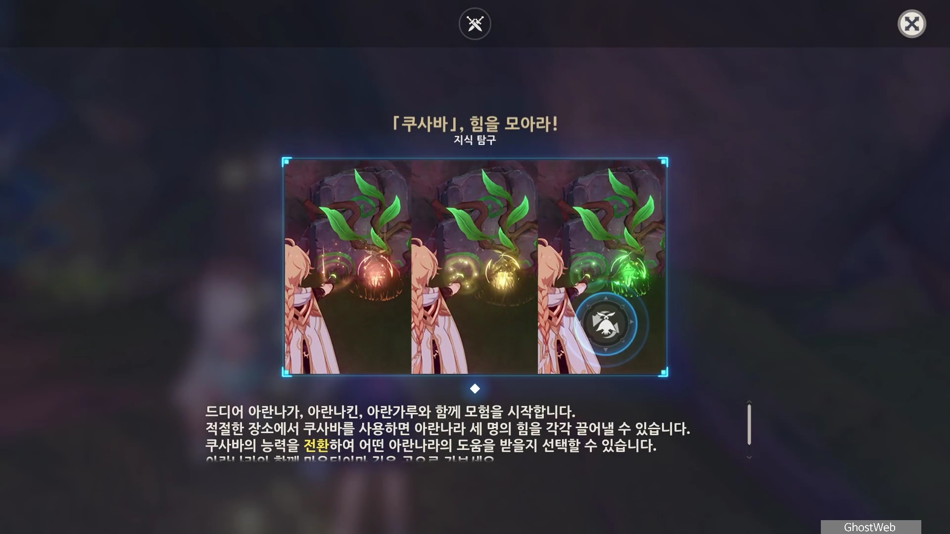 위층의 죽음의 땅을 제거하고 맨 아래 층의 마지막 죽음의 땅을 제거하면 <메마른 쿠사바>를 얻을 수 있으며, 아란나라 들과 마지막 대화를 끝으로 임무 완료와 보상으로 원석 50개, 당신과 아란나라에 대한 이야기, <재스민의 속삭임, 석류의 미소> 업적을 달성할 수 있어요.
