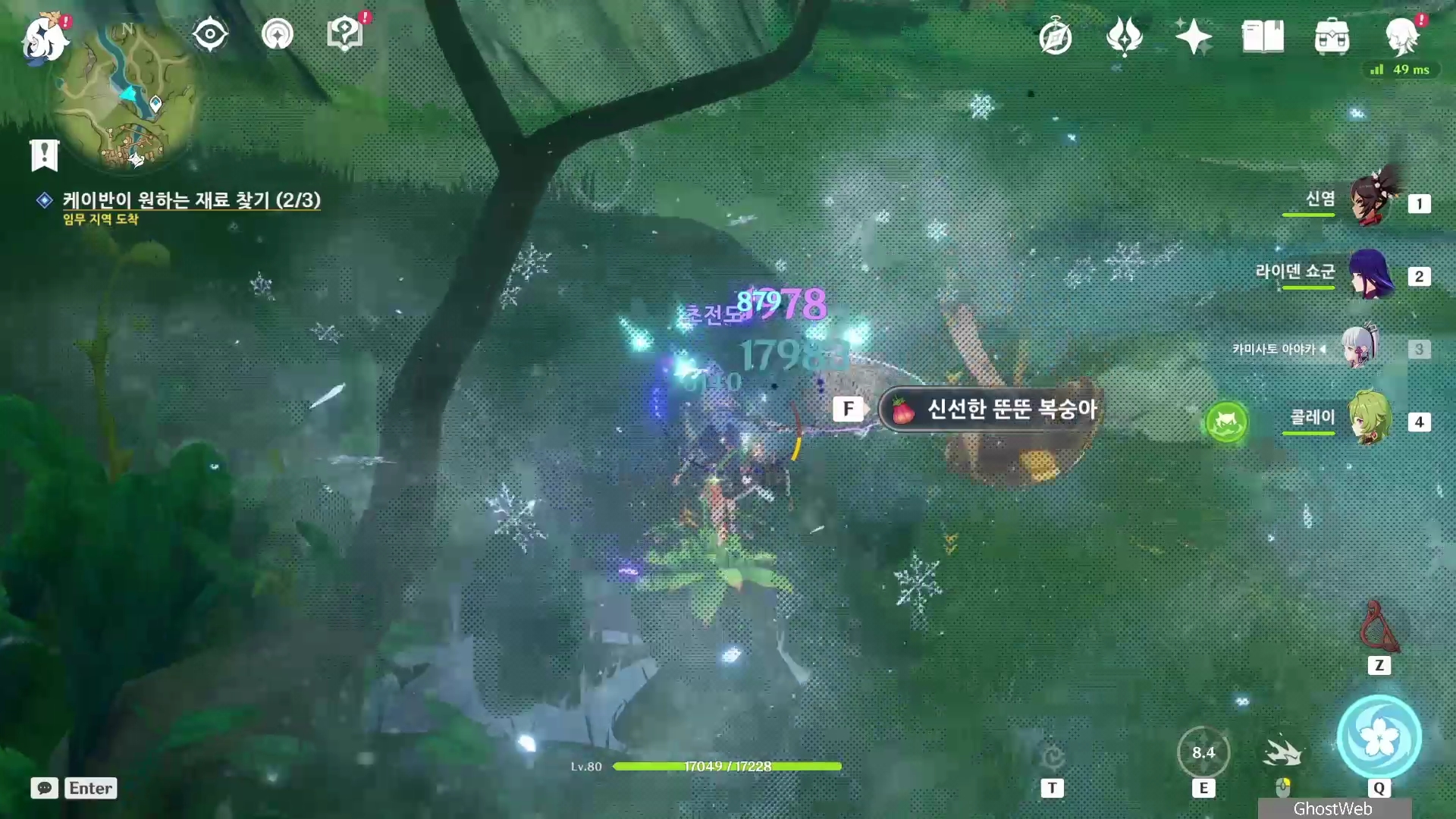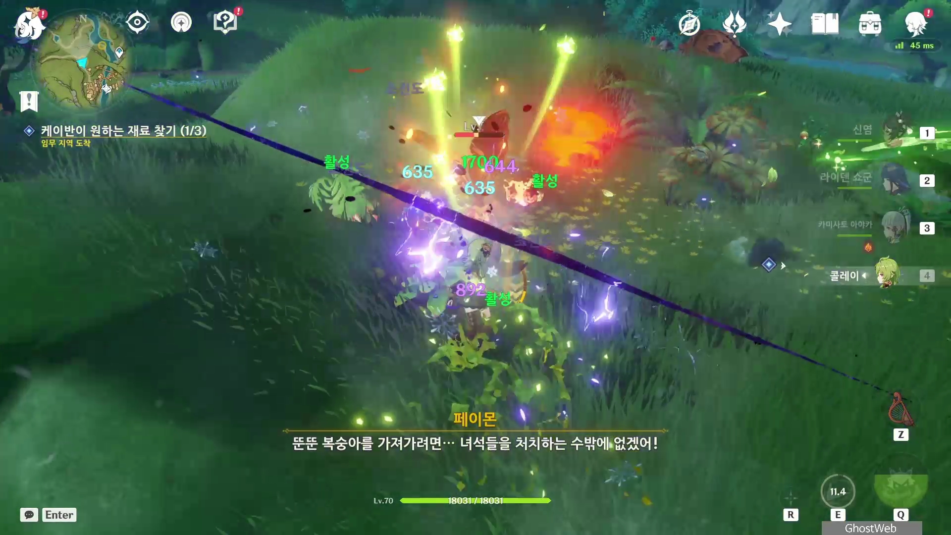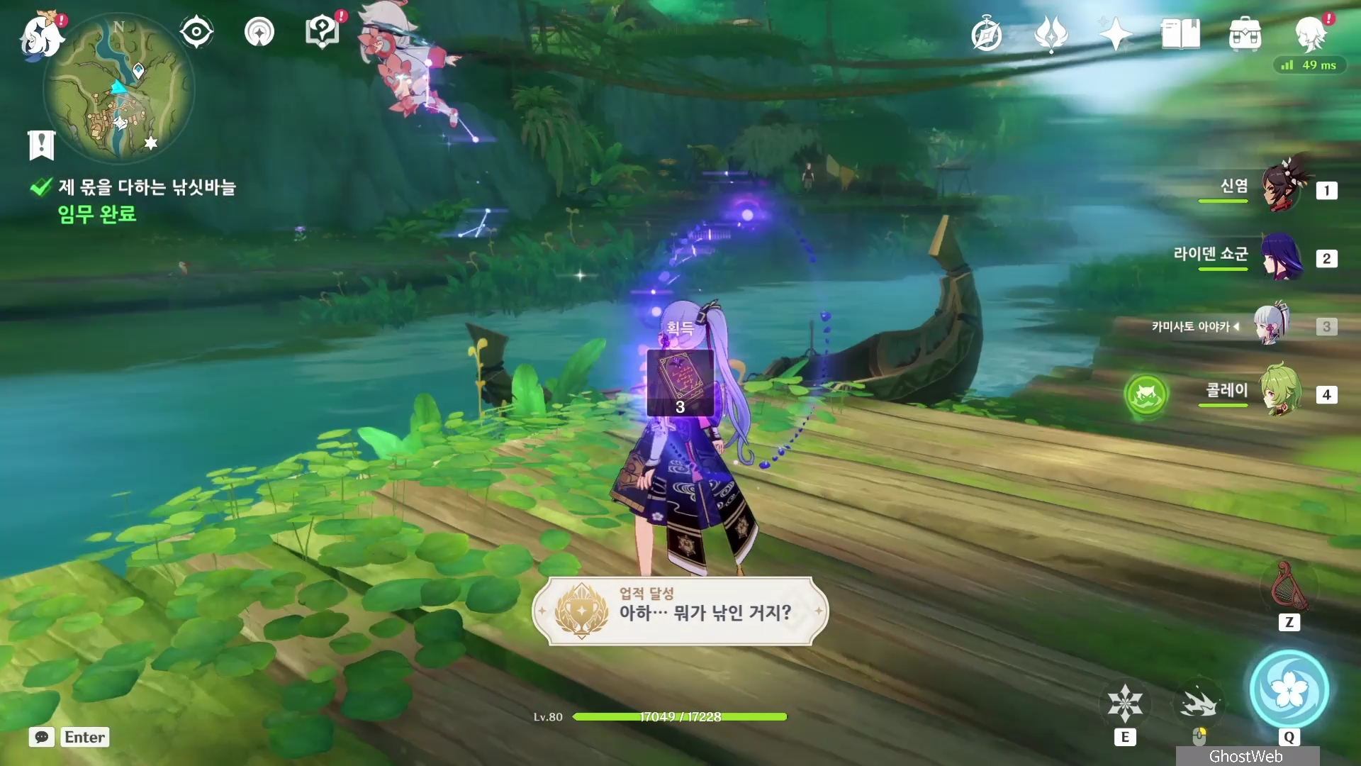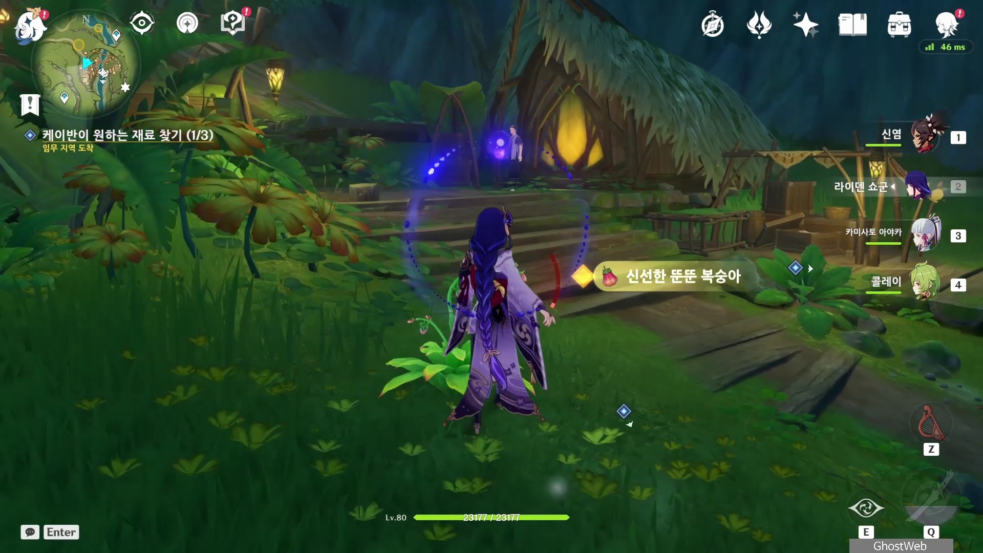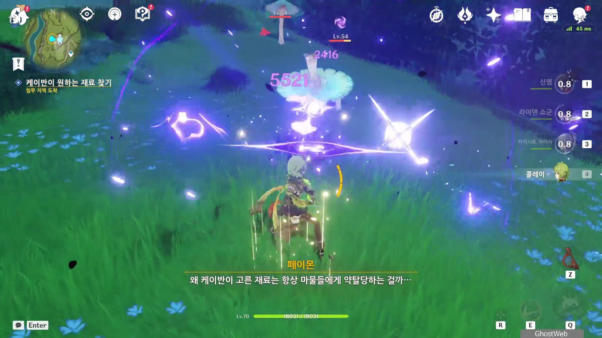 가져온 낚시 재료를 케이반에게 넘기고 그가 낚시를 시작하려는데, 갑자기 나타난 슬라임들이 낚시를 방해하려고 하니 여행자가 슬라임을 처치하면 케이반이 낚시를 시작하는데, 이번에도 역시나 유물을 낚아서 낙담하며 다음 낚시 포인트로 이동하며, 또 여행자에게 낚시 재료를 가져다 달라는 부탁을 해요.