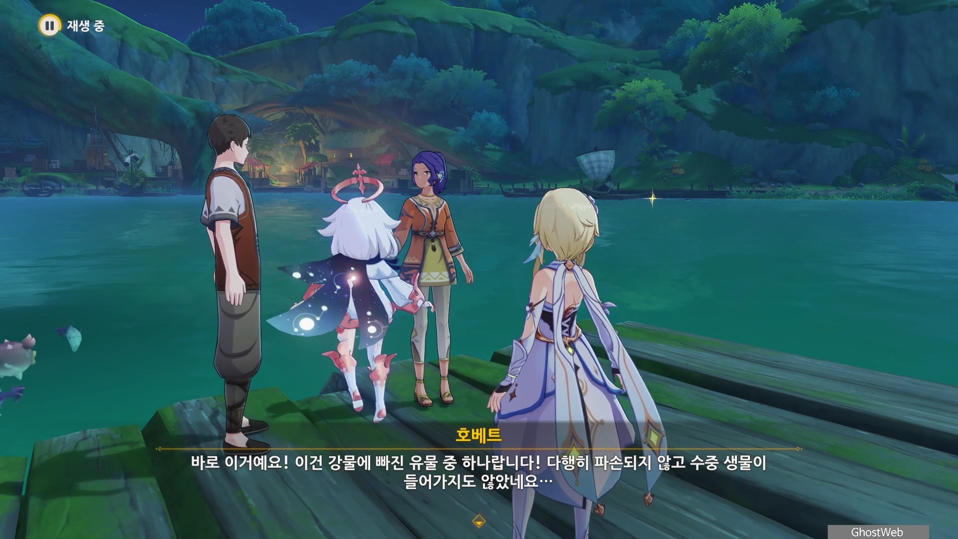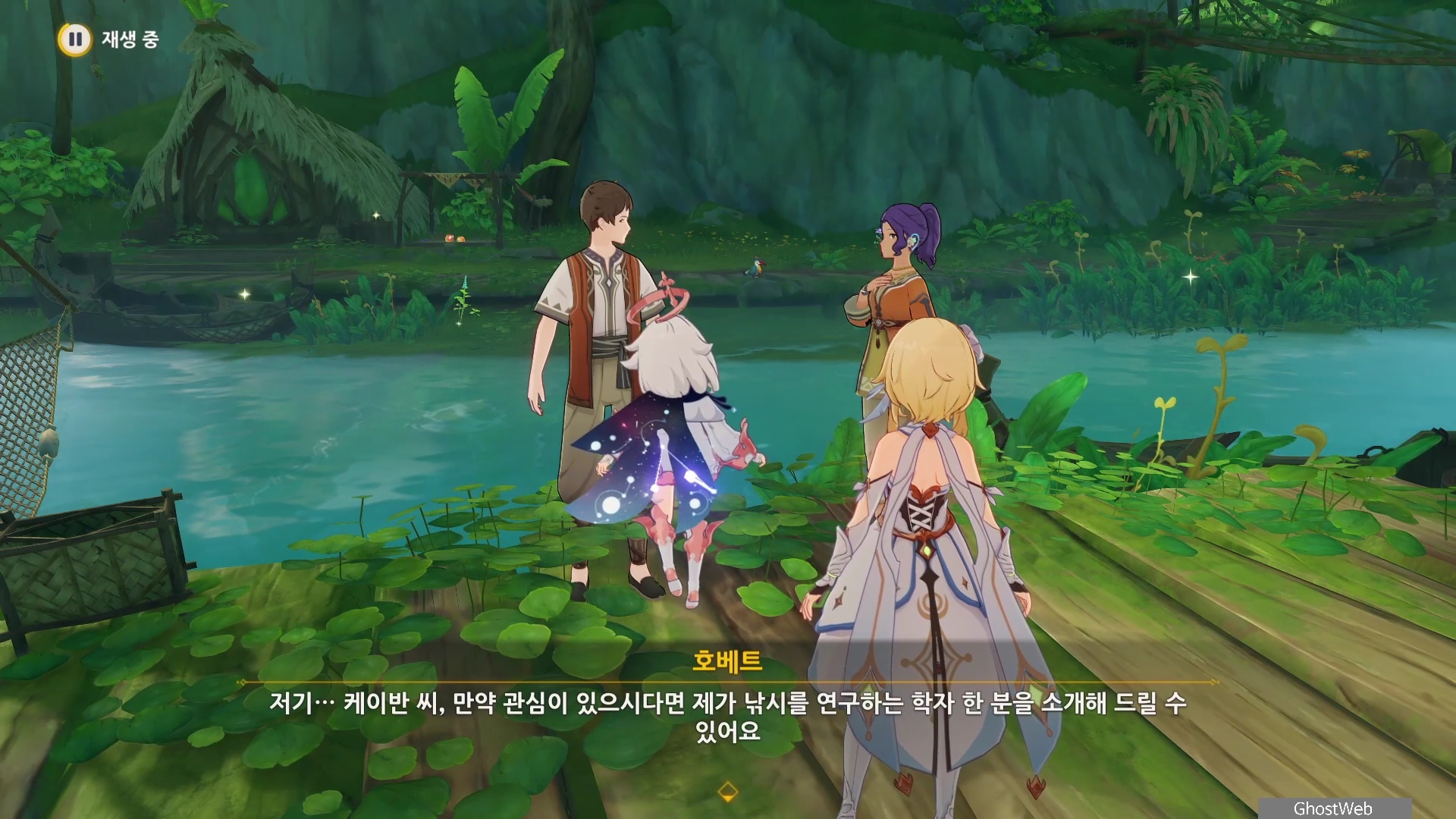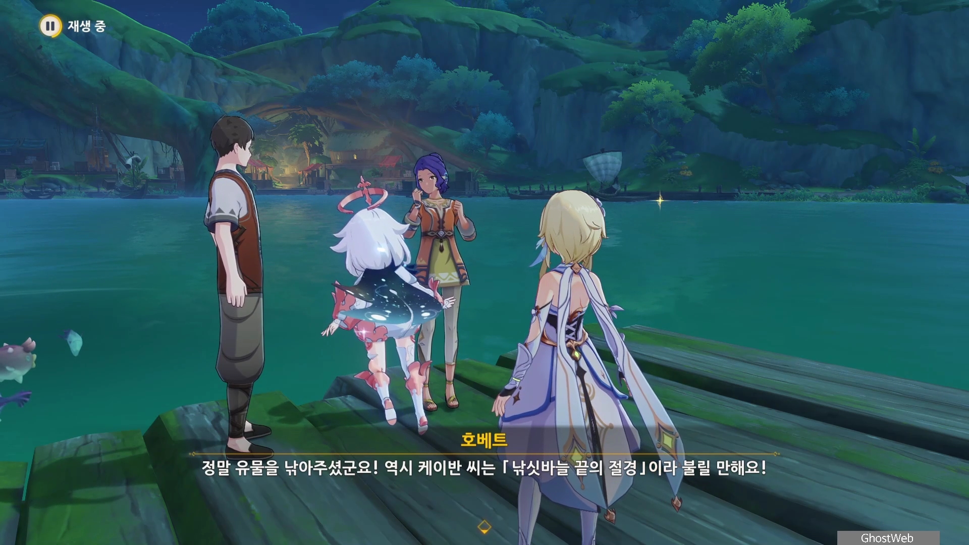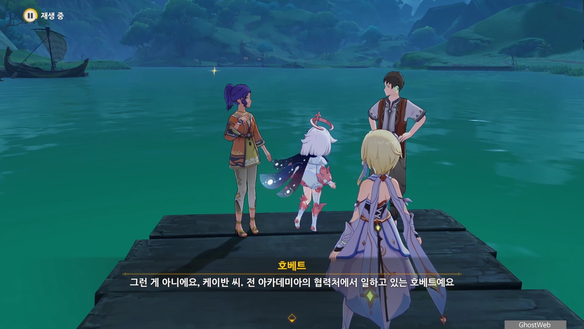 둘의 대화를 들어보면 호베트는 아카데이마의 협력처에서 일하는데, 유물을 운송하는 배에 문제가 생겨서 유물 몇 개가 강에 빠져서 물살을 타고 하류로 흘러가서, <낚싯바늘 끝의 절경>으로 불리는 케이반이 매일 유실물을 낚는다는 소문을 듣고 왔다며 유물을 낚아달라는 부탁을 해요.
