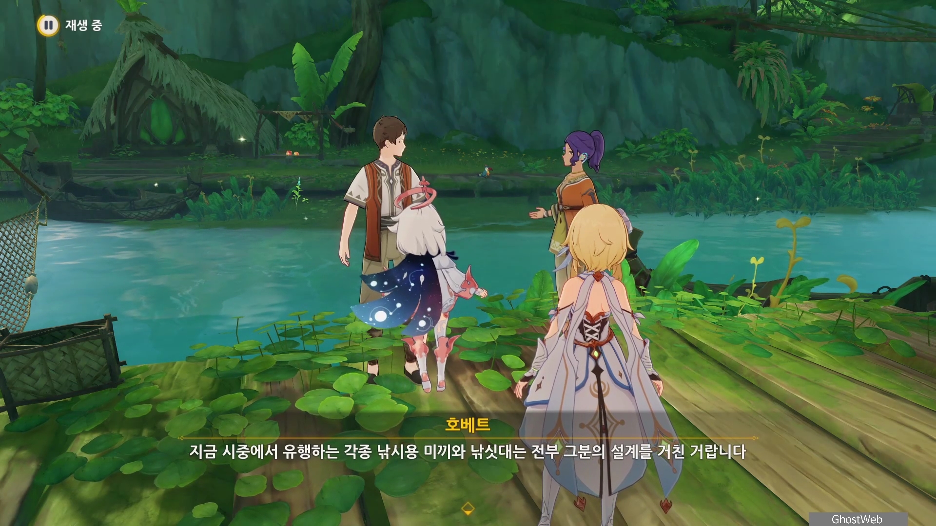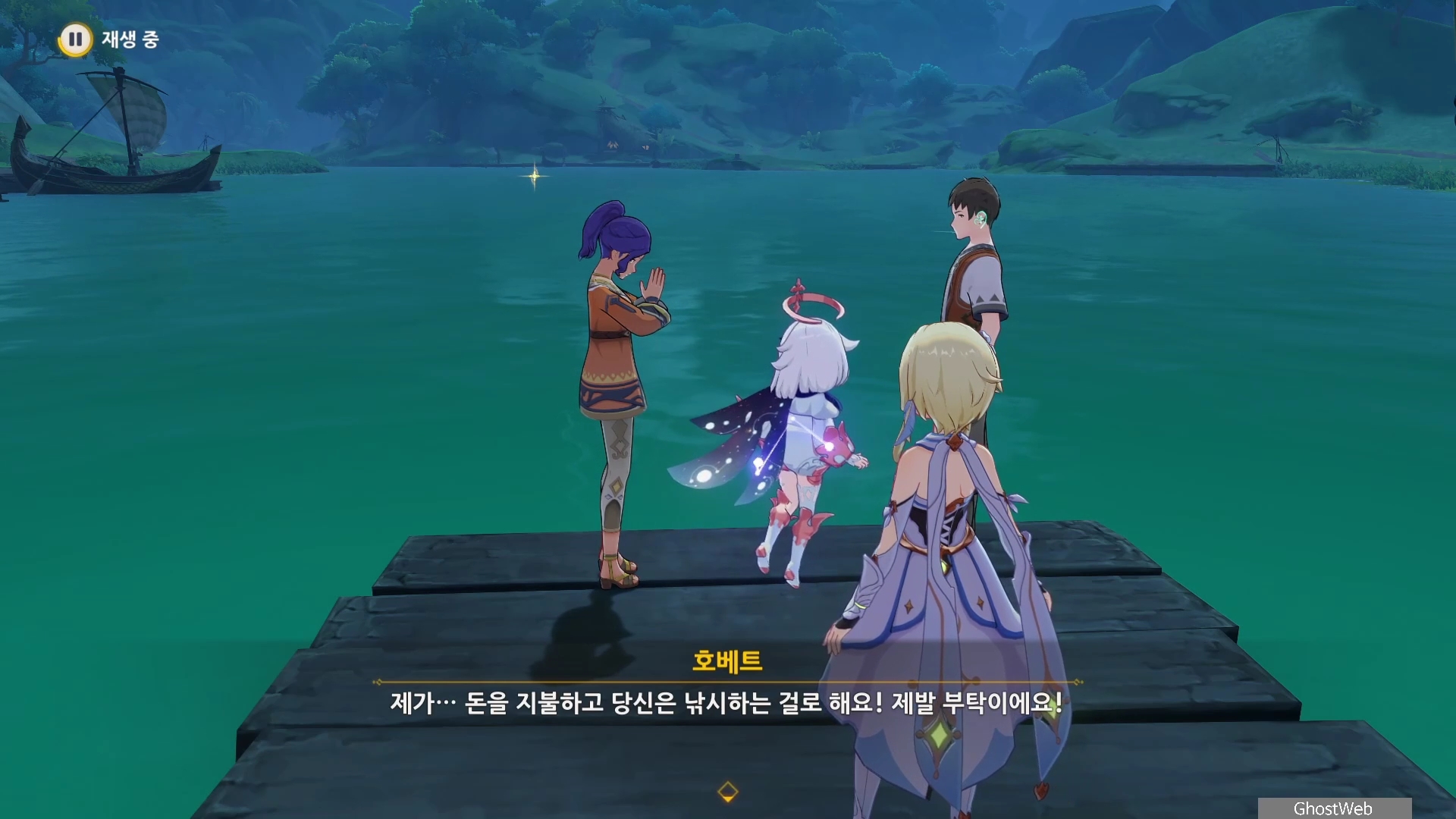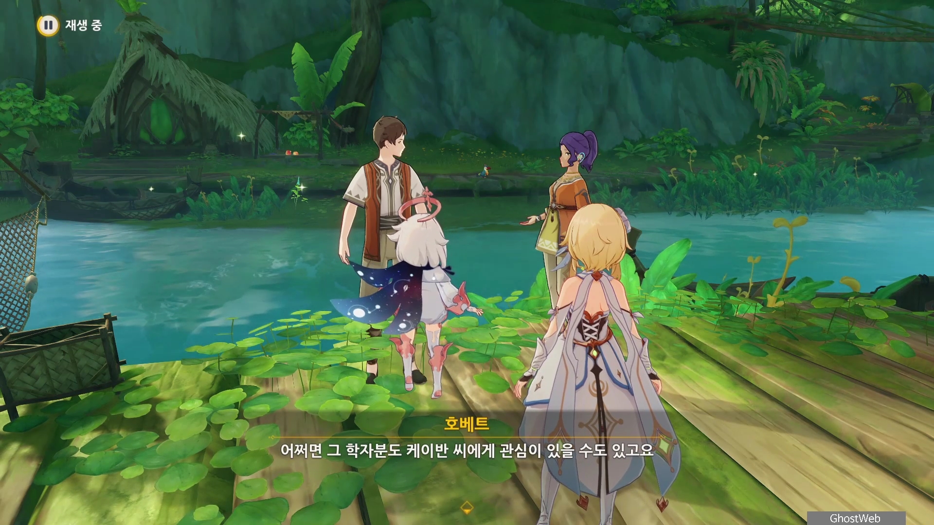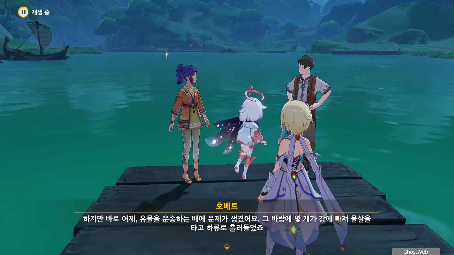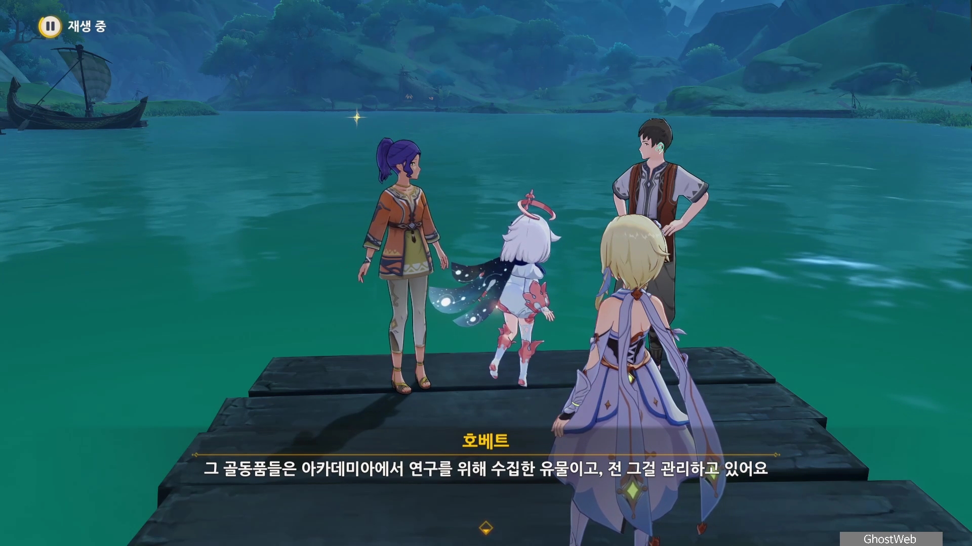 둘의 대화를 들어보면 호베트는 아카데이마의 협력처에서 일하는데, 유물을 운송하는 배에 문제가 생겨서 유물 몇 개가 강에 빠져서 물살을 타고 하류로 흘러가서, <낚싯바늘 끝의 절경>으로 불리는 케이반이 매일 유실물을 낚는다는 소문을 듣고 왔다며 유물을 낚아달라는 부탁을 해요.
