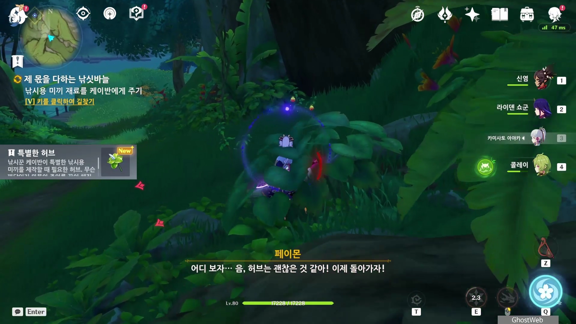 여행자는 지도에 표시되는 지역으로 가서 버섯몬을 처치하여 특별한 허브를 가지고 케이반에게 전달해주면 낚시를 시작하여 유물이 들어 있는 축축하게 젖은 보따리 낚아, 호베트가 좋아하며 다음 낚시 포인트로 이동하자고 하며, 케이반은 여행자에게 다음 낚시를 위해서 지도에 표시한 곳에서 향신과를 구해달라는 부탁을 해요.