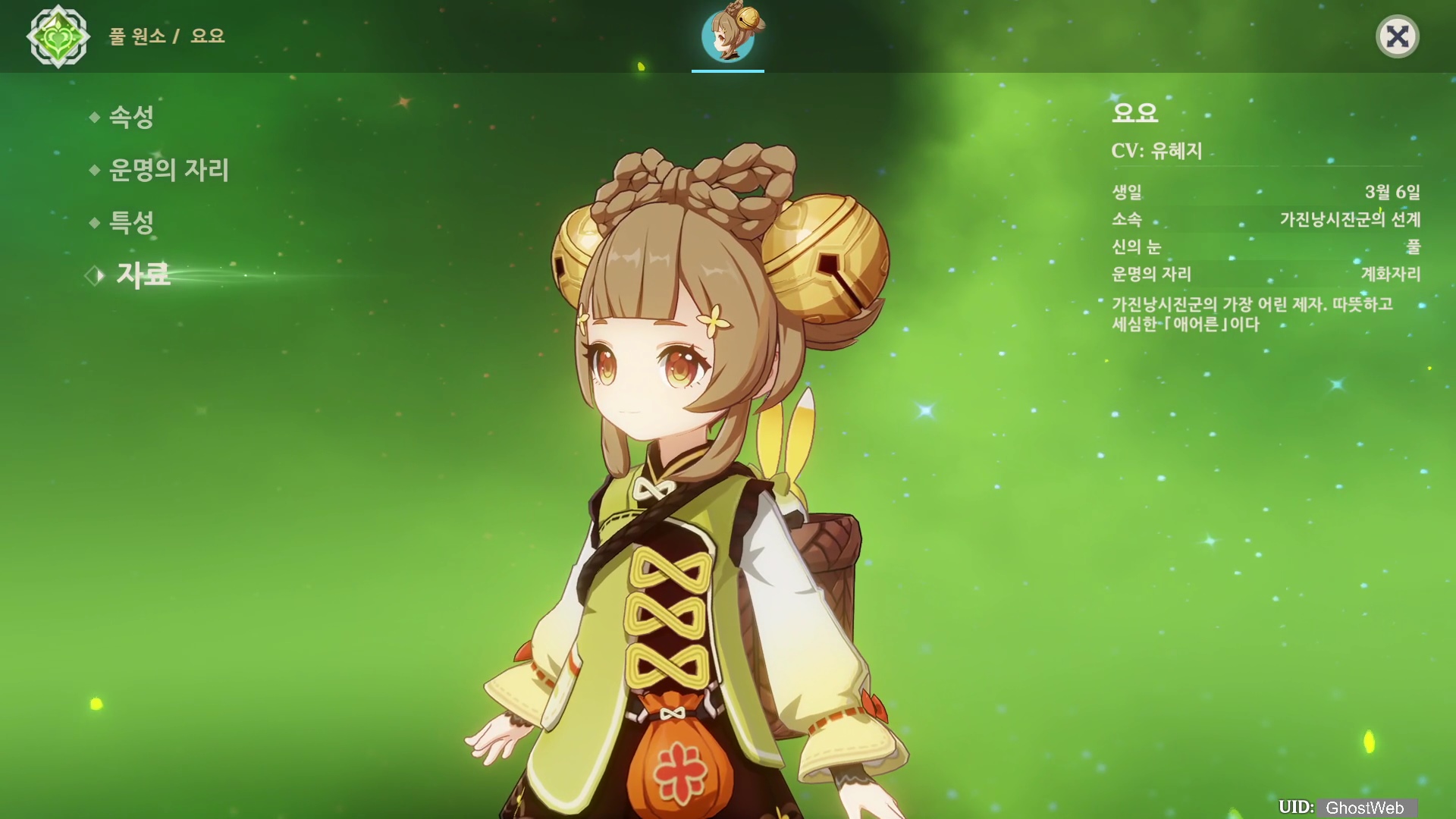 이번에는 4성 풀 원소 캐릭터인 요요에 대해서 정리해보도록 할게요.