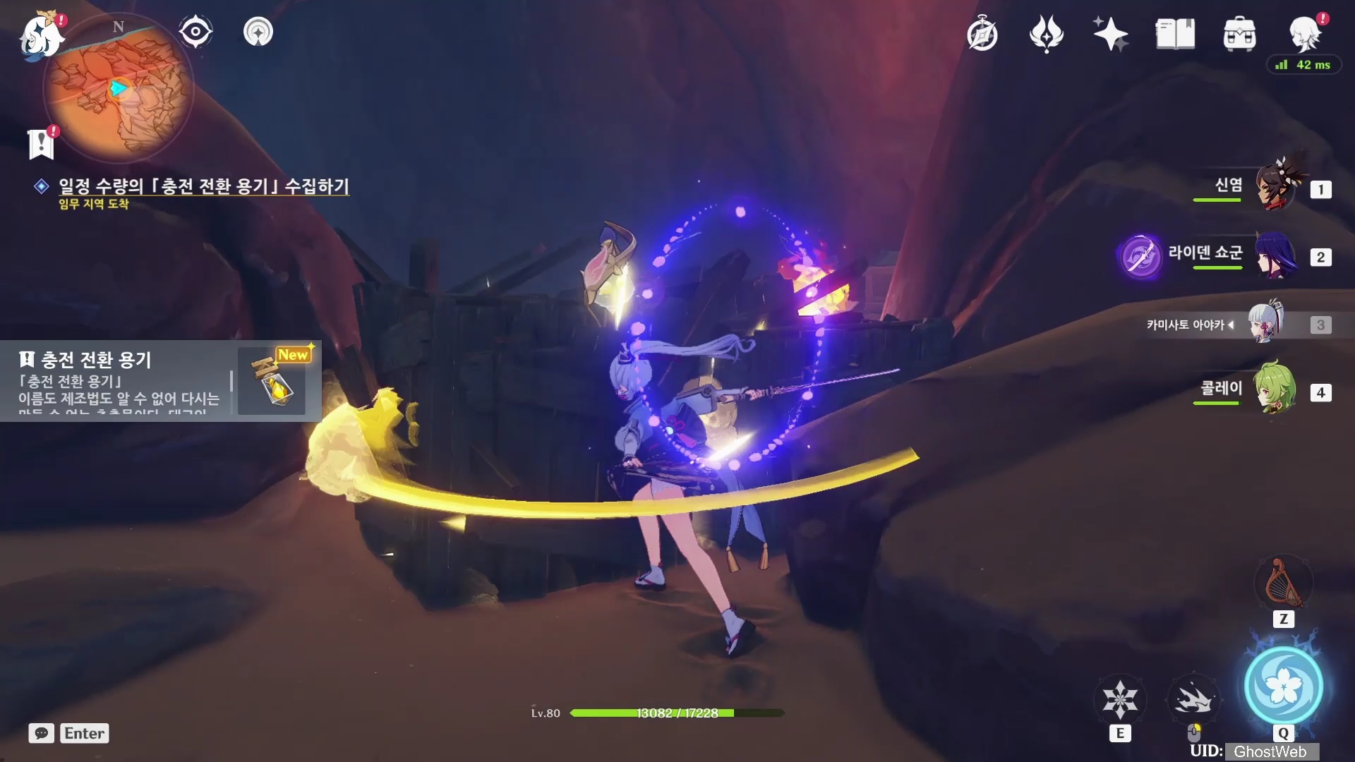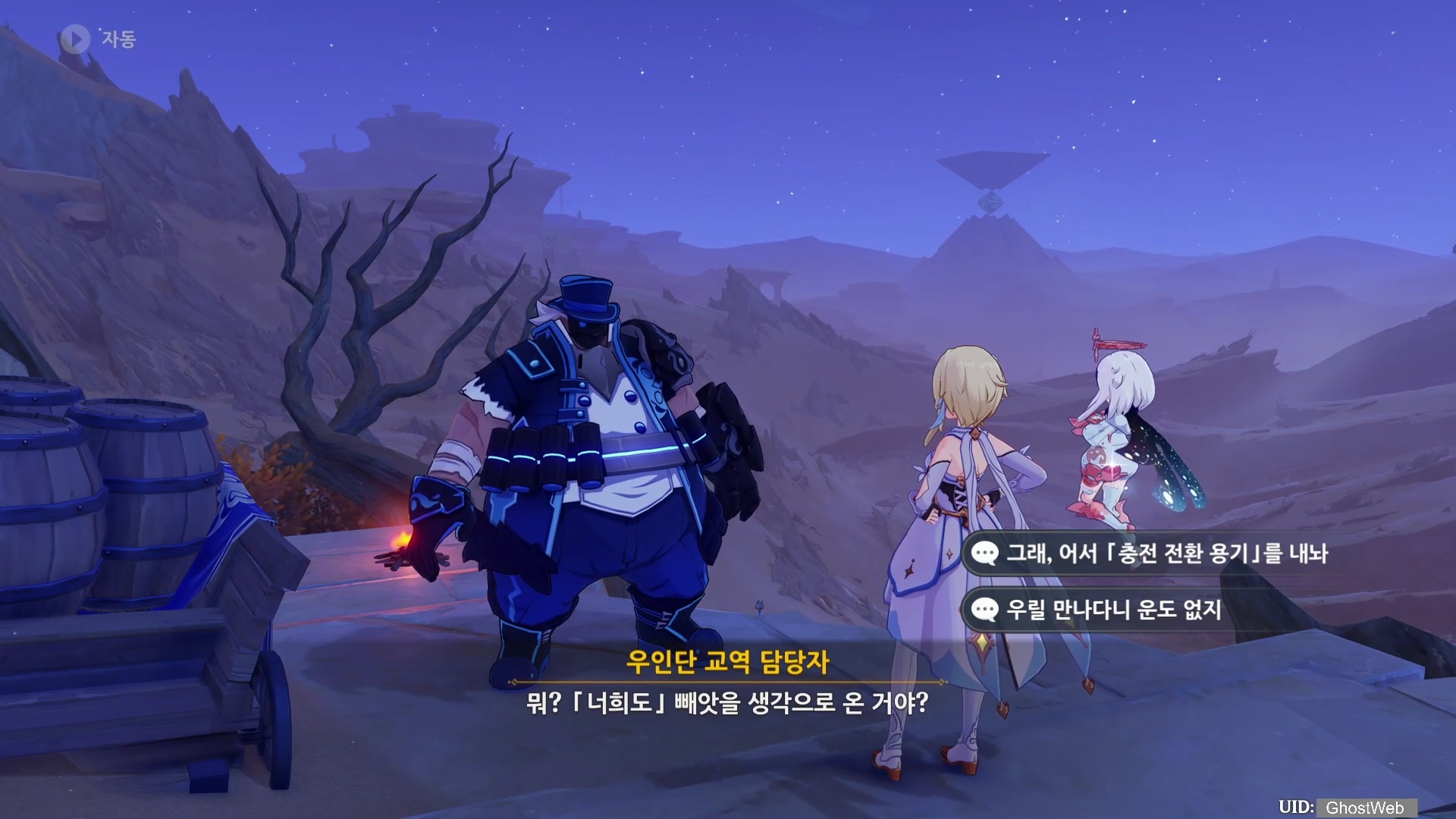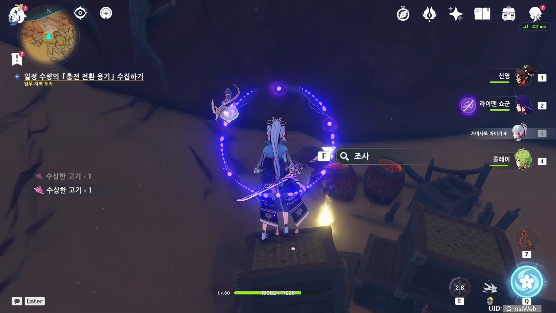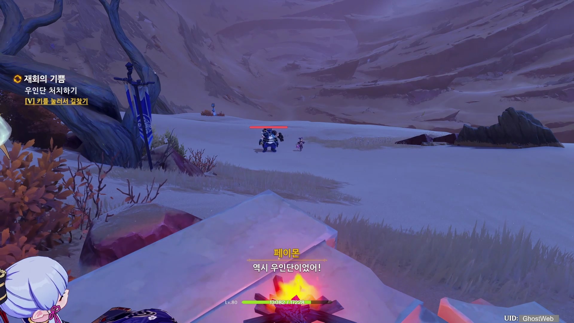 밤에 나타난 우인단 패거리를 처치하고우인단을 처치하고 <우인단 거점 열쇠>를 얻은 다음, 지도에 표시된 동굴로 가 앞에 있는 우이단을 처치하고 <우인단 거점 열쇠>를 이용하여 철문을 열고 안으로 들어가 <3개의 충전 전환 용기>를 얻은 후 다시 <타니트 야영지>로 돌아가 제트에게 충전 전환 용기를 전달하세요.
