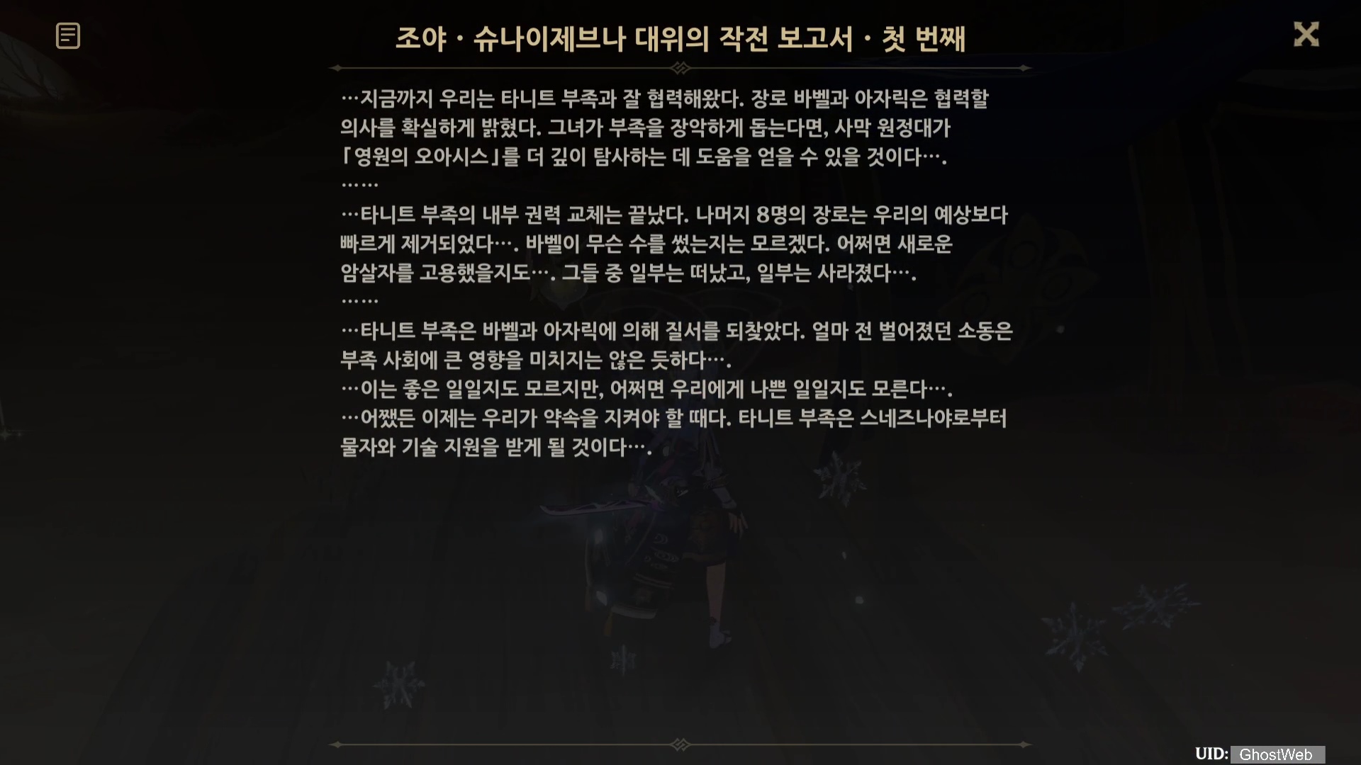 <조야 - 슈나이제브나 대위의 작전 보고서> 타니트 부족과 관련한 이야기로 바벨, 아자릭이 우인단과 연관된 것을 알 수 있어요.