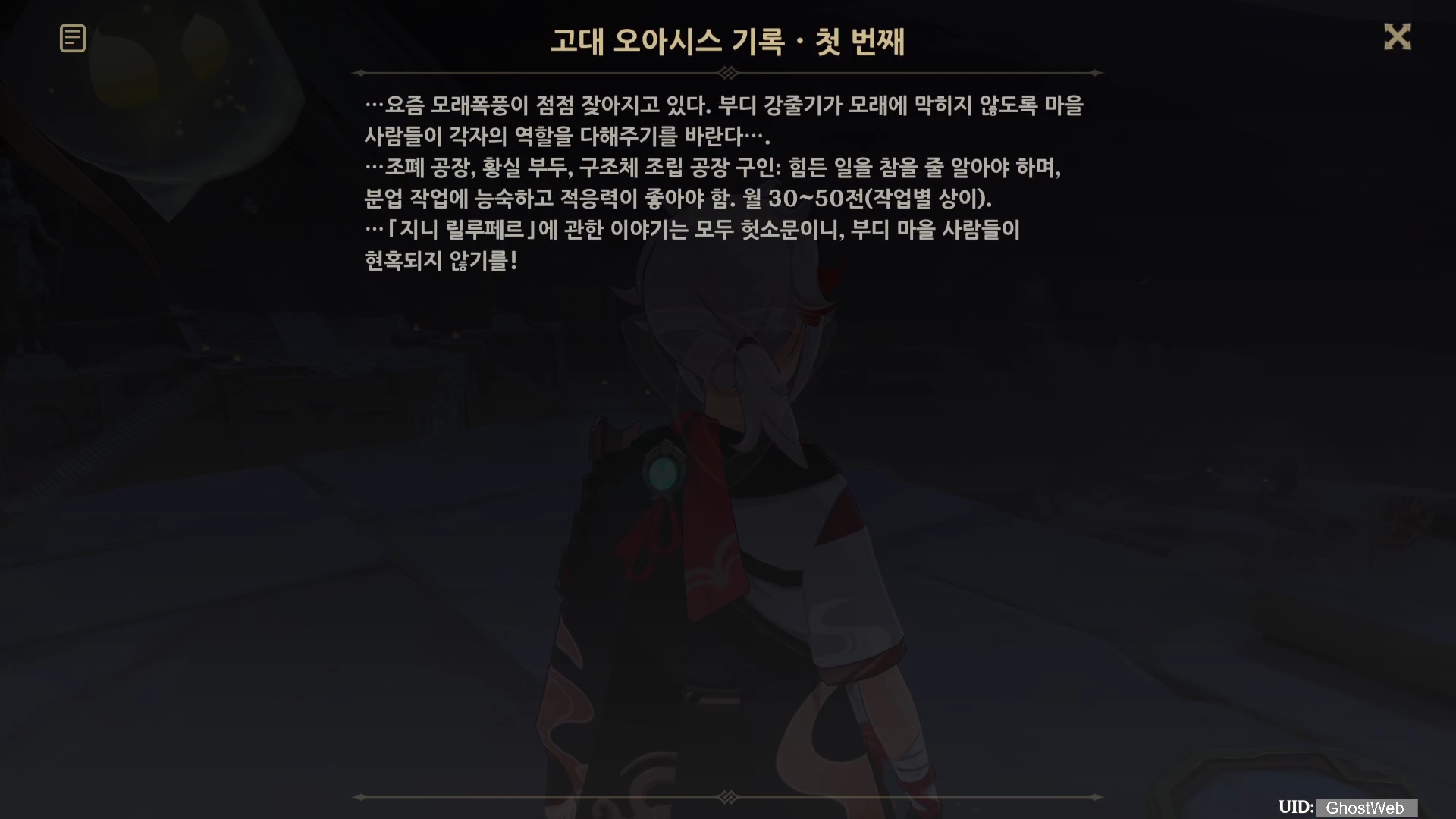 이번에는 수메르 하드라마베스 사막에서 볼 수 있는 <고대 오아시스 기록>의 위치를 정해보도록 할게요.