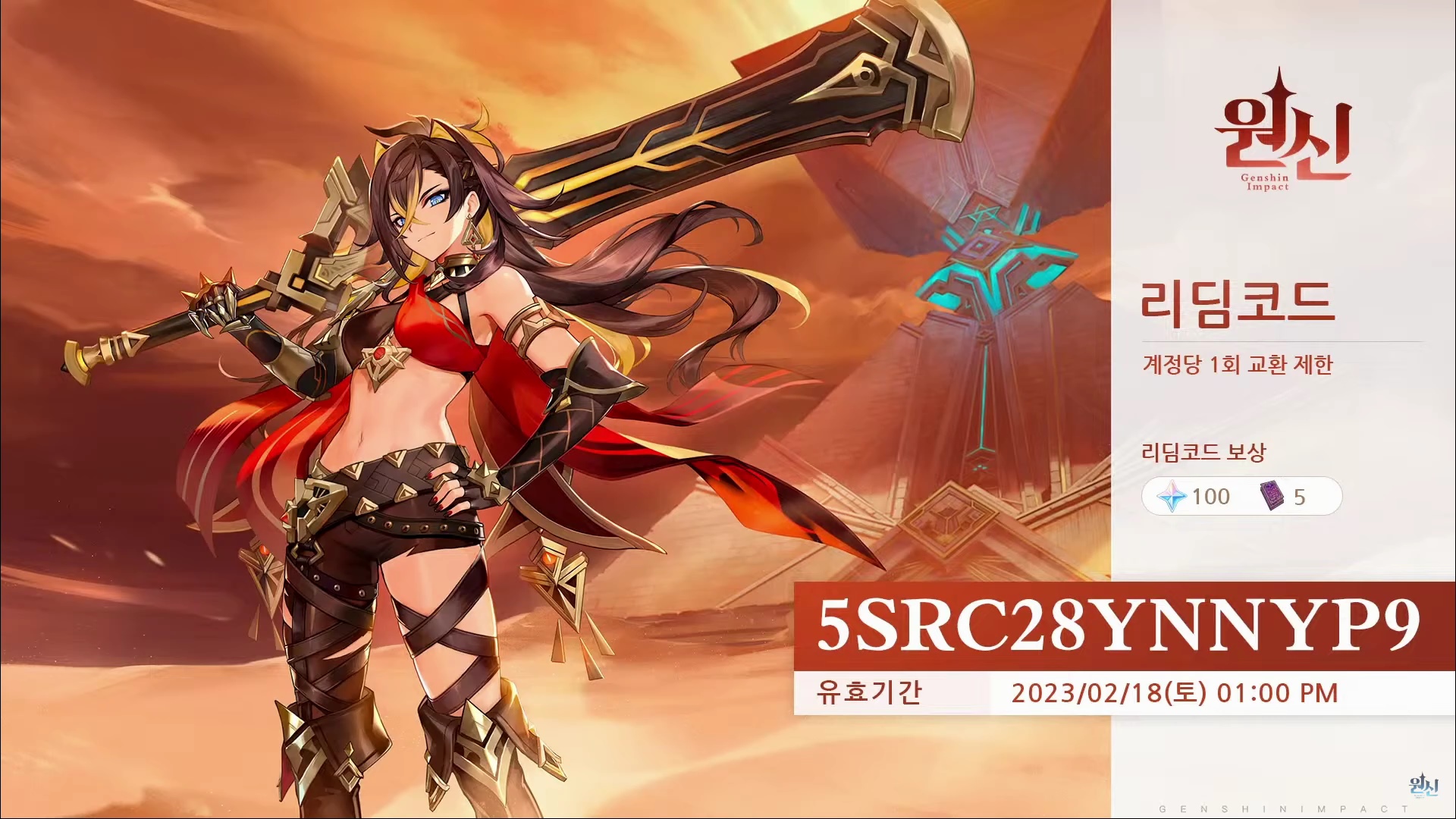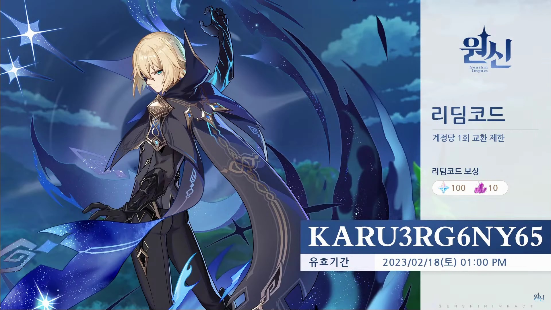 원석을 받을 수 있는 리딤 코드는 2/18(토) 오후 1시까지만 유효해요.