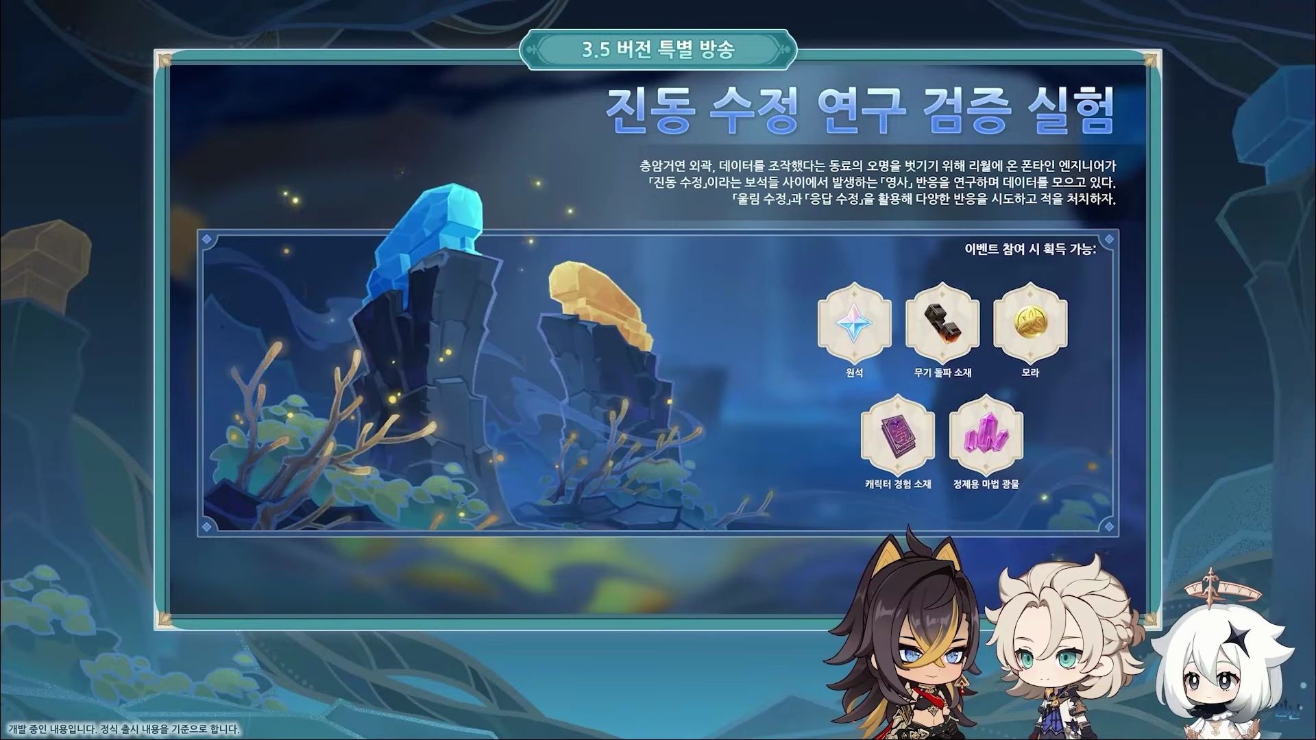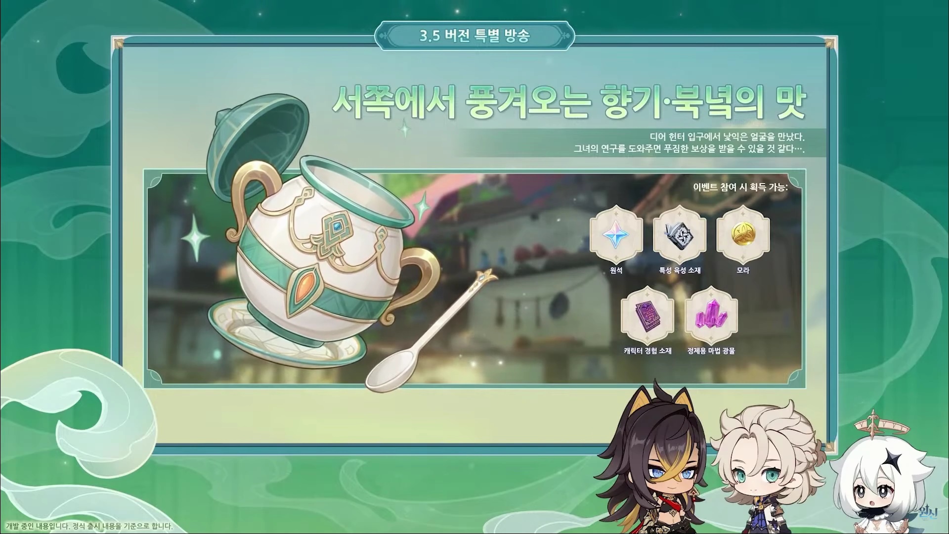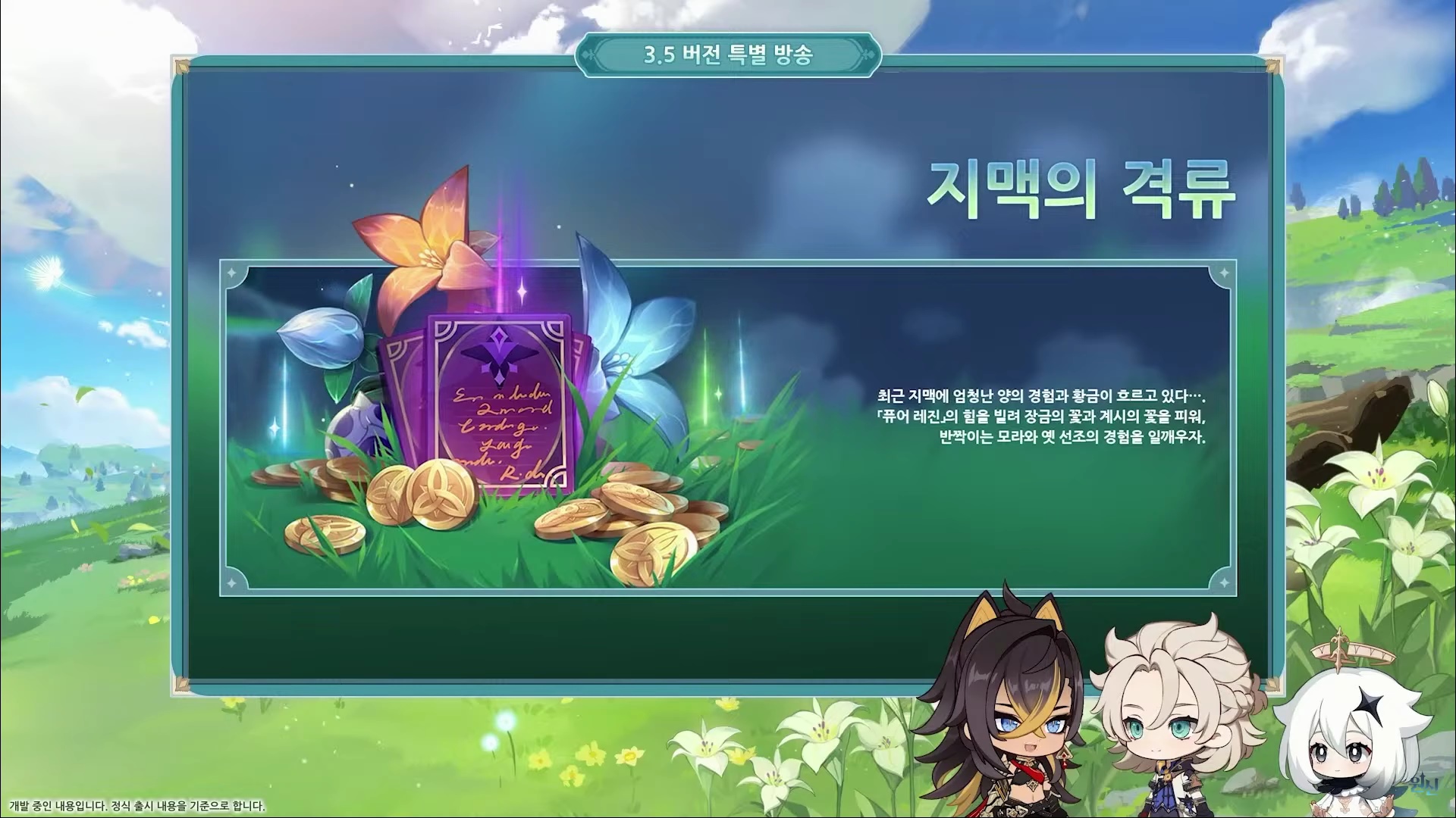 이번에는 원신 3.5 버전 특별 방송을 정리해도록 할게요.