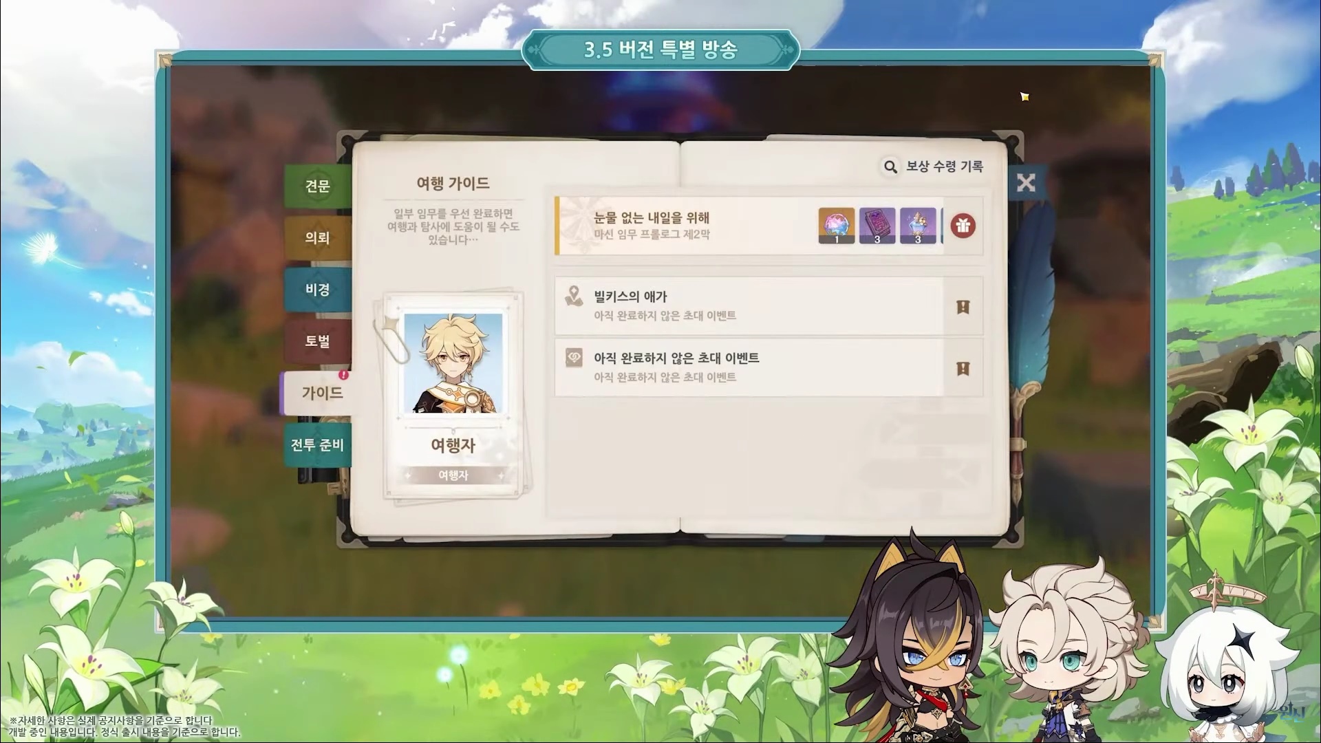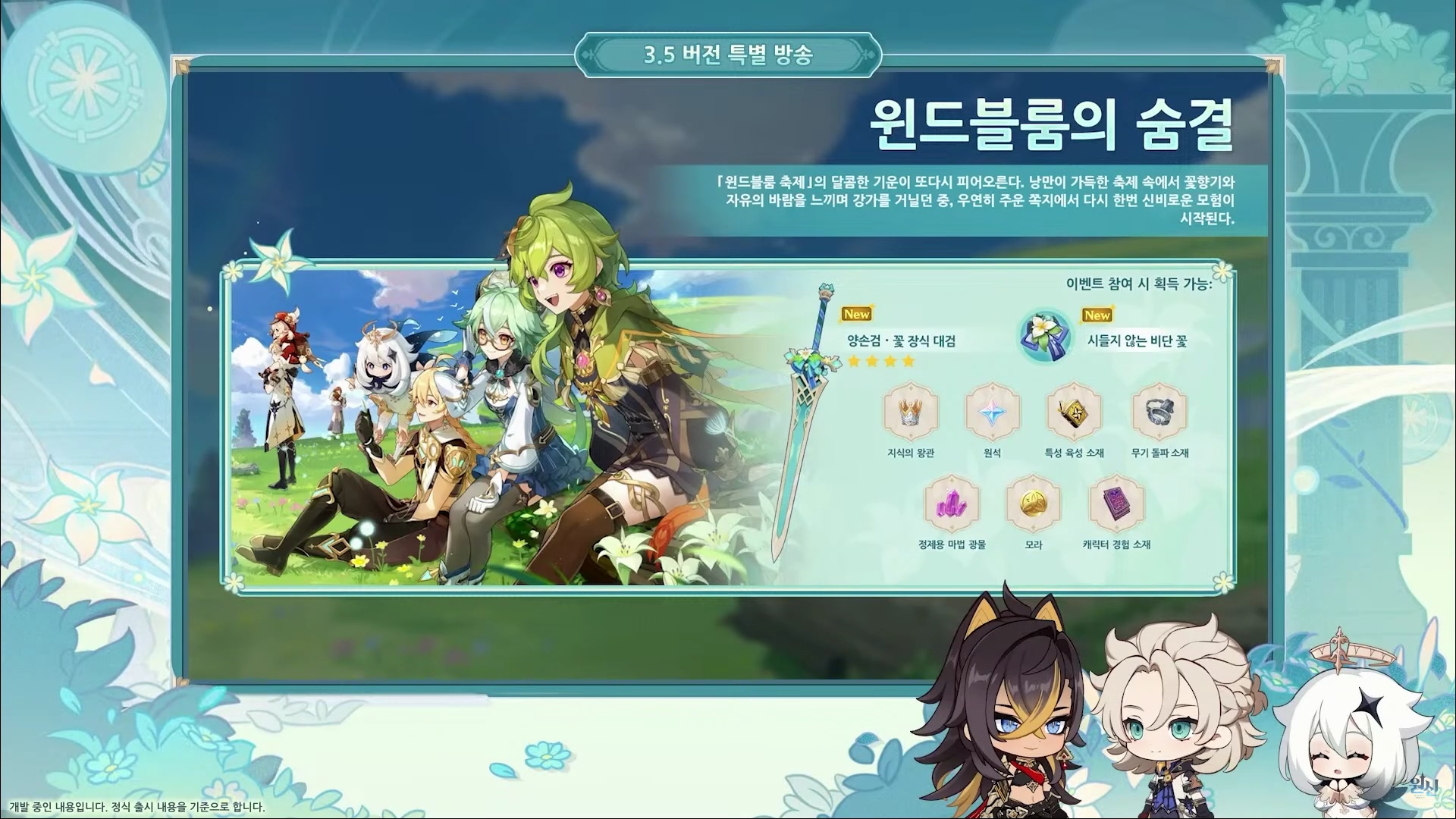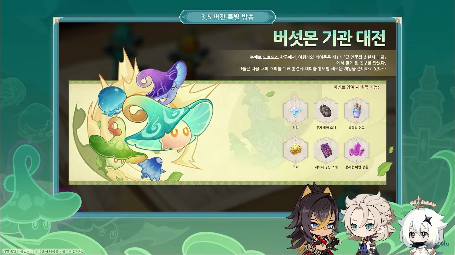이번에는 원신 3.5 버전 특별 방송을 정리해도록 할게요.