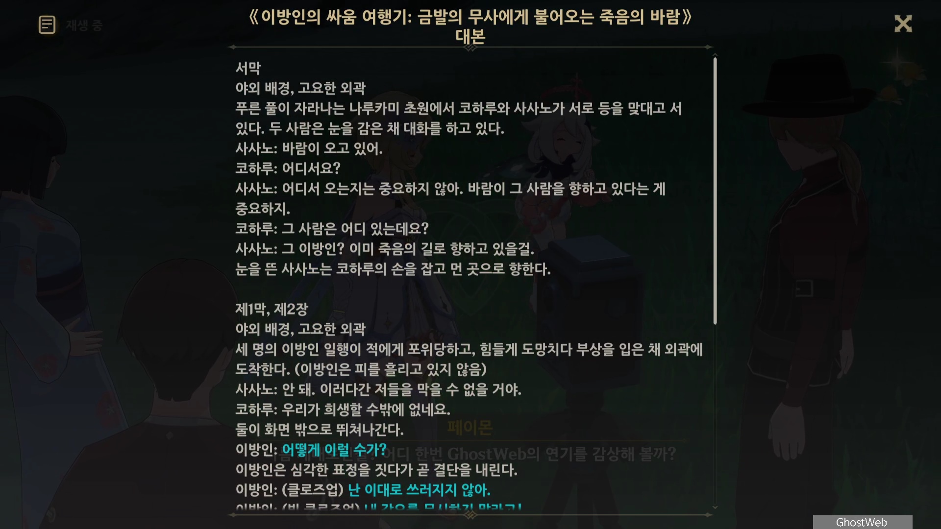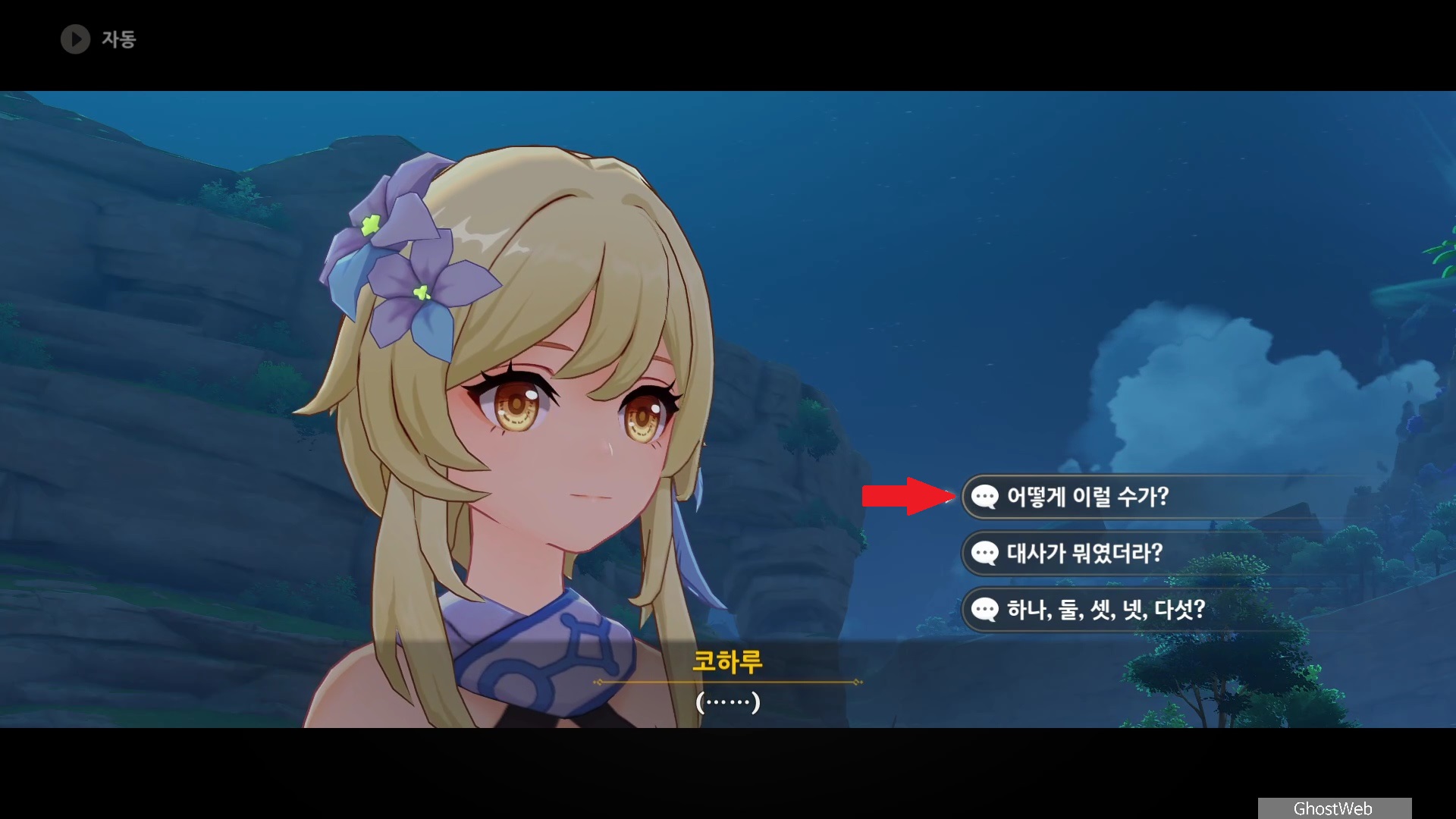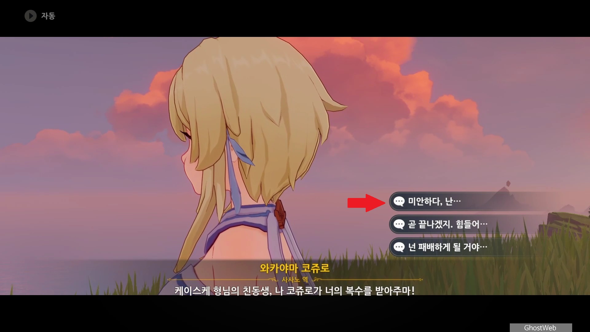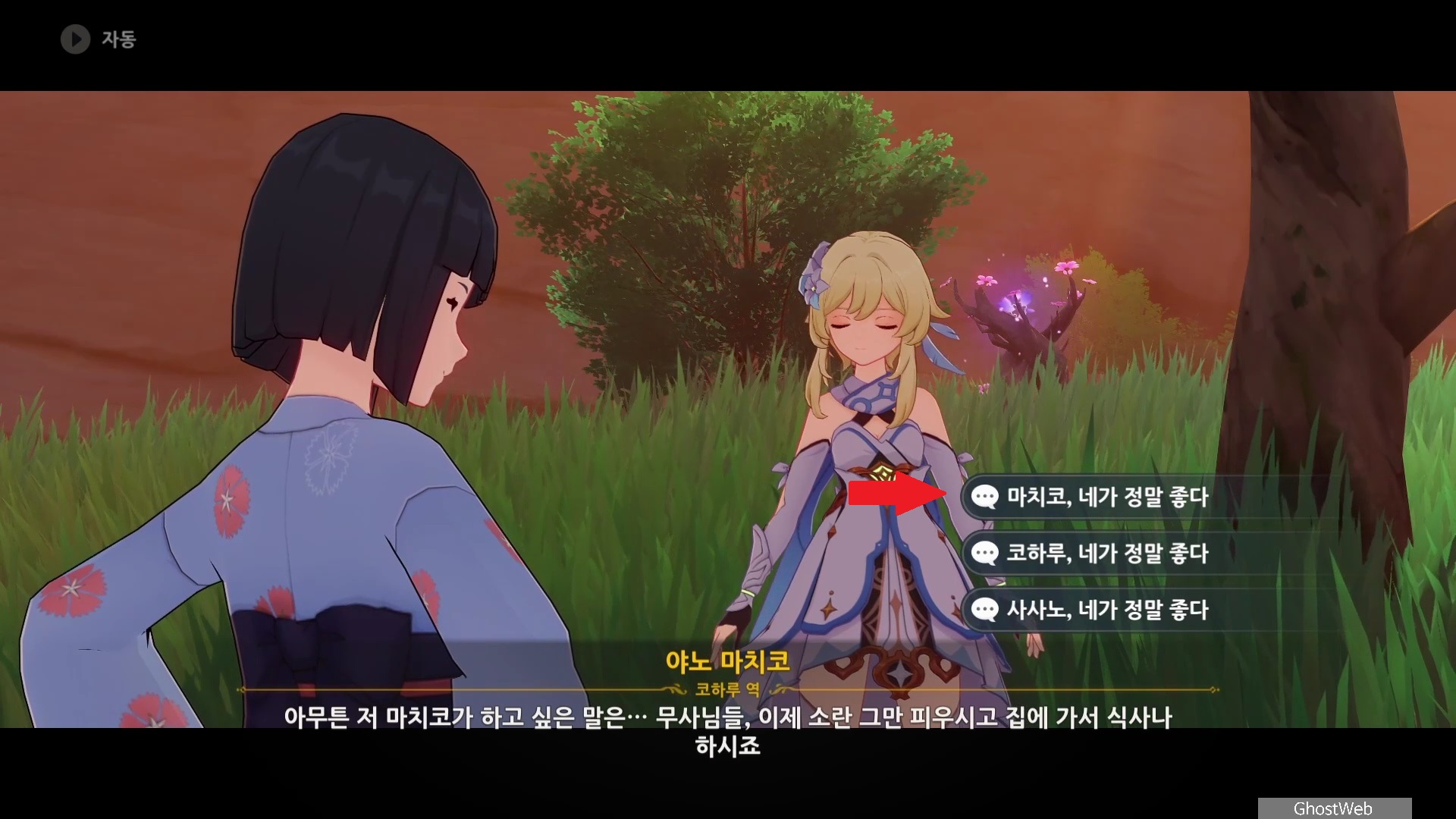 대본을 맡은 여행자는 자비에서 <파란색으로 표시한> 대로 극중 선택지를 선택하면 돼요.