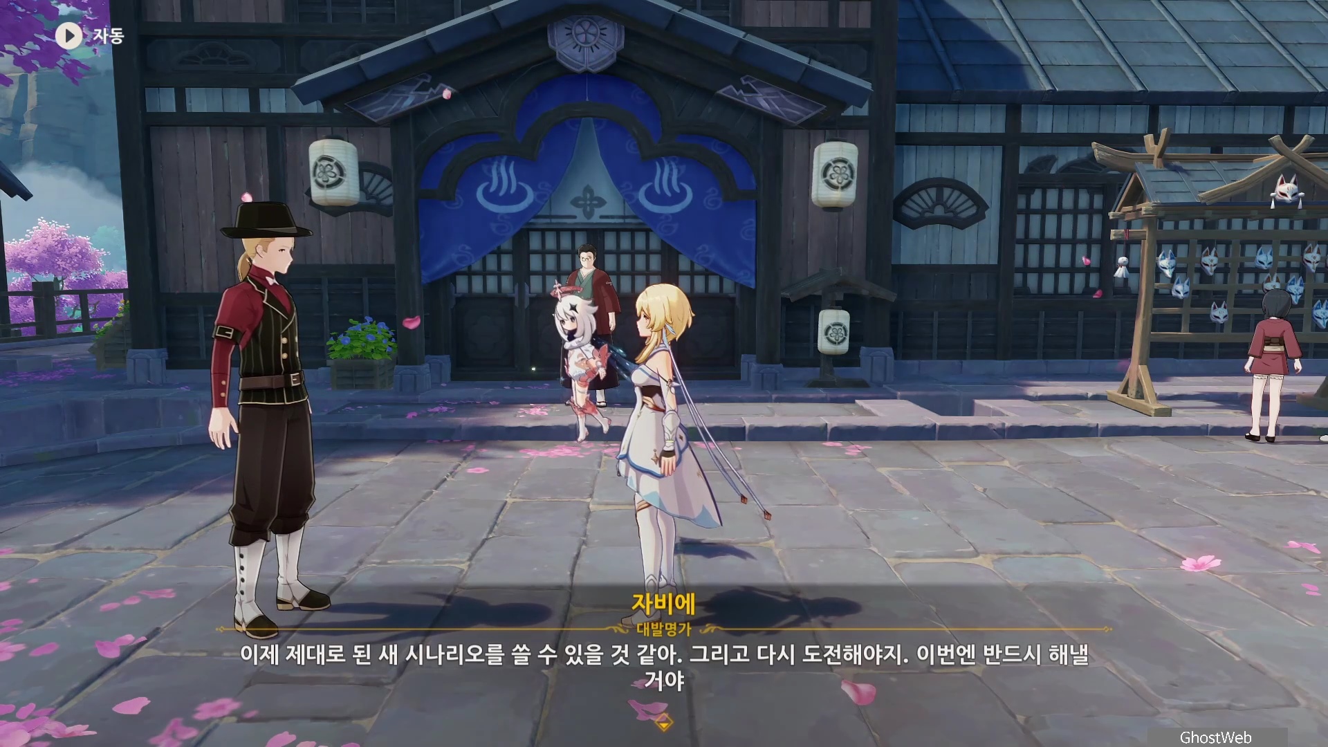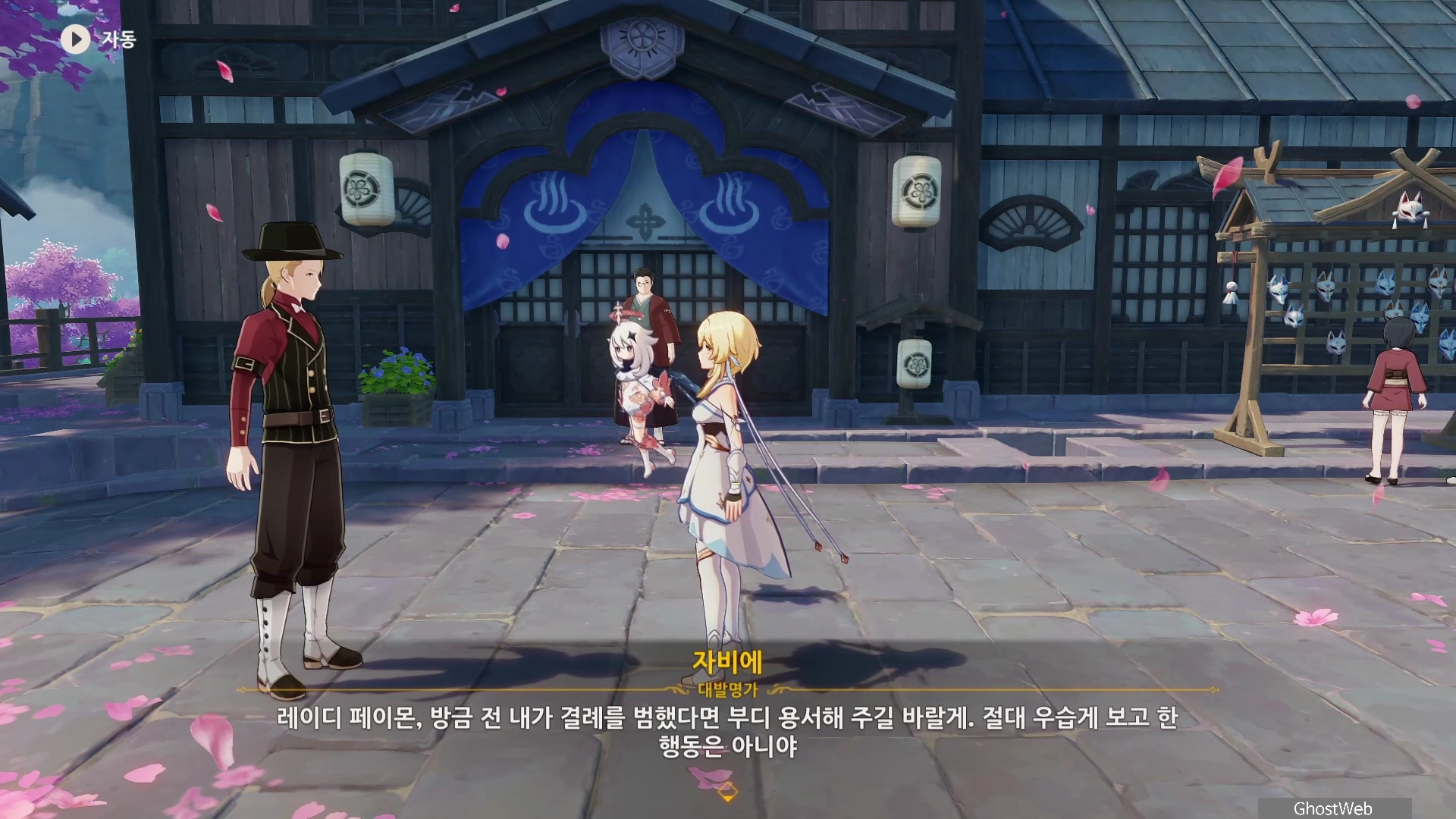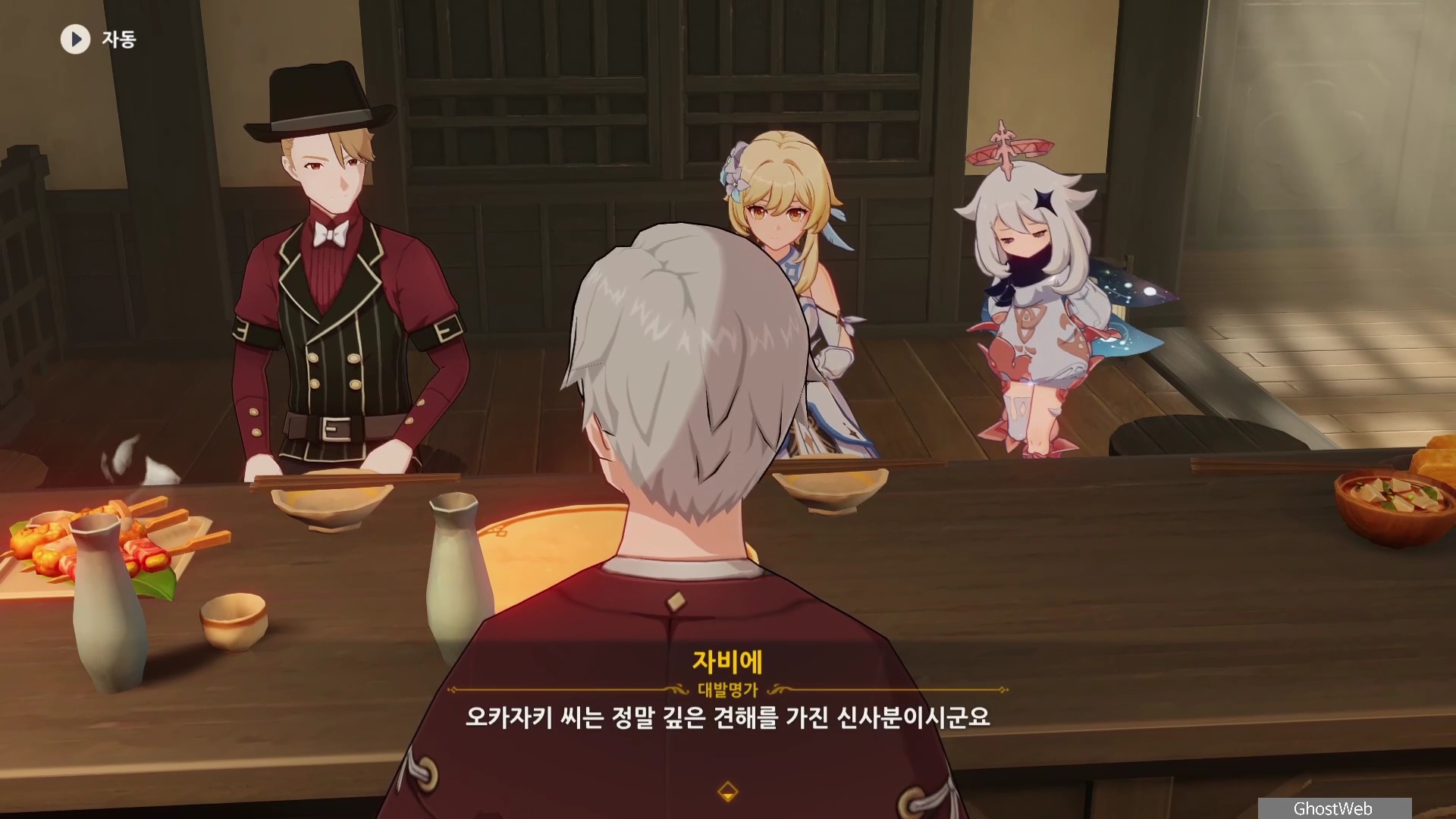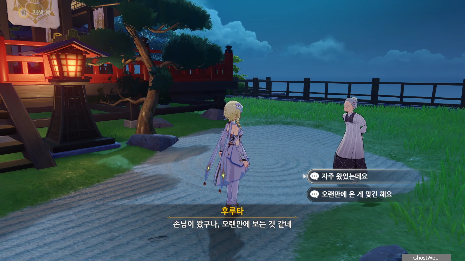 오유정에서 주인인 오카자키 리쿠토에게 영감을 얻고 자비에는 다시 새 시나리오를 쓰러 가고 내일 코모레 찻집에서 보자고 하며 떠나며 여행자와 페이몬은 이런 자비에를 돕기 위해 이도에 있는 사사노와 카미사토 저택에 있는 코하루에게 찾아가 다음날 코모렛 찾집으로 모이기로 해요.