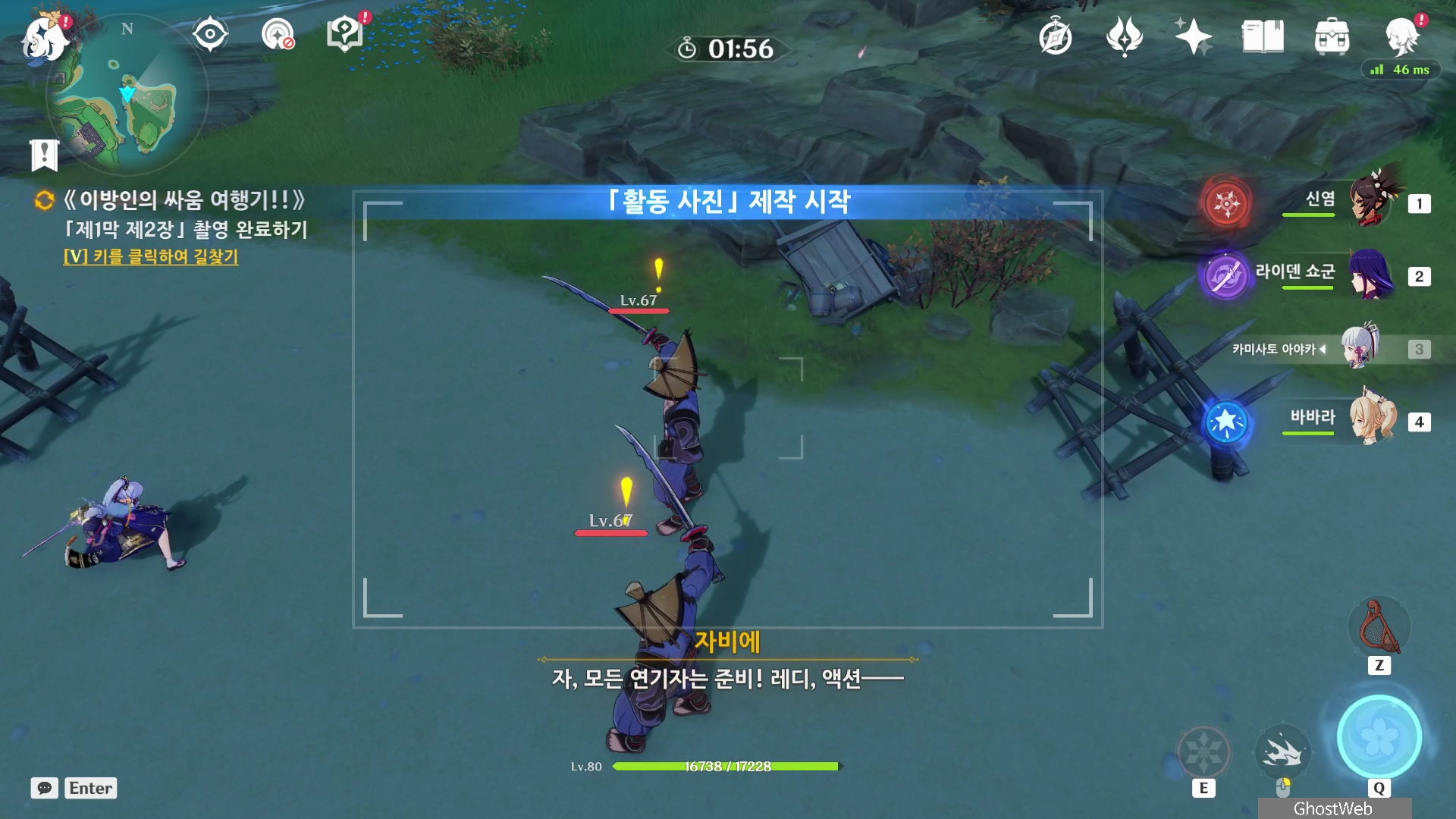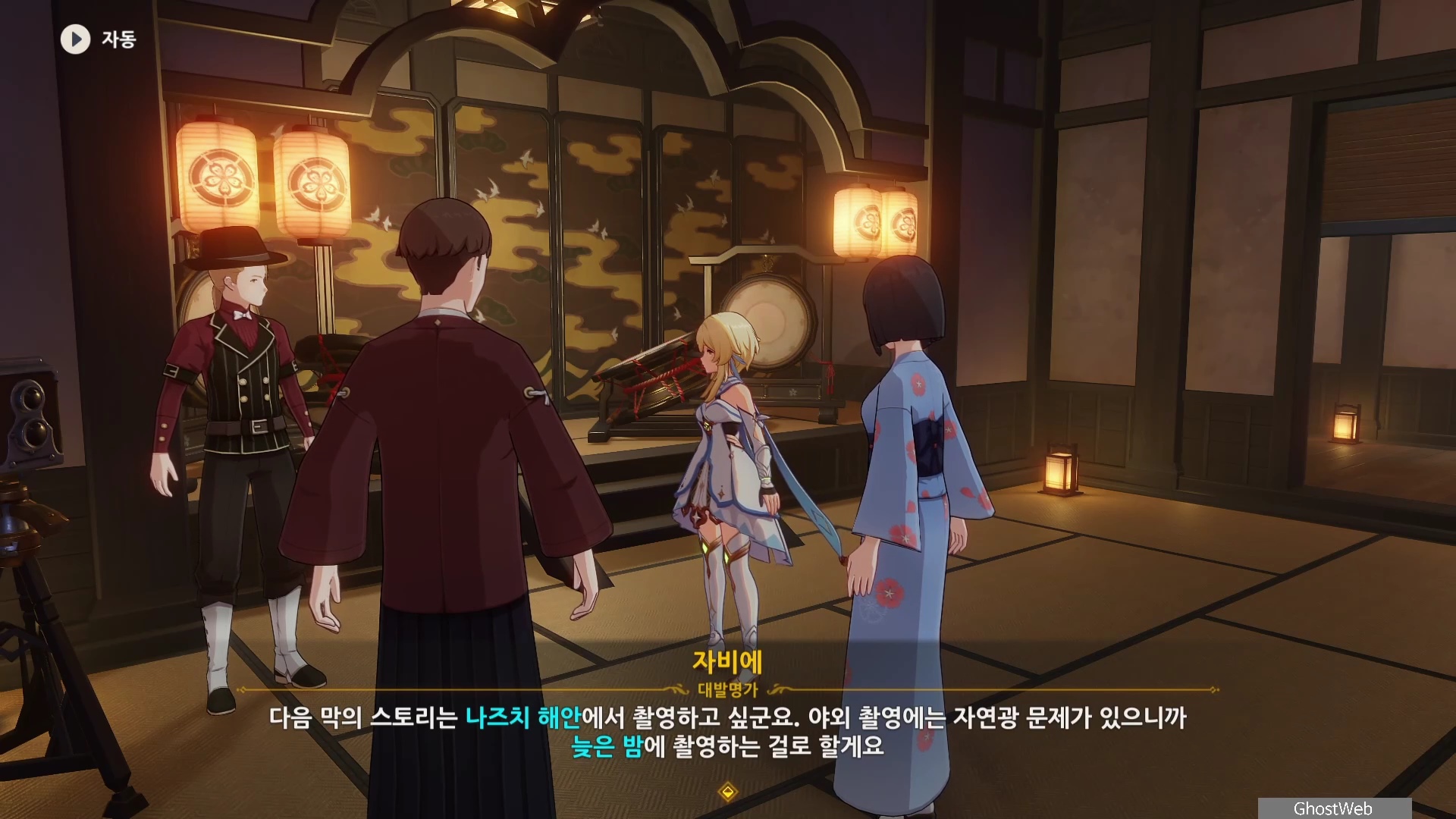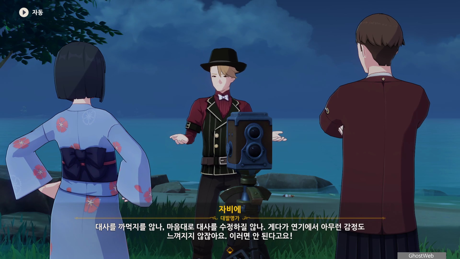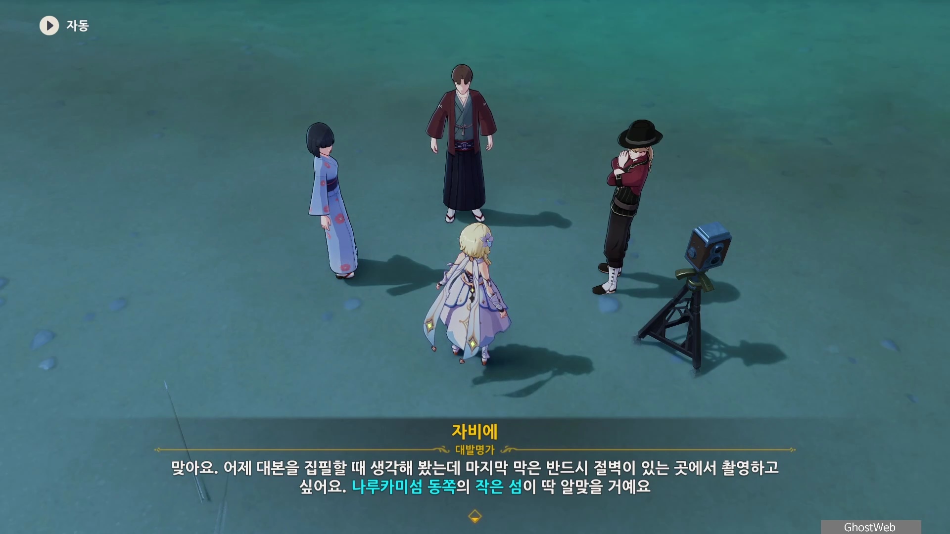 다음 막은 <나즈치 해안>에서 늦은 밤에 촬영하기로 하고 장소를 이동하는데, 근처에 있는 해란귀 들을 처치하고 엑스트라로 고용하여 이전처럼 전투 씬으로 촬영을 이어나가세요.