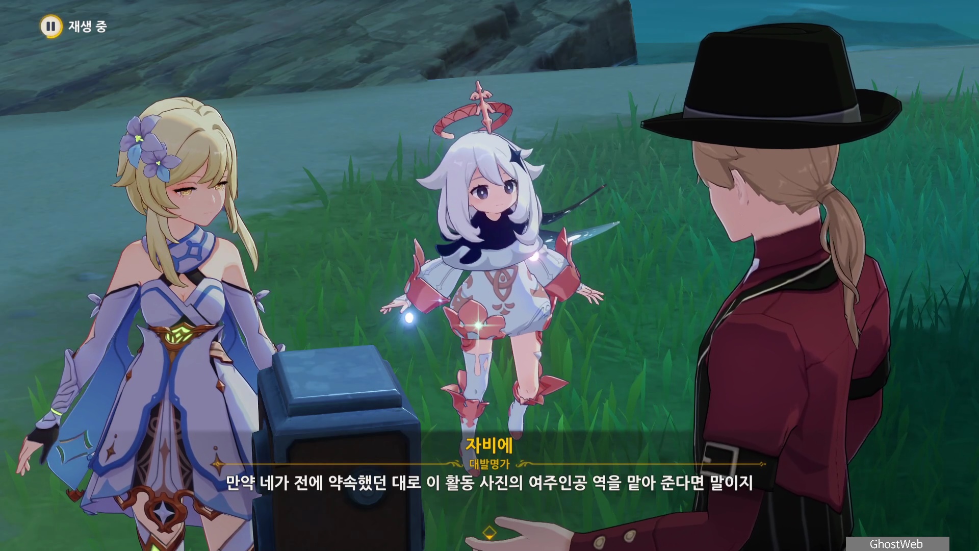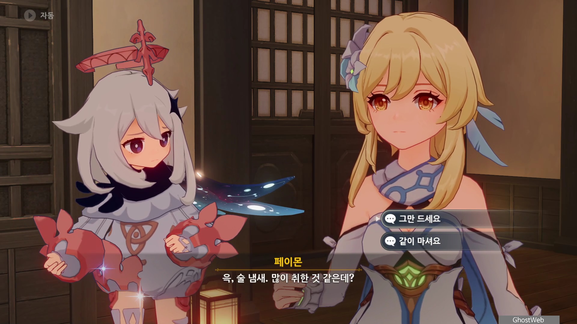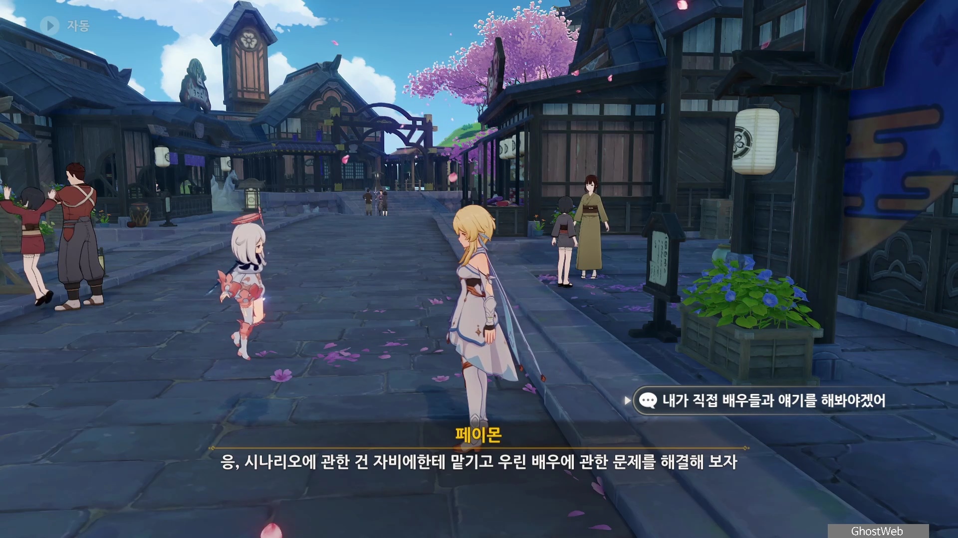 후루타와 대화를 통해 폰타인에서 자비에가 활동 사진을 만들겠다며 카미사토 가주에게 허락받고 저택에서 일하는 하루코에게 자비에를 도와주라는 부탁을 했는데, 후루타는 하루카가 자비에가 마음에 안드는 눈치여서 걱정된다며 여행자에게 활동 사진 작업이 어떻게 진행되고 있나 확인을 부탁해요.