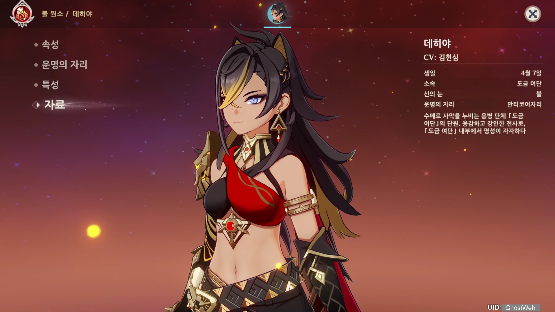 이번에는 화염 갈기의 사자인 5성 불 원소 캐릭터인 데히야에 대해서 정리해보도록 할게요.