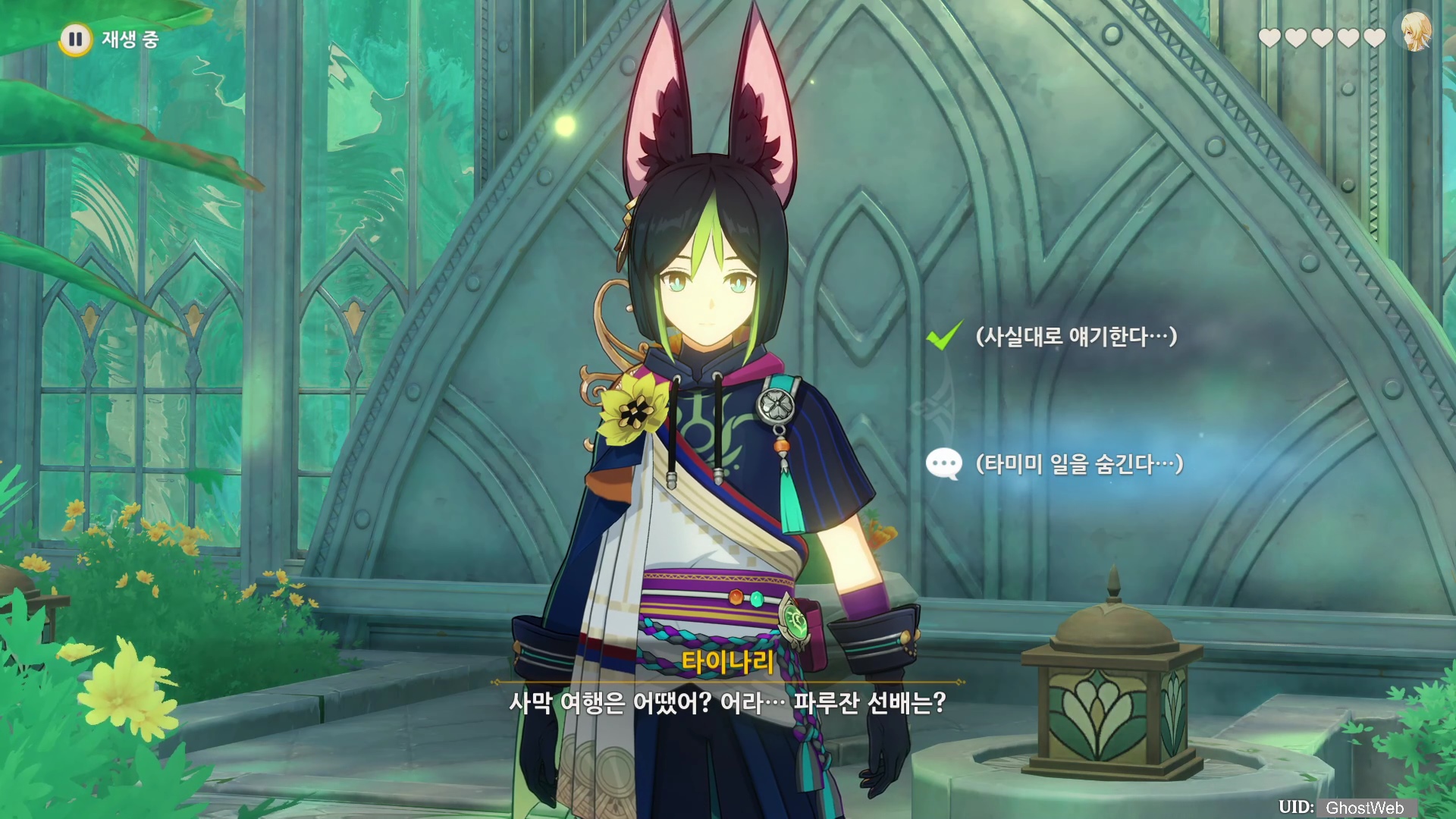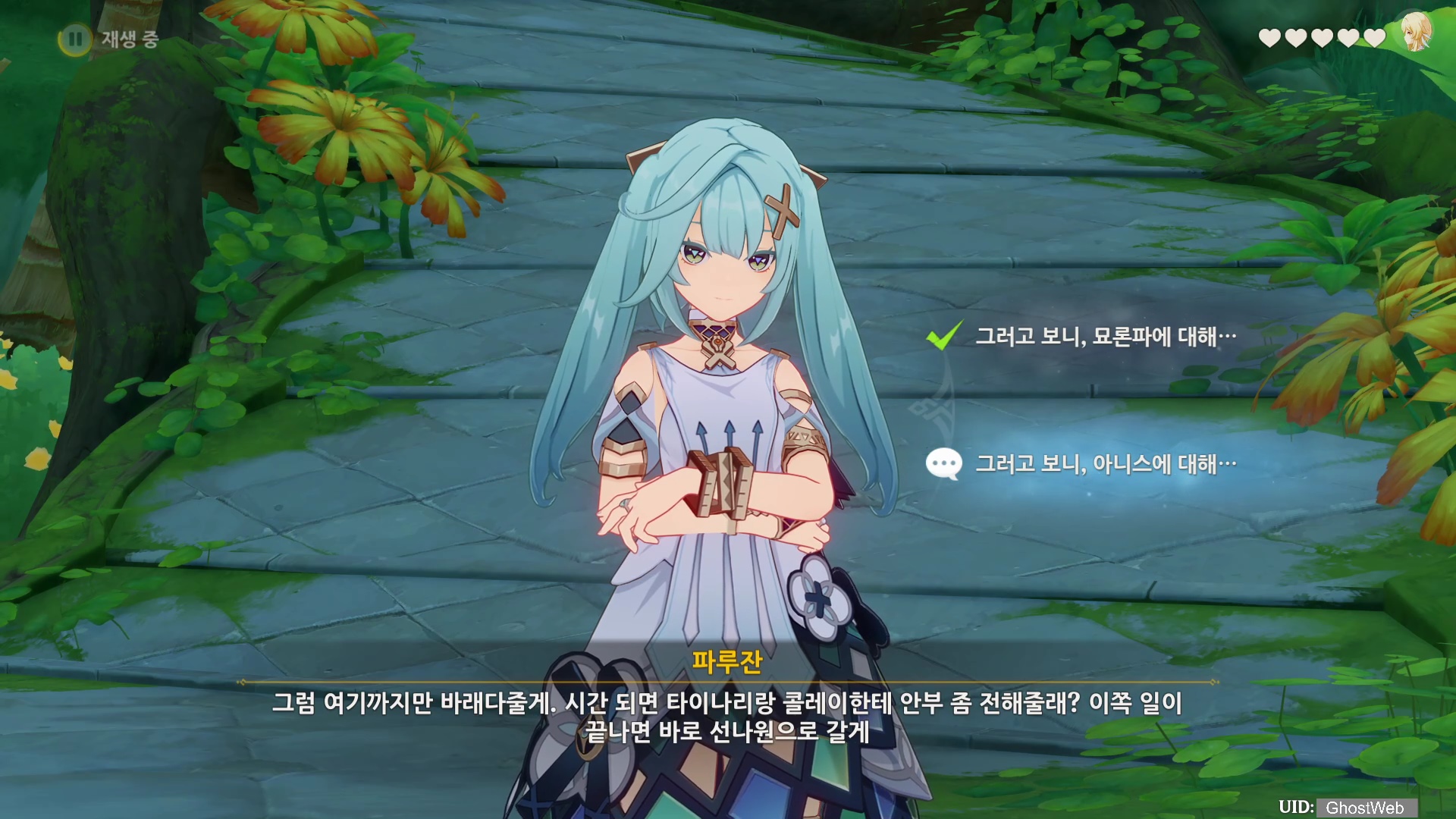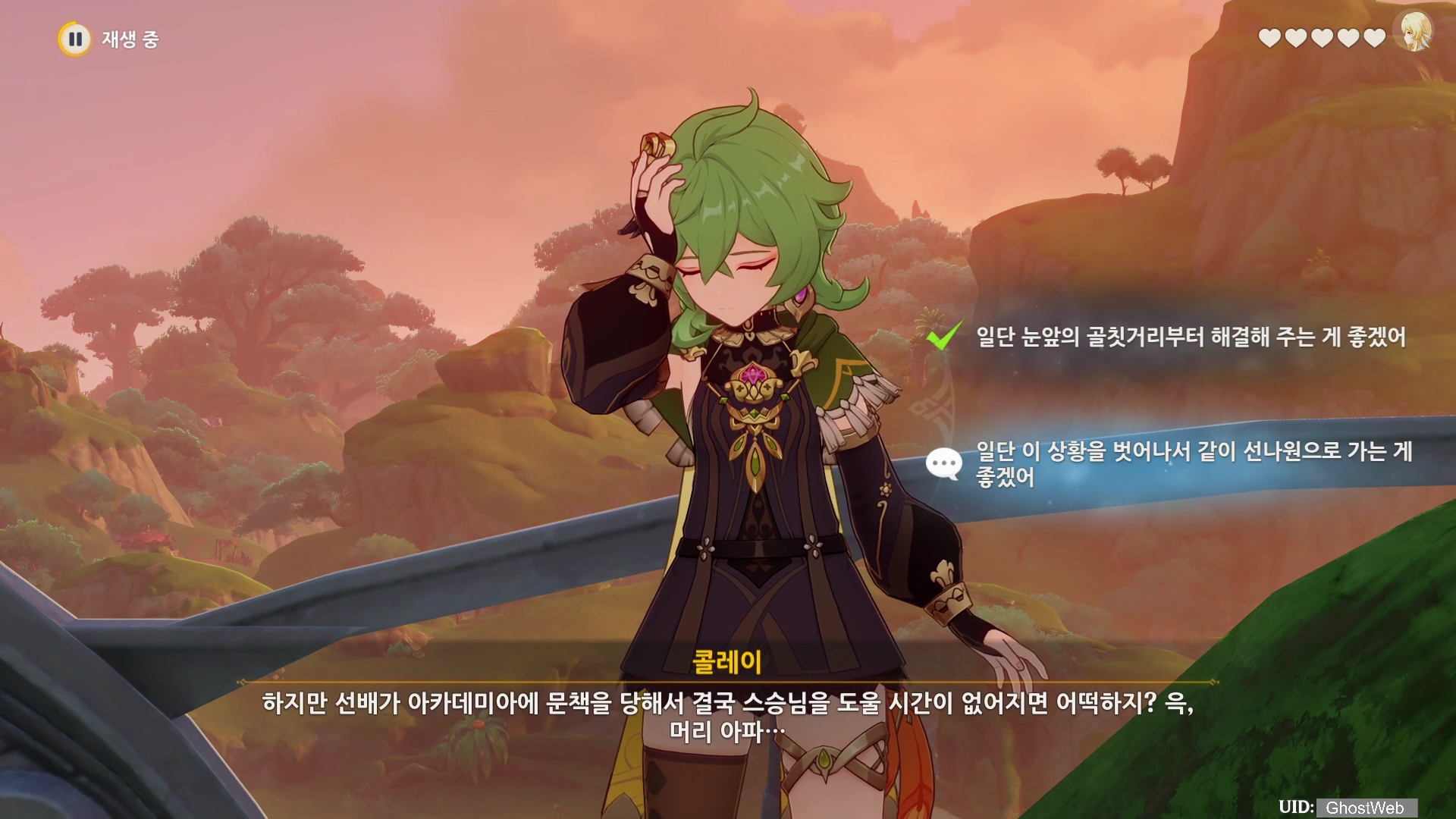 ※ 분기점 : 콜레이와 대화에서 <일단 이 상황을 벗어나서 같이 선나원으로 가는게 좋겠어> 선택