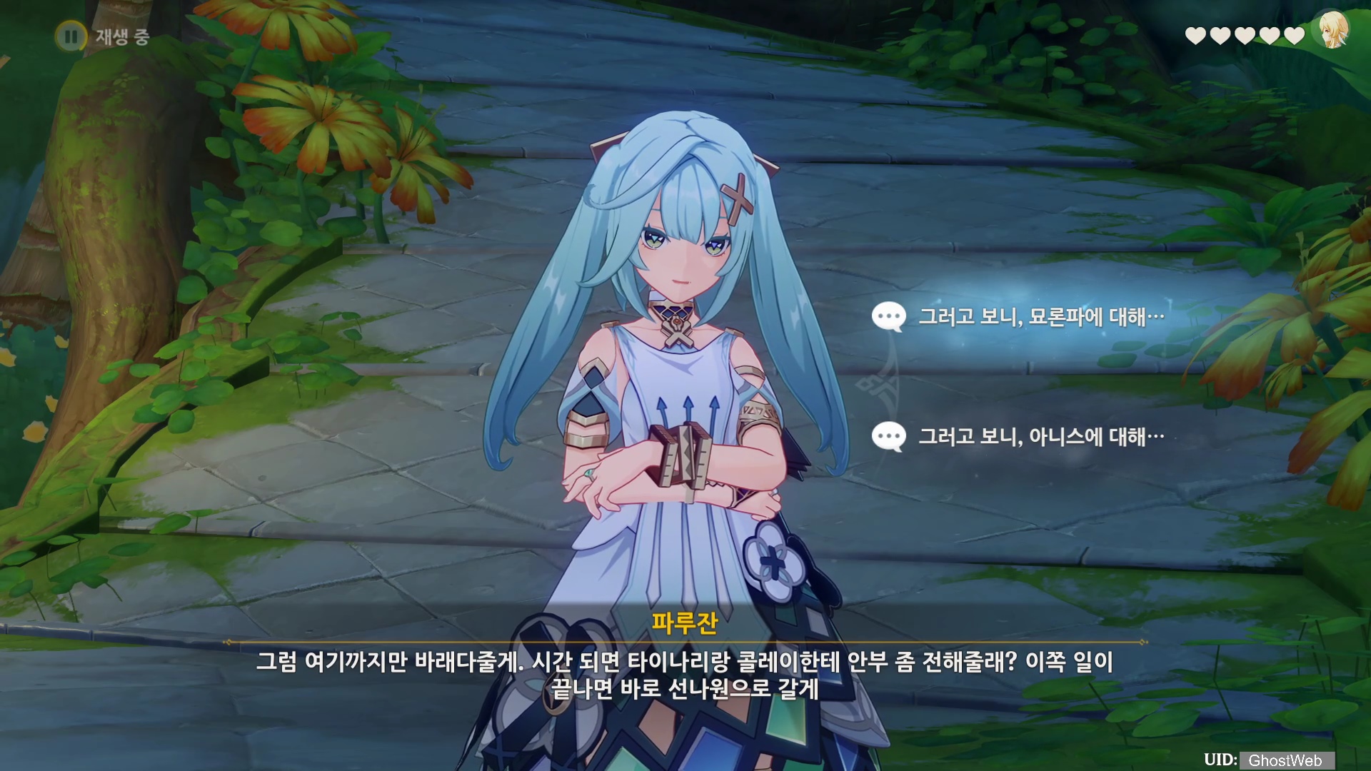 - 파루잔은 타미미와 단둘이 있고 싶다며, 선나원으로 먼저 가라고 한다.