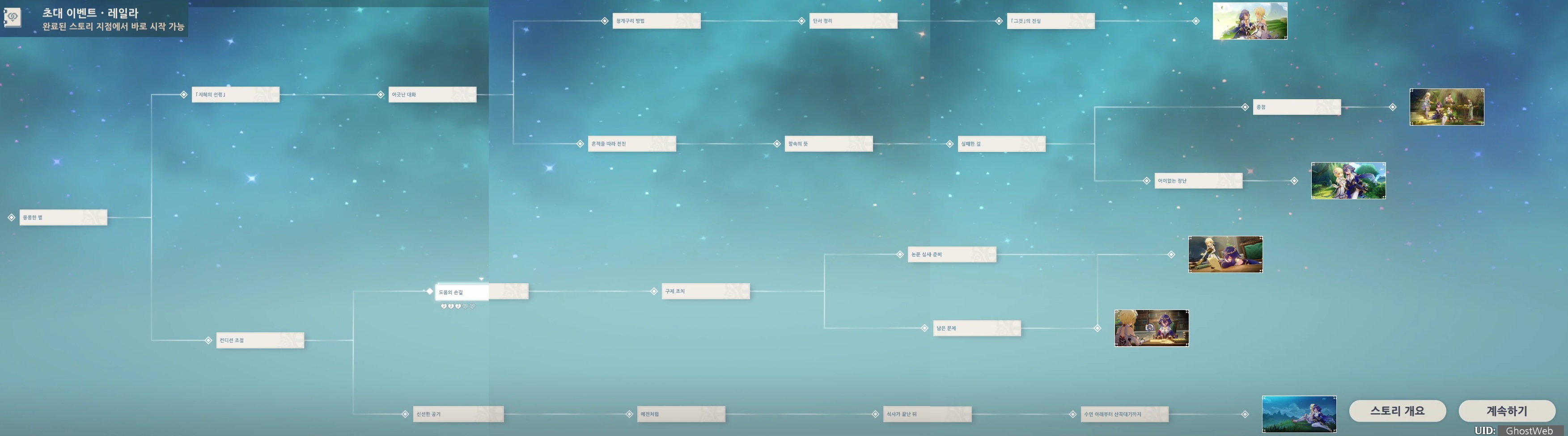 이번에는 레일라 초대 이벤트 제1막 침묵하는 별을 정리해보도록 할게요.