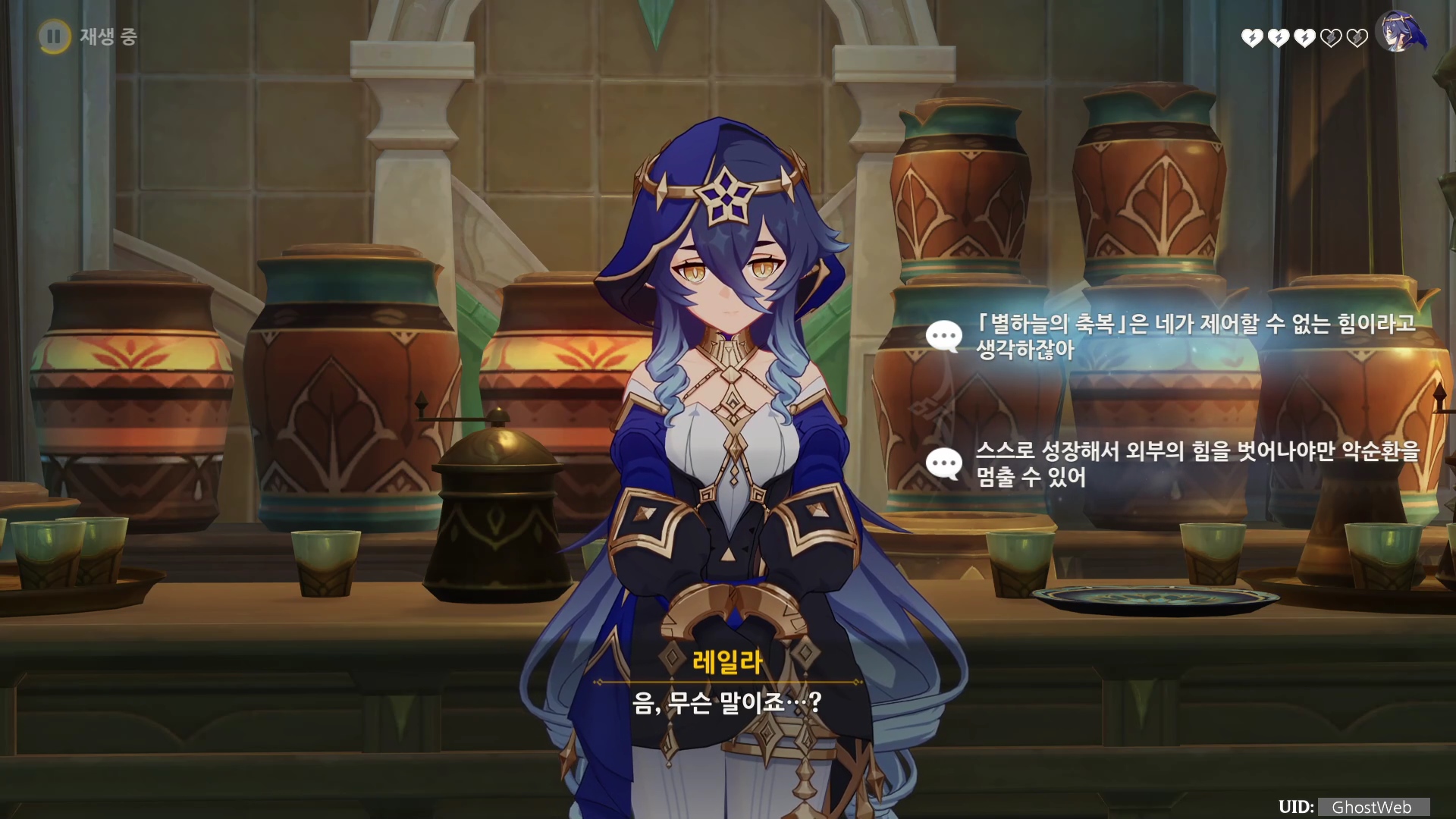- 지혜의 선령의 장난은 뒤로한 채 레일라를 쉬게 하기로 한다.
