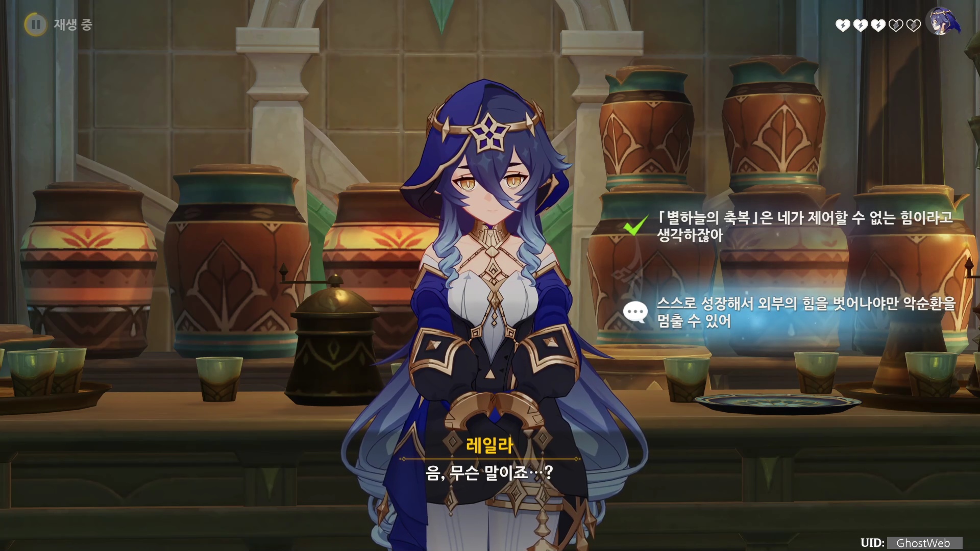 ※ 분기점 : 레일라와 대화에서 <별하늘의 축복은 네가 제어할 수 없는 힘이라고 생각하잖아> 선택