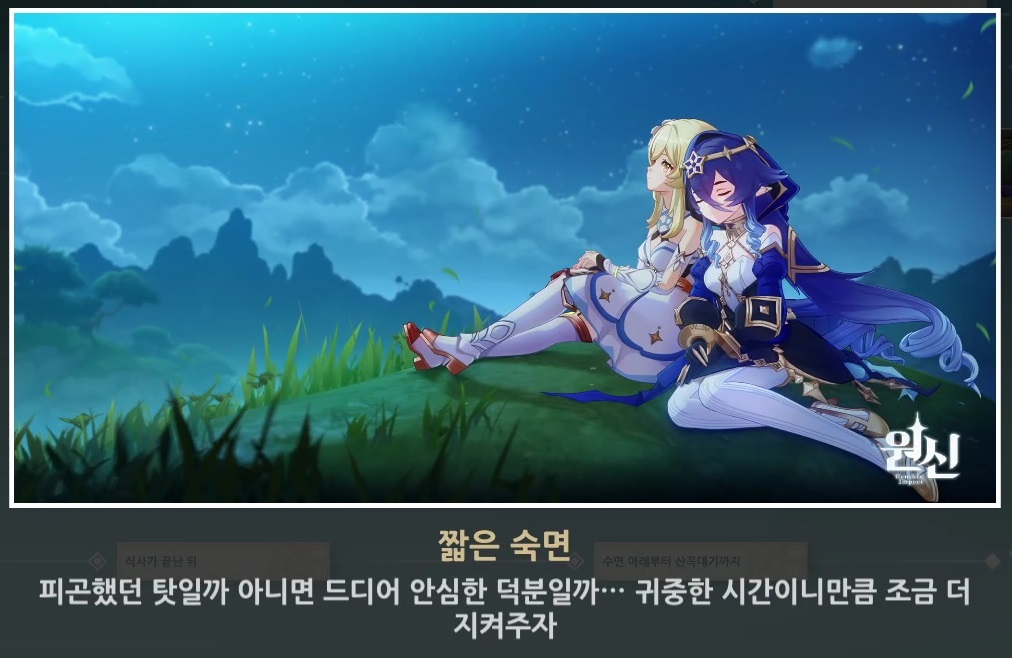| [원신] 카베 초대 이벤트 | 제1막 - 불행과 행복의 시계추 (엔딩, 스토리 분기점 정리) (0) | 2023.05.26 |