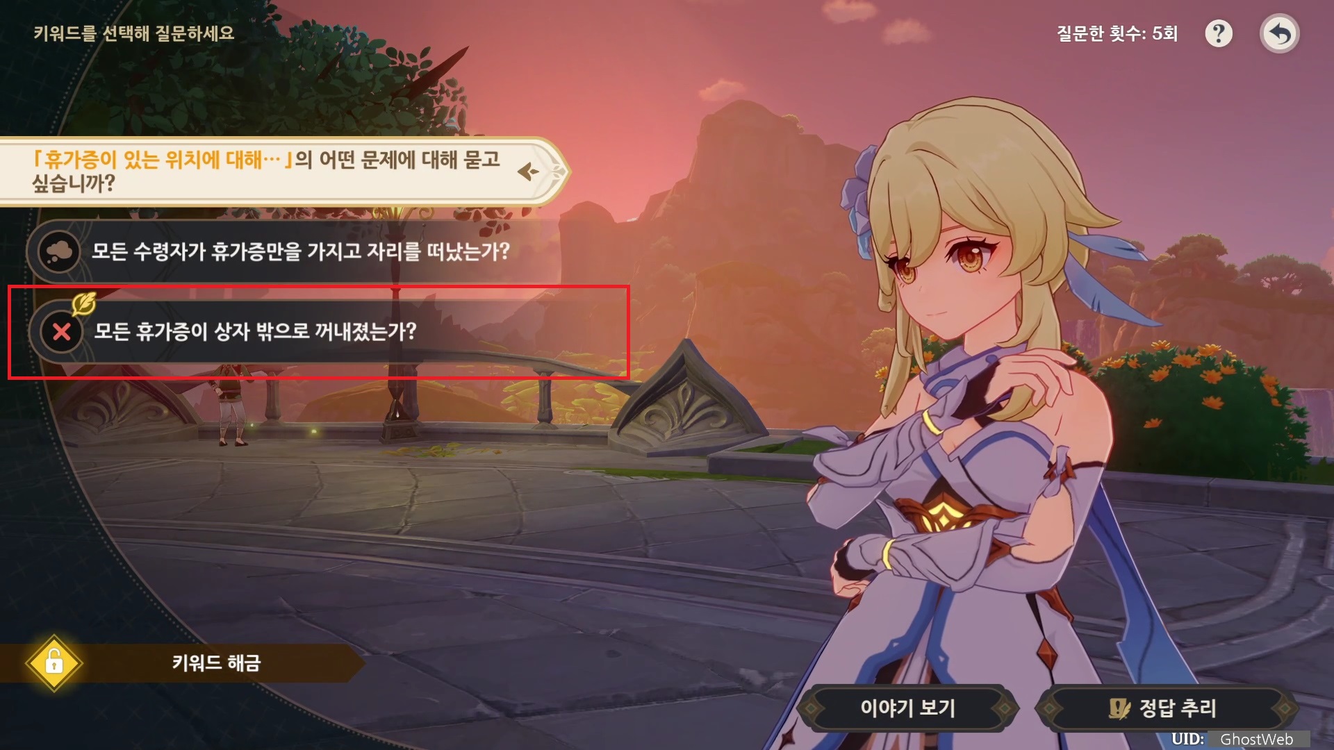 이번에는 원신 3.6 이벤트 성대한 지혜의 축제 중 하라바타트 학부에서 진행하는 진실 추리의 정답을 정리해보도록 할게요.