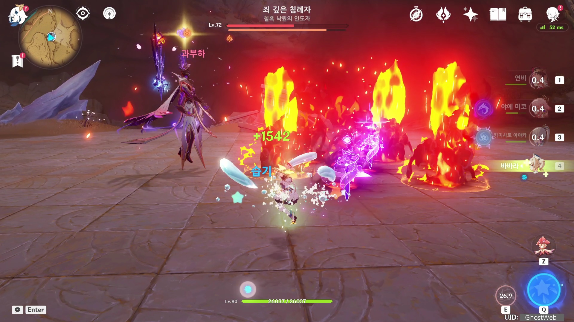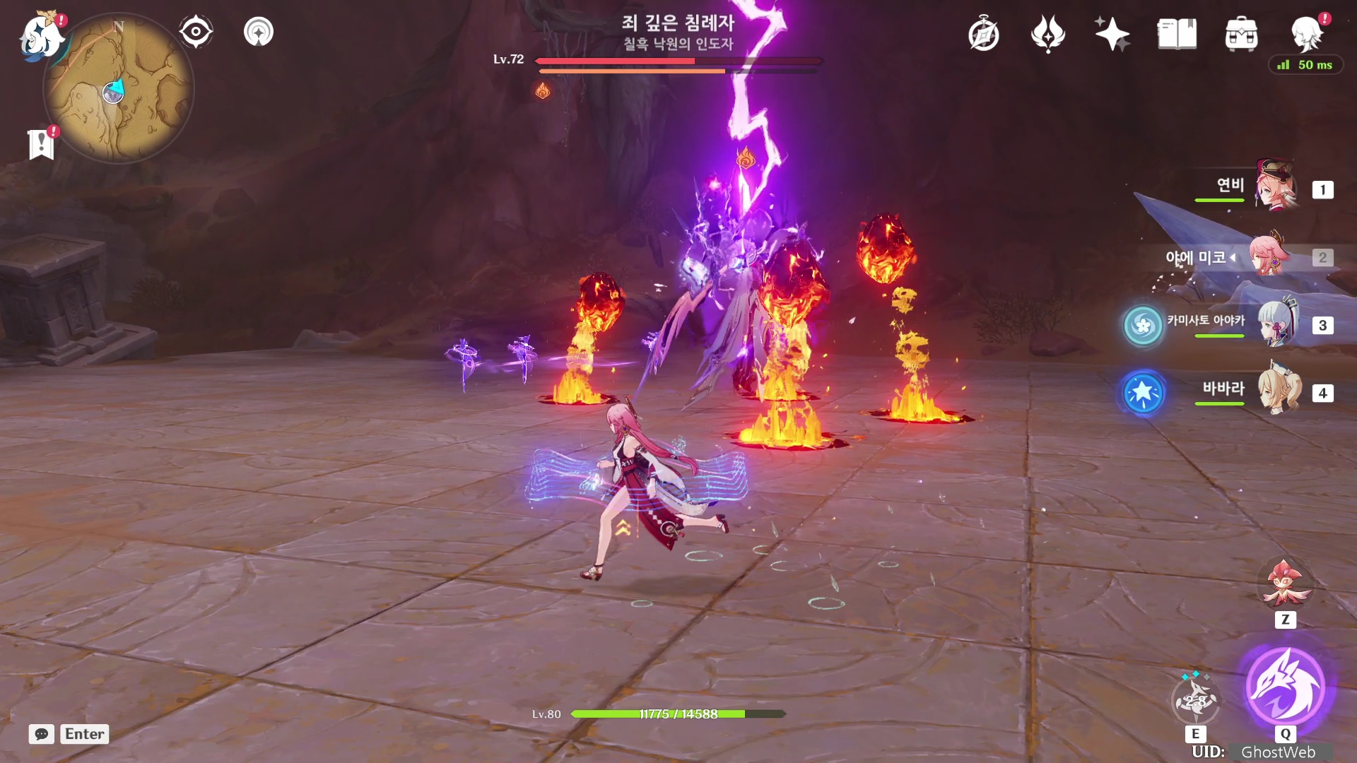 죄 깊은 침례자는 3가지 원소를 돌아가면 해당 원소 공격과 실드를 사용하는데, 중간 마다 원소를 전환할 때는 실드가 해제되어 편하게 공격을 넣을 수 있으며, 3개의 원소 고리를 파괴해서도 그로기(락다운) 상태를 만들 수 있어요.