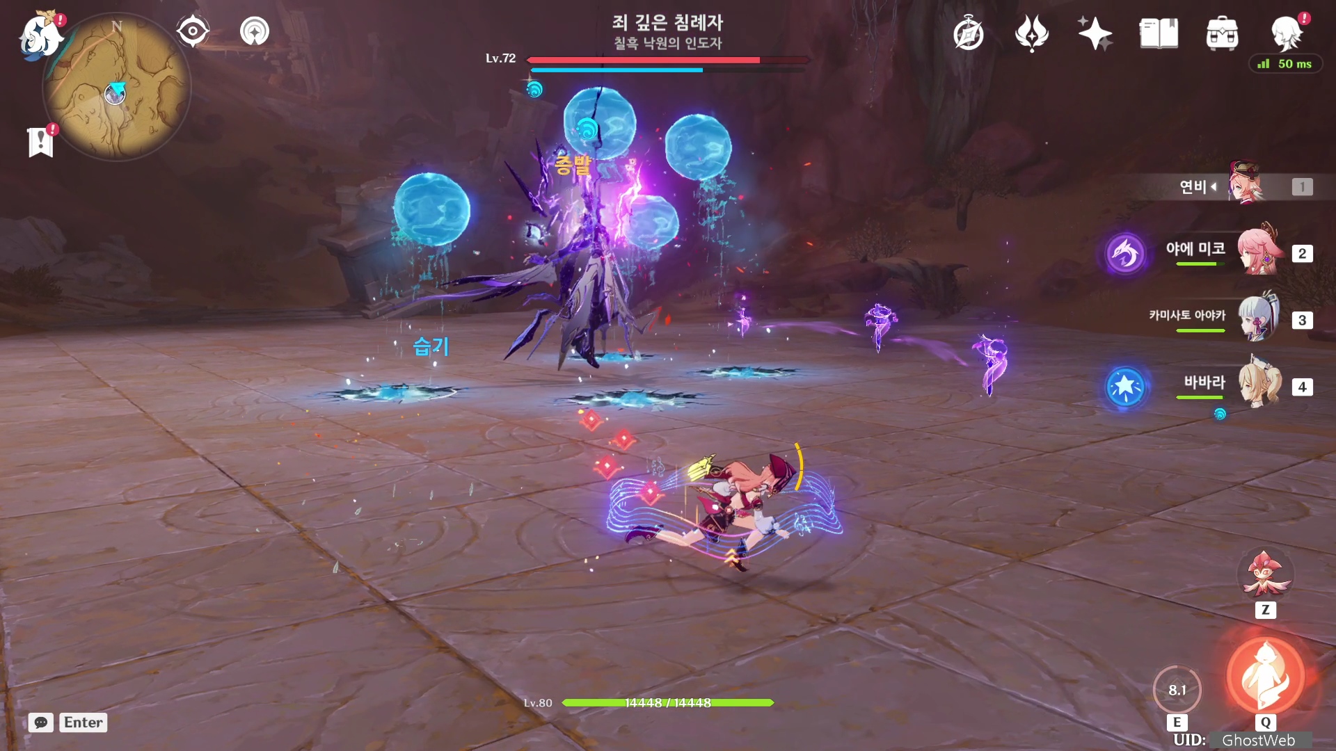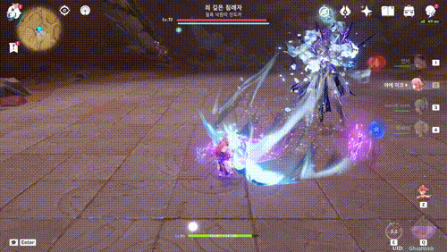 죄 깊은 침례자의 HP 게이지 바 아래의 실드를 보면 현재 죄 깊은 침례자가 사용 중인 원소 타입을 볼 수 있어요.