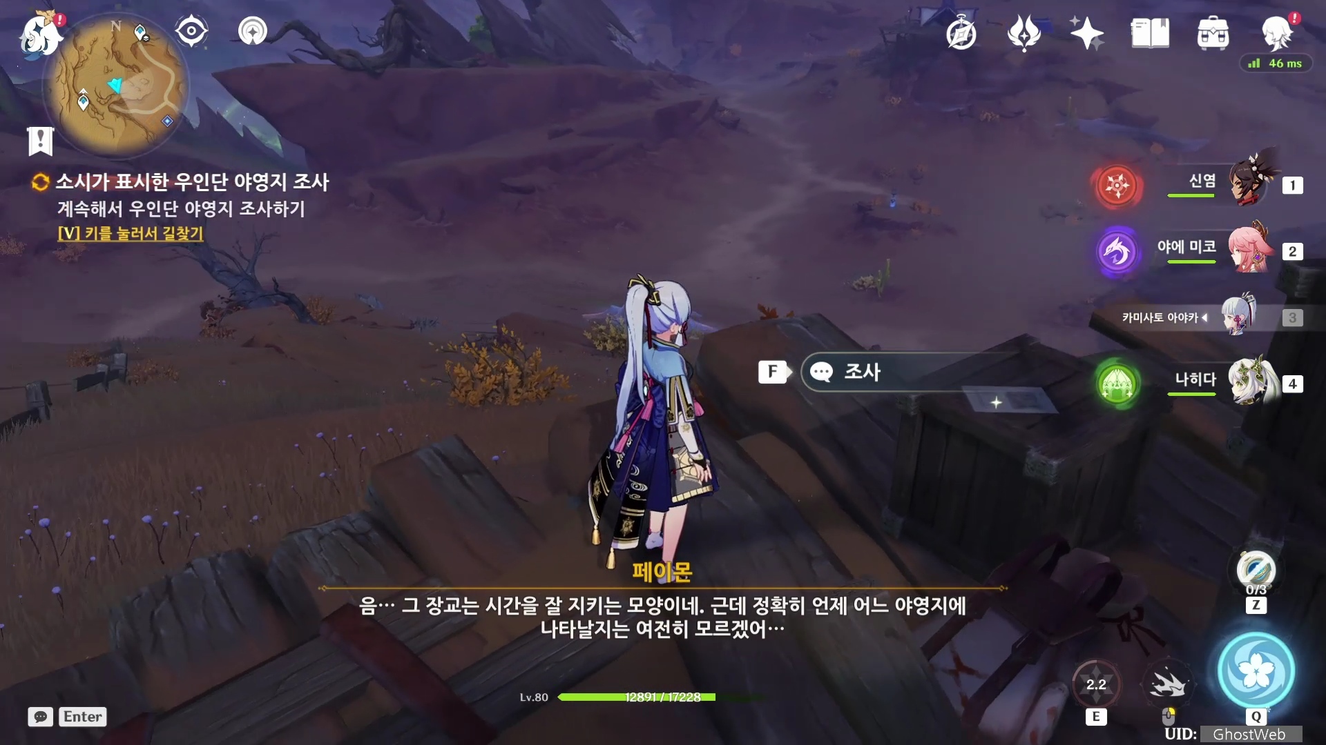 - 플레이 시점 : 선악의 크바레나 임무 완료 후
