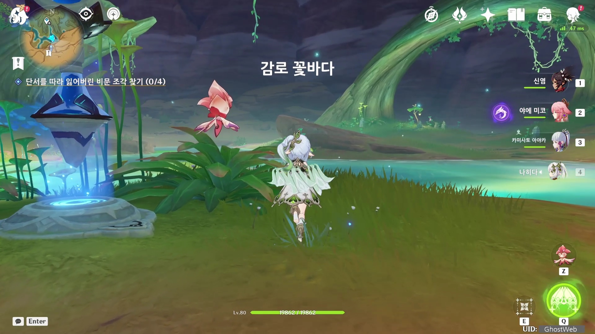 - 감로 꽃바다 아래에 있는 지상 워프 포인트로 이동하여 바로 정면 왼쪽에 위치하는 바위 위로 이동해 소루쉬로 전환하여 크바레나의 명문 조각을 획득할 수 있어요.