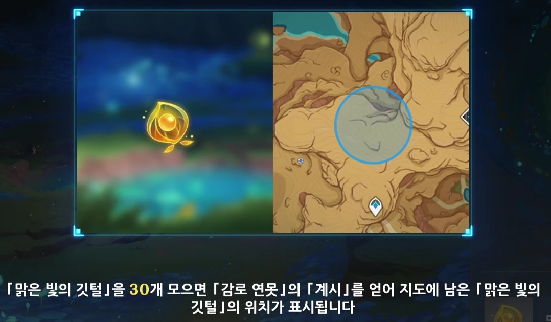 이번에는 원신 3.6 버전 수메르 신규 지역인 모래가 에워싼 황야 (라즈워드 황야, 파라컬트)에서 얻을 수 있는 [ 맑은 빛의 깃털 ]의 위치를 정리해보도록 할게요.