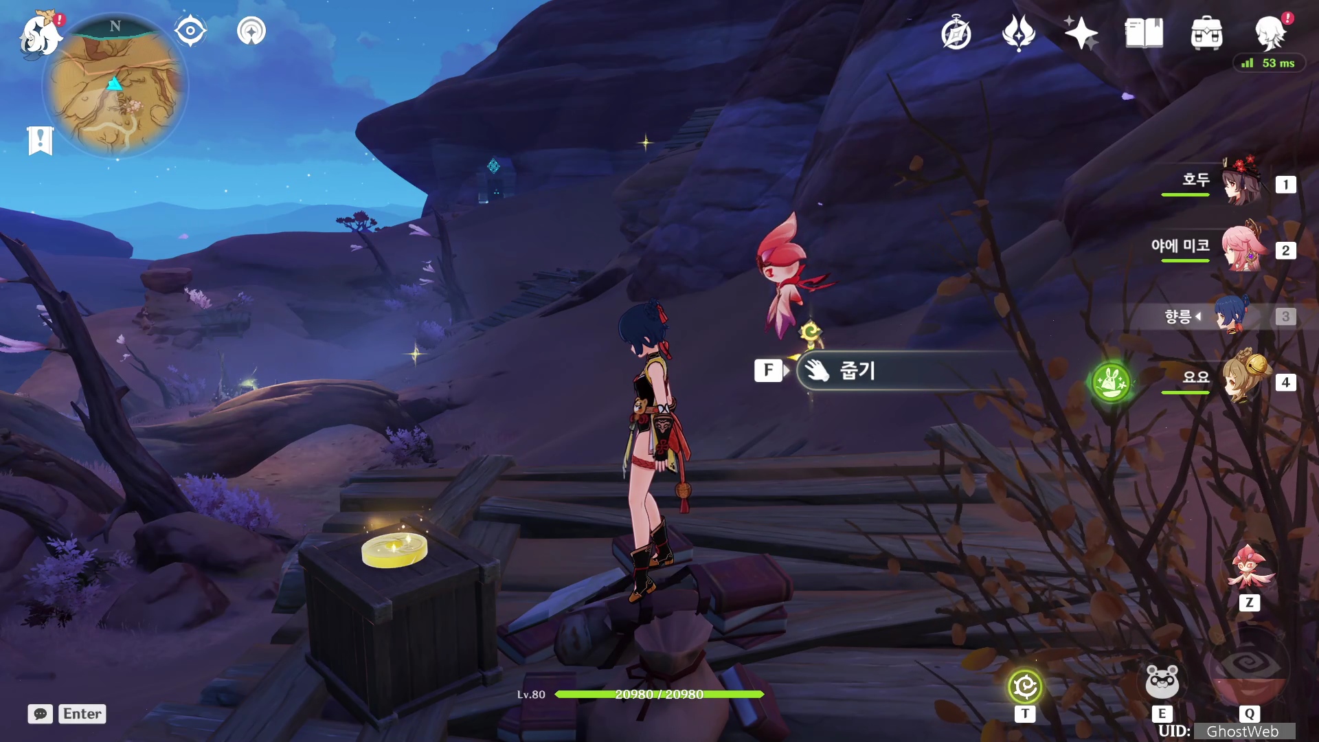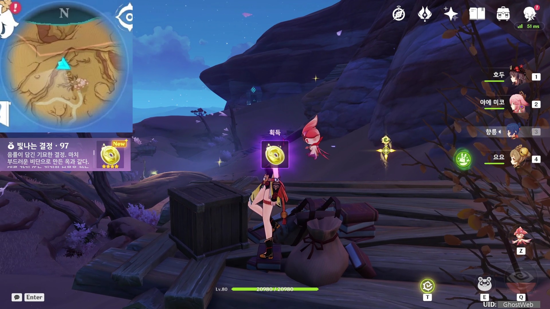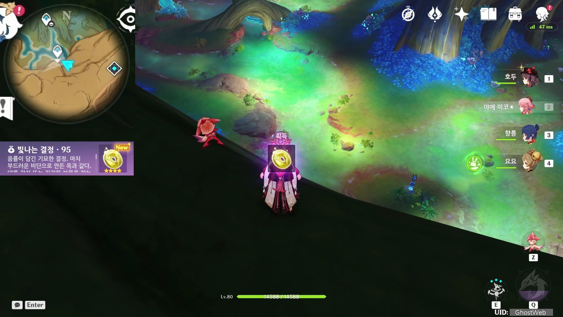 - 감로 꽃바다 위에 있는 워프 포인트로 이동하여 지도 상 강가 오른쪽 끝에 있는 바위 꼭대기