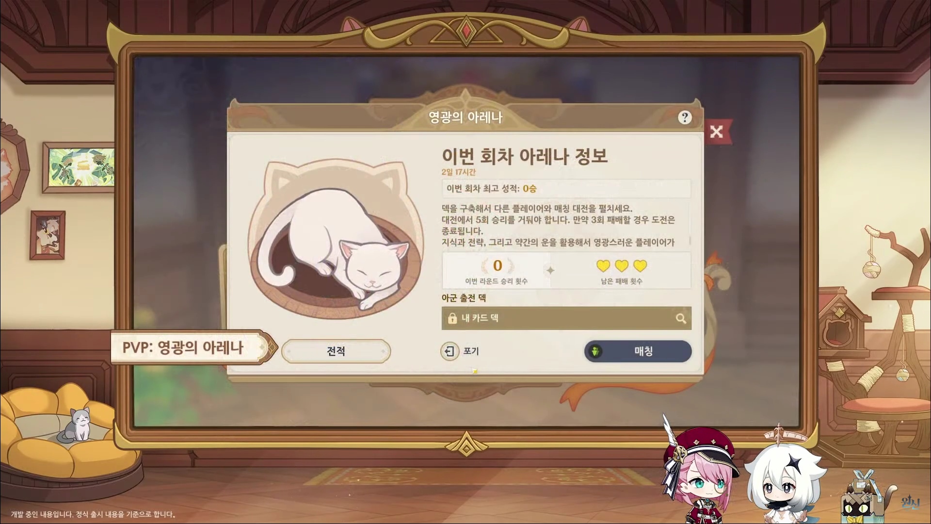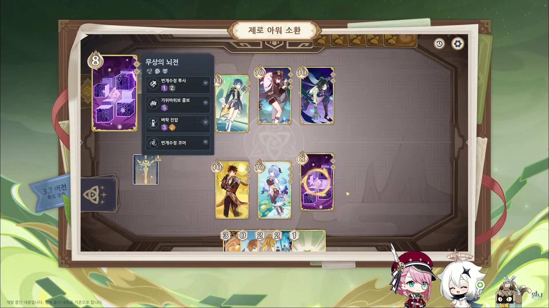 - 자기 덱을 사용할 수 없고 주체 측이 준비한 덱 중 덱을 뽑아 대전을 진행